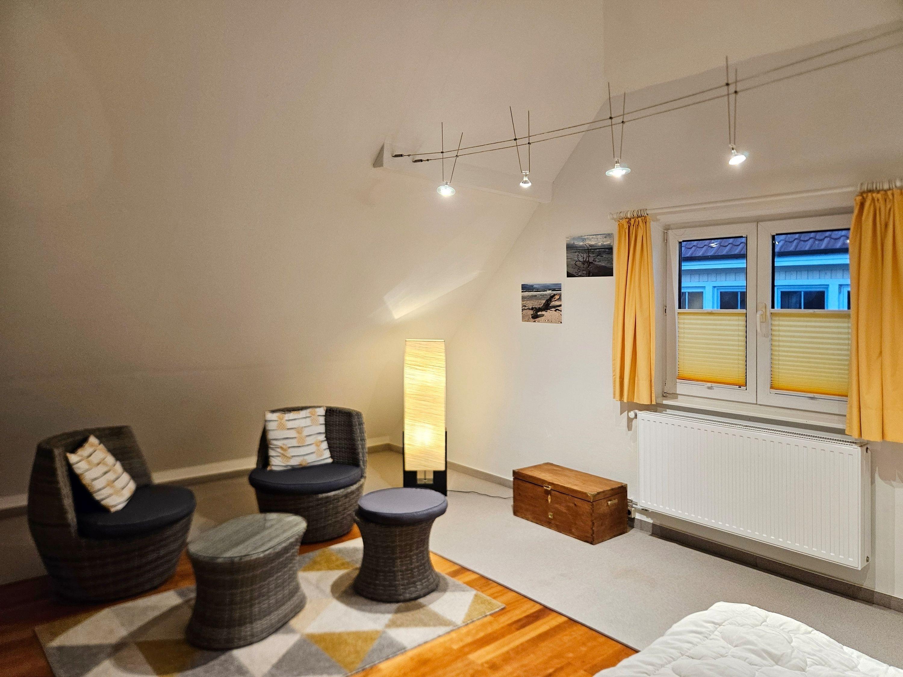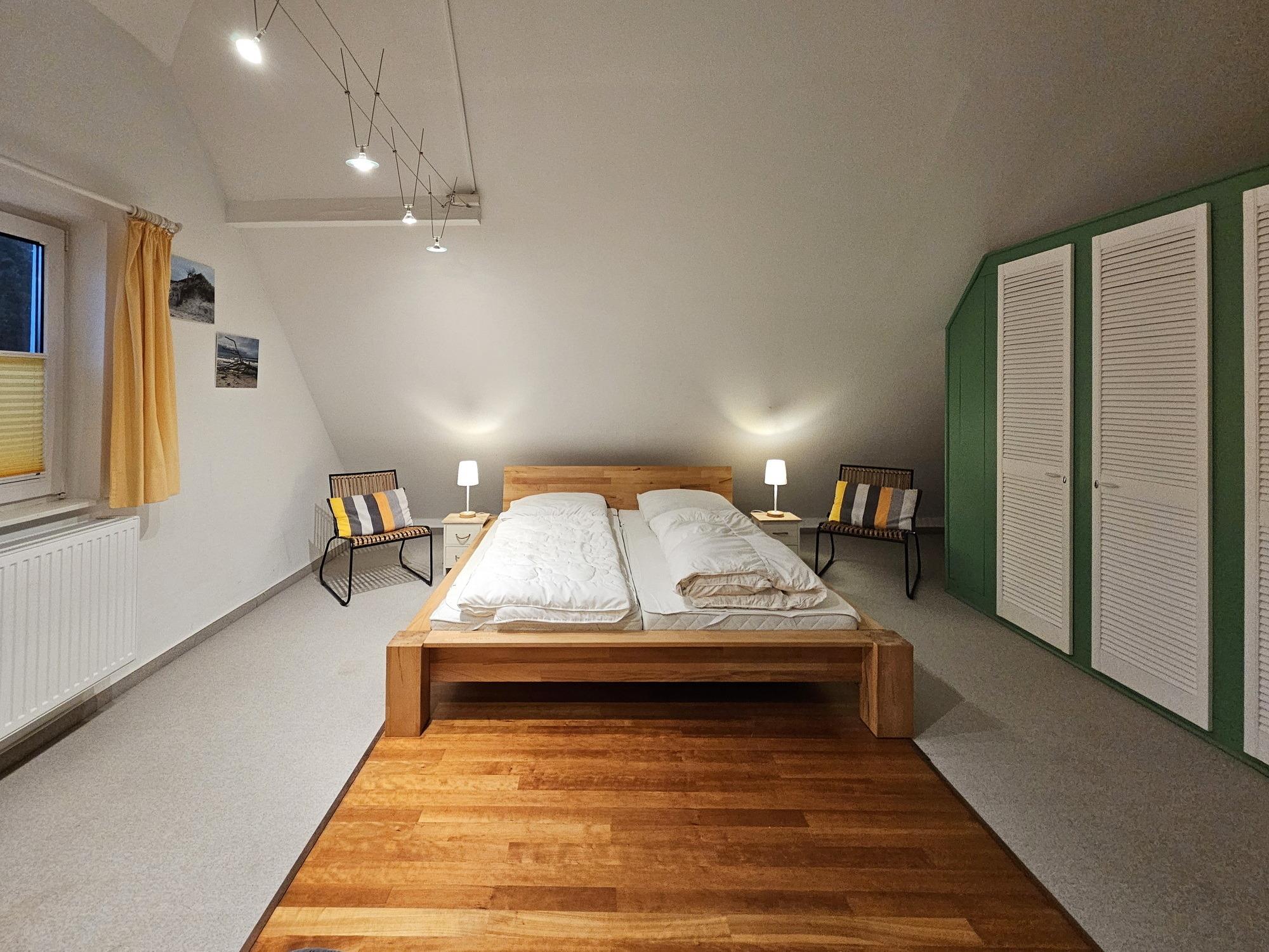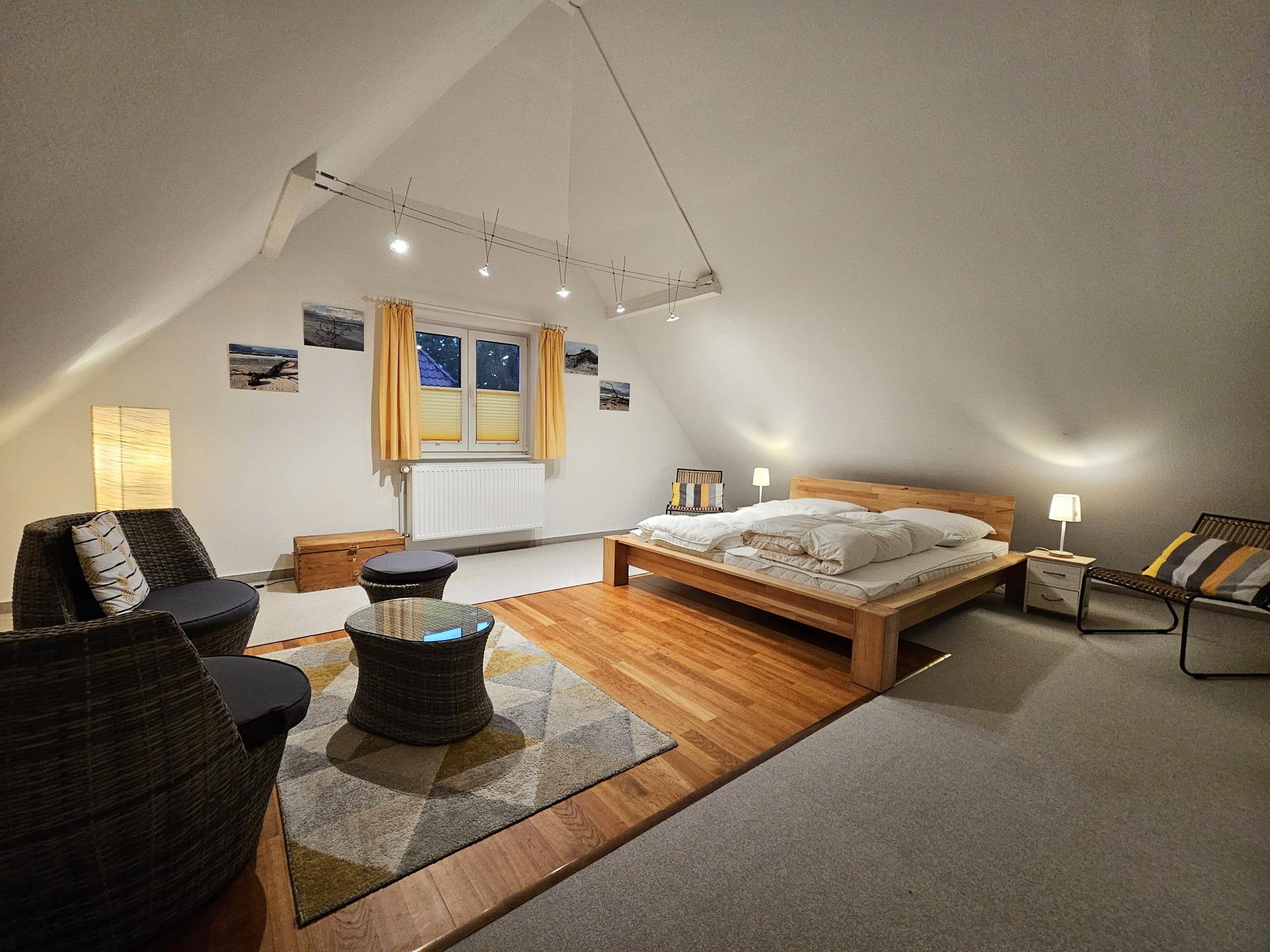 Die Ferienhaushälfte ist eine geräumige und komfortable Unterkunft mit insgesamt 4 Schlafzimmern. Sie befindet sich in einer ruhigen und idyllischen Lage, unweit des Darsswaldes.
