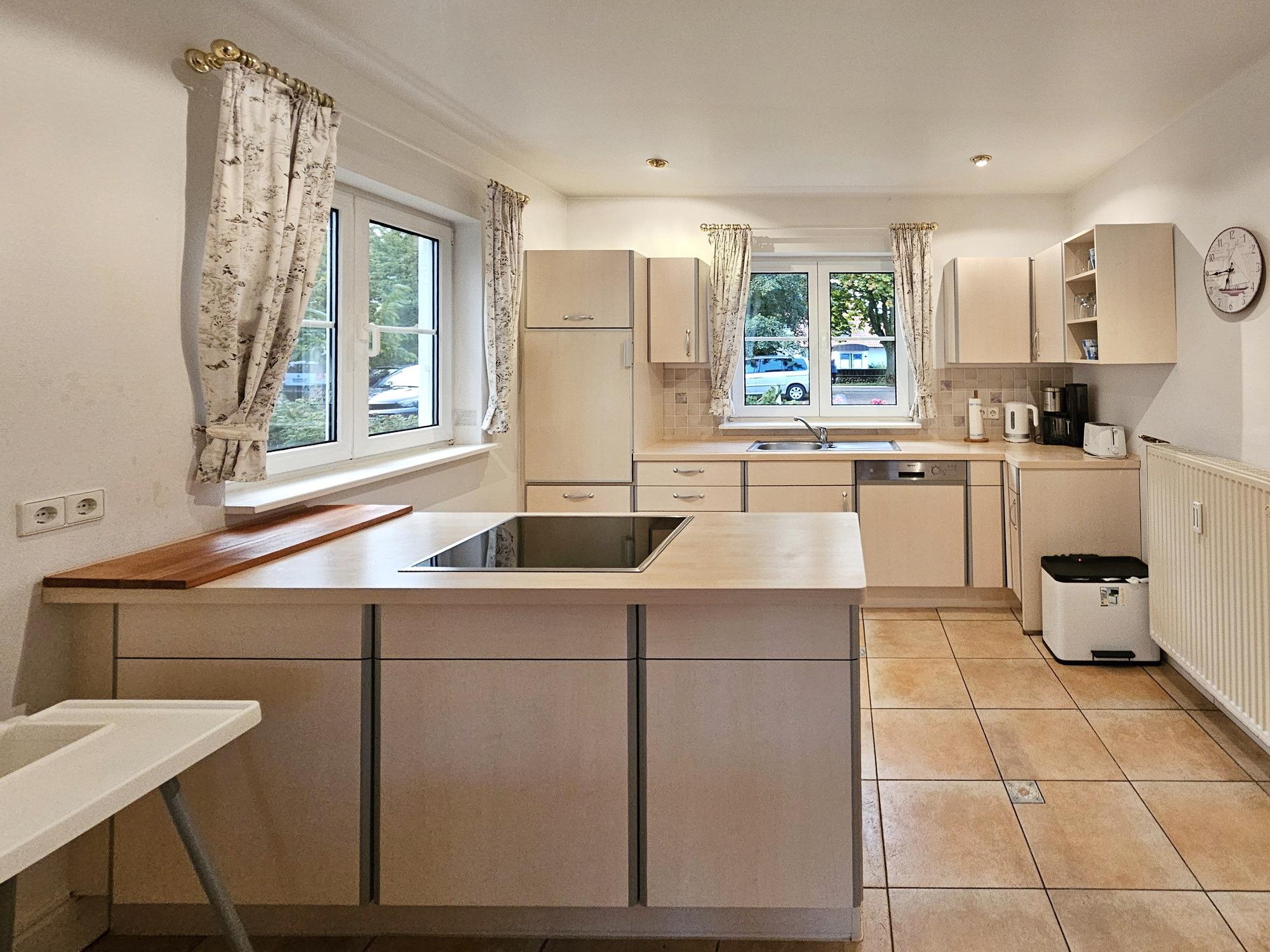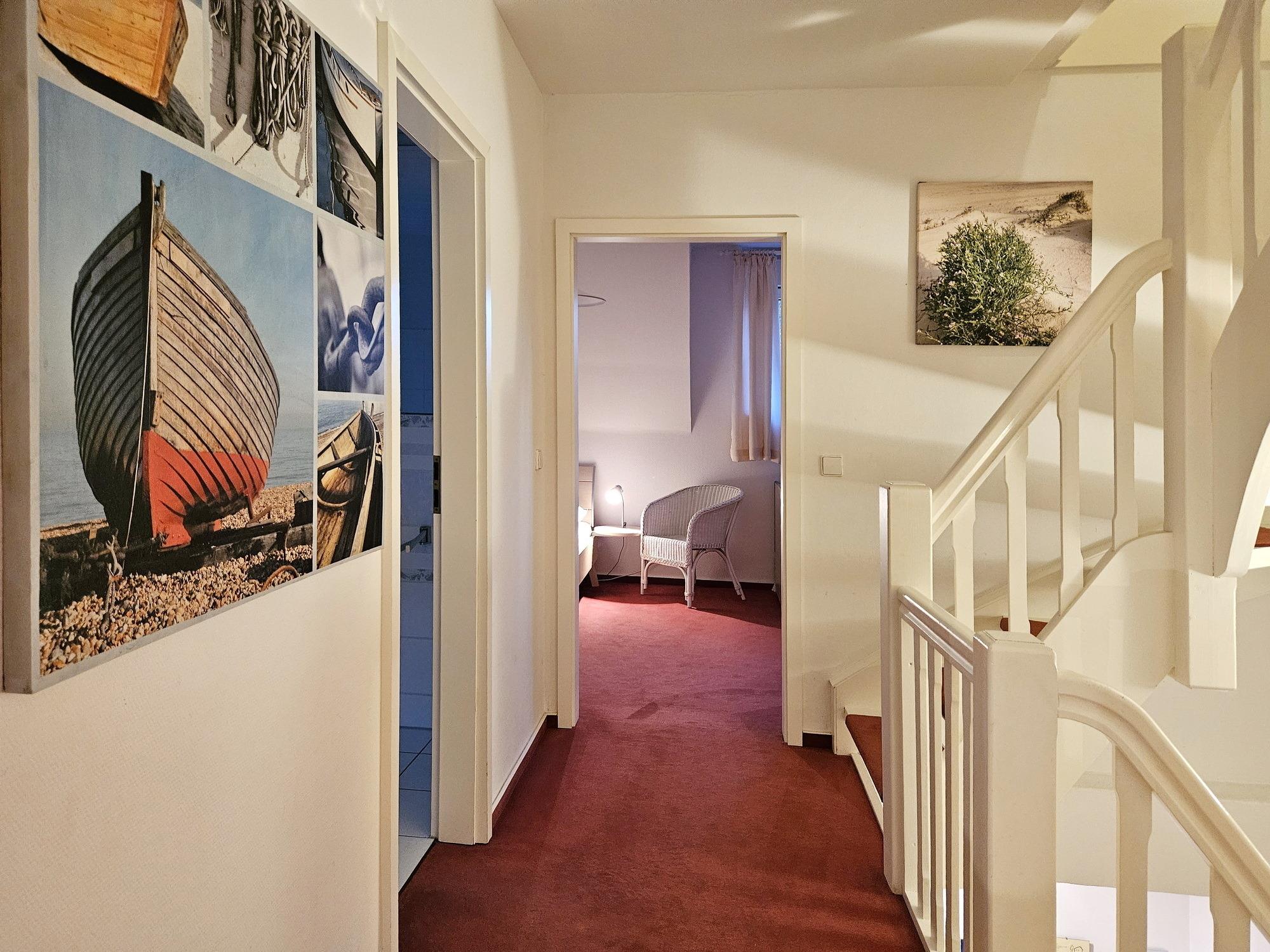 Das Haus bietet genügend Platz für bis zu 8 Personen und ist somit ideal für Familien oder Gruppen geeignet. In einem Schlafzimmer befindet sich ein Kinderbett, so das zusätzlich noch Platz für ein Kleinkind vorhanden ist. Die Ausstattung umfasst unter anderem eine voll ausgestattete Küche, ein gemütliches Wohnzimmer mit grßem Esstisch, sowie kleine Bad mit Dusche und WC im EG und ein großes Badezimmer im 1.OG mit 2 Waschbecken, Dusche, Badewanne und WC. Im Außenbereich gibt es eine Terrasse und einen Garten, wo man die Natur und die Ruhe genießen kann. Die Umgebung lädt zu Spaziergängen und Fahrradtouren ein und auch der Strand ist nicht weit entfernt. Insgesamt bietet die Ferienhaushälfte eine perfekte Möglichkeit, um einen erholsamen und entspannten Urlaub in der Natur zu verbringen.