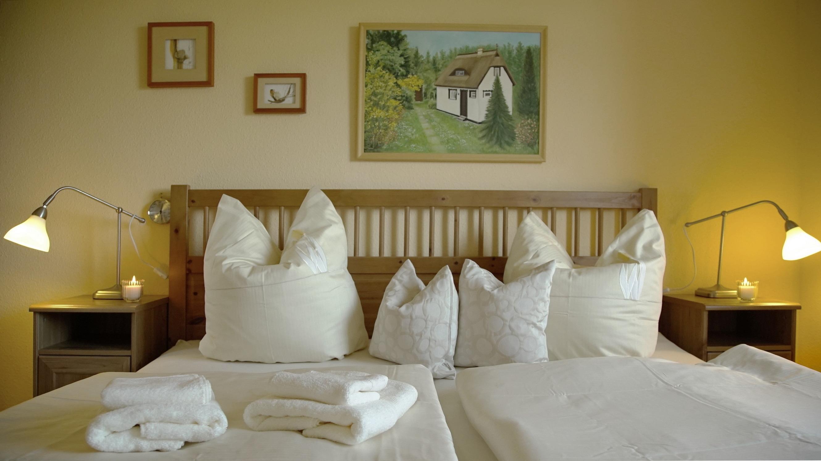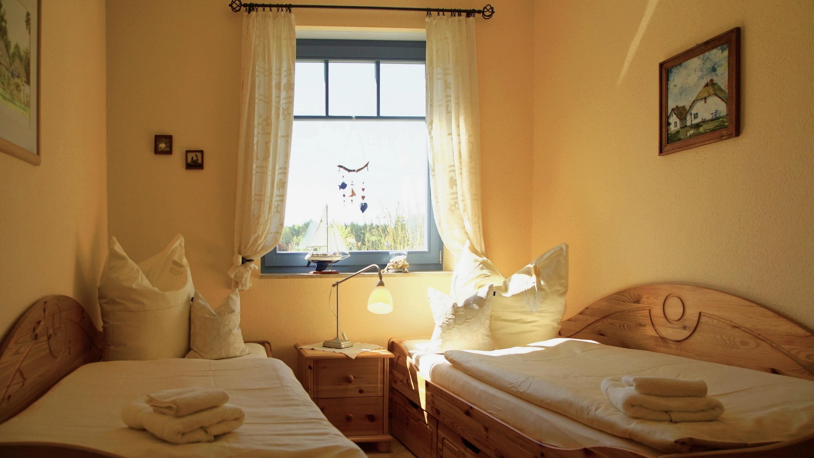 Die Wohnung verfügt über zwei Schlafzimmer, die modern und freundlich eingerichtet sind. Die Wohnung kann standardmäßig mit zwei Personen (Aufbettung bis zu 4 Personen möglich) belegt werden. Das Duschbad mit Fenster verfügt auch über eine Waschmaschine, die gegen Gebühr genutzt werden kann. Im Fahrradschuppen können Sie Ihre Fahrräder sicher unterstellen. Hier finden Sie auch einen Grill. Rauchen ist nicht gestattet. Bettwäsche und Handtücher sind nicht inklusive, können aber dazu gebucht werden. Haustiere sind nicht gestattet.