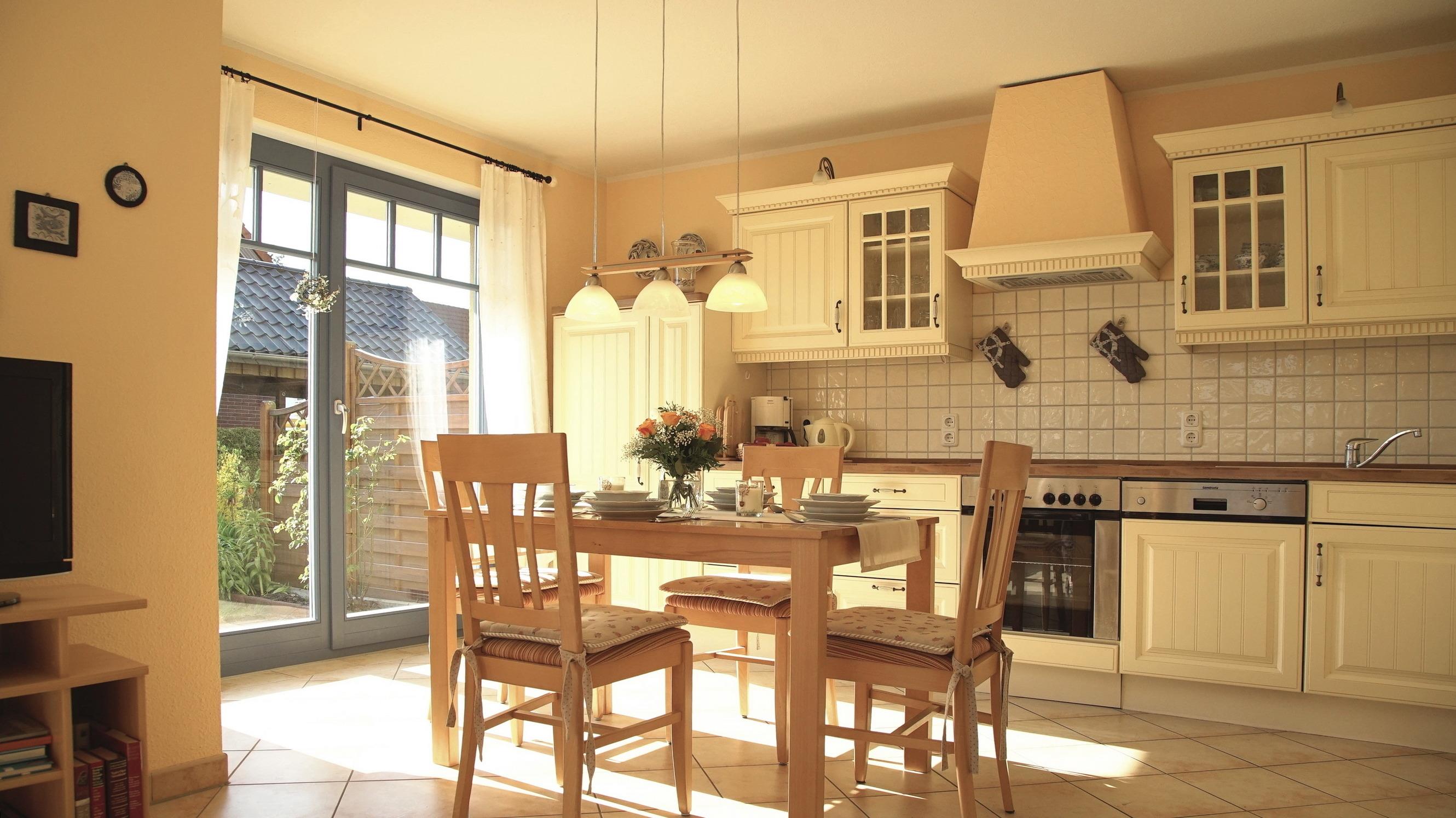 Die exklusive Küche bietet alles, was man braucht, um sich auch, fernab von zu Hause, selbst kulinarisch zu verwöhnen. Sie verfügt zum Beispiel über einen modernen Backofen, ein Geschirrspüler, eine Kaffeemaschine und vieles mehr. Die Küche ist sehr schön in den Wohnbereich integriert. Im Wohnzimmer erwartet Sie eine bequeme Couch mit Blick auf die große Süd-/ West-Sonnentrasse. Gartenmöbel sind vorhanden.