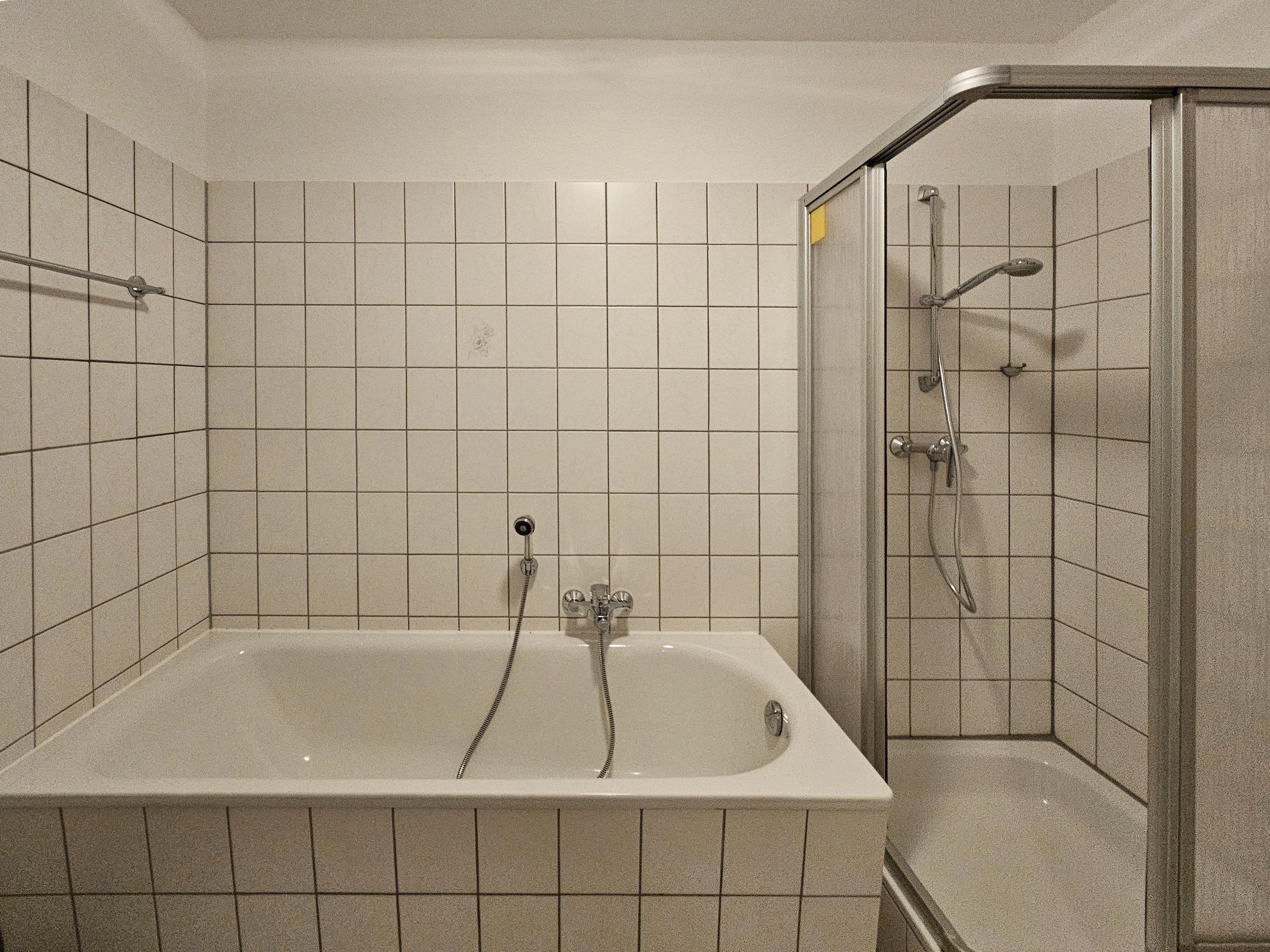 Das eigene Bad ist mit Dusche und WC ausgestattet. Im gesamten Bereich sind Dachschrägen vorhanden. Zwischen Wohn- und Schlafbereich sind keine Türen.