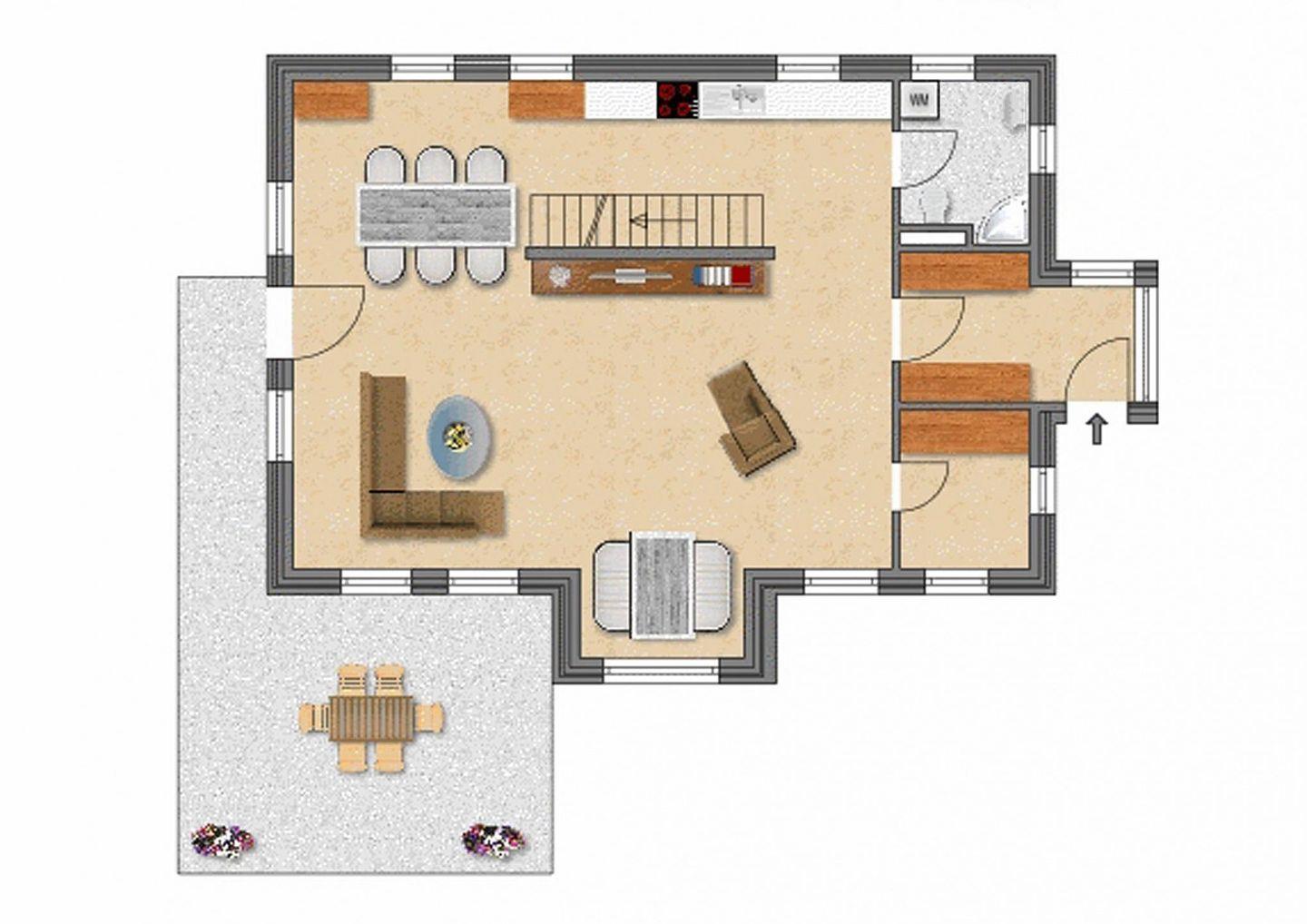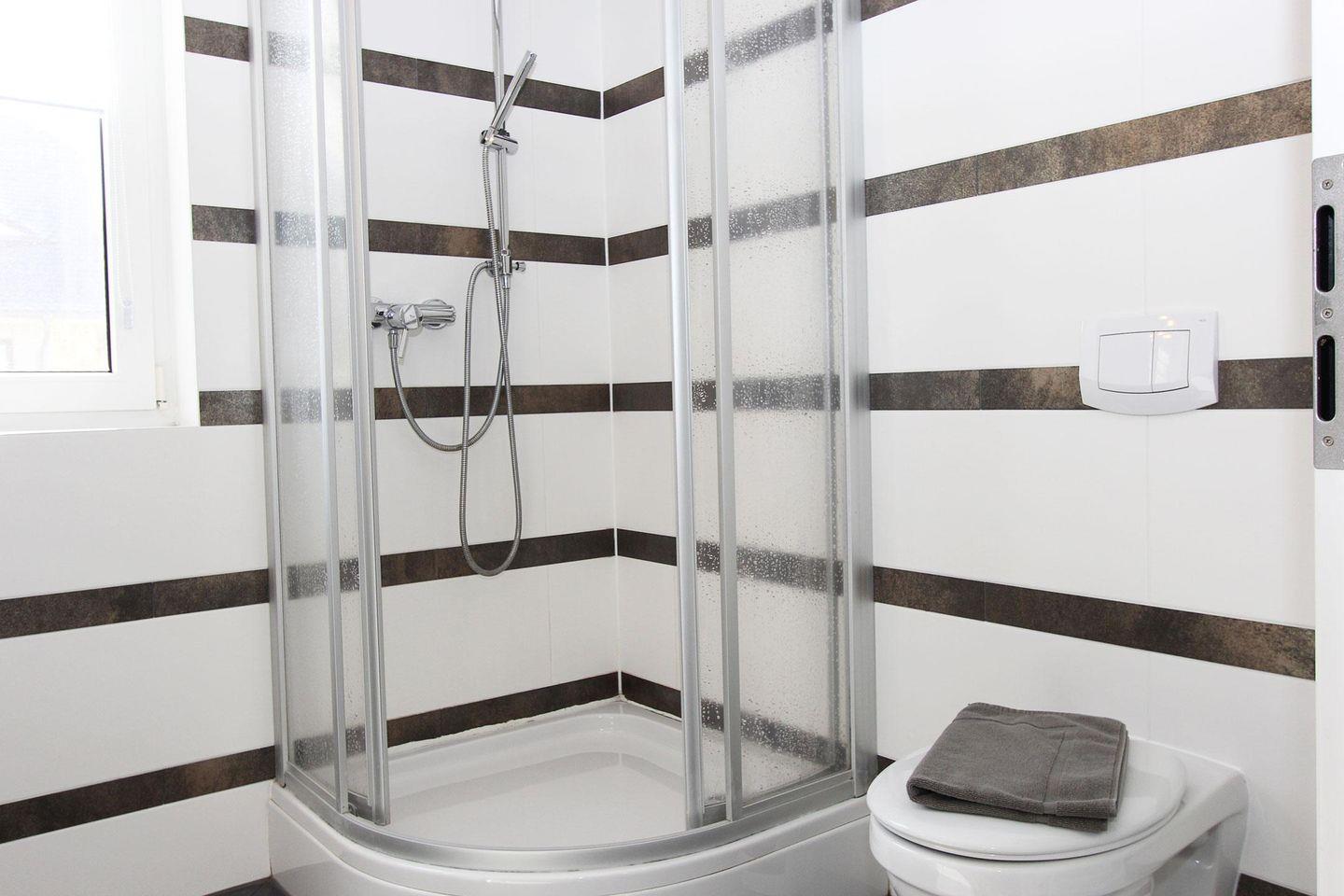 Ein Duschbad mit Toilette befindet sich im Erdgeschoss.