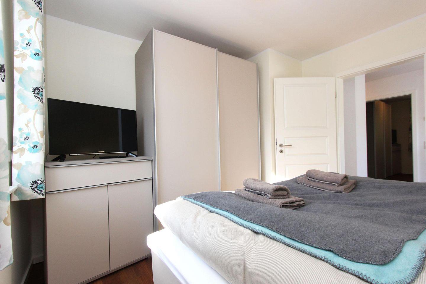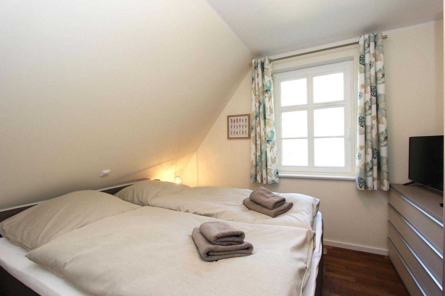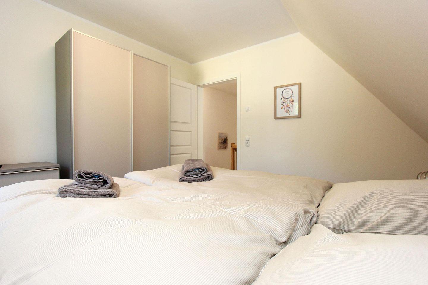 Im Erdgeschoss befindet sich ein zusätzliches Schlafzimmer für 1-2 Personen. Im Obergeschoss erwarten Sie drei Schlafzimmer mit jeweils einem Doppelbett. Diese Zimmer haben eine Verdunklungsmöglichkeit und sind mit Insektenschutz ausgestattet.