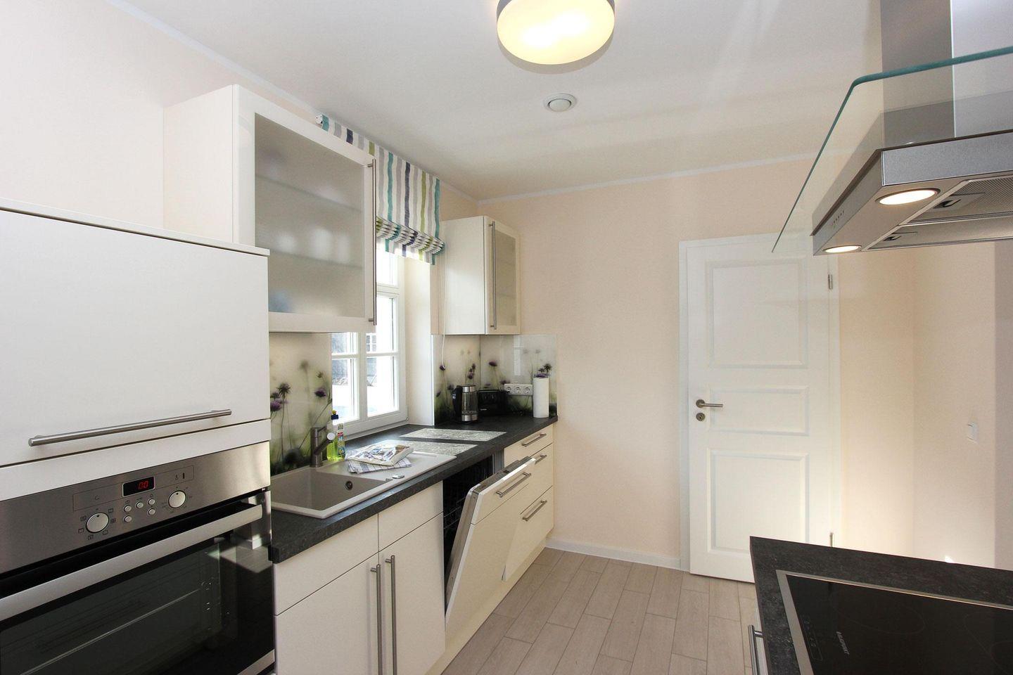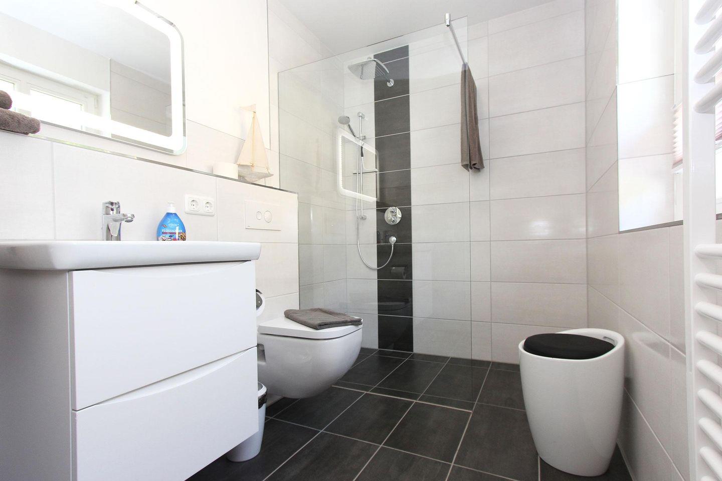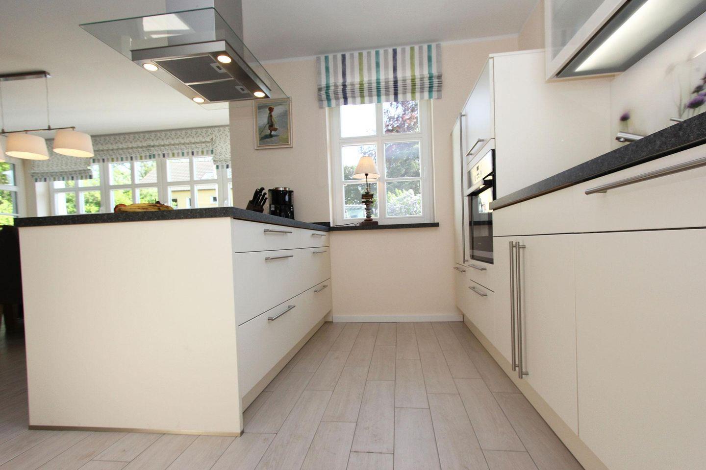 Die hochwertig ausgestattete und zum Wohnzimmer hin offene Küche lässt keine Wünsche offen. Ein großer Esstisch und eine gemütliche Couch komplettieren den Wohnkomfort. Das Haus verfügt im Erd- und Obergeschoss über ein Badezimmer. Eines mit einer geräumigen Dusche und das andere mit Dusche, Badewanne und angrenzender Sauna.