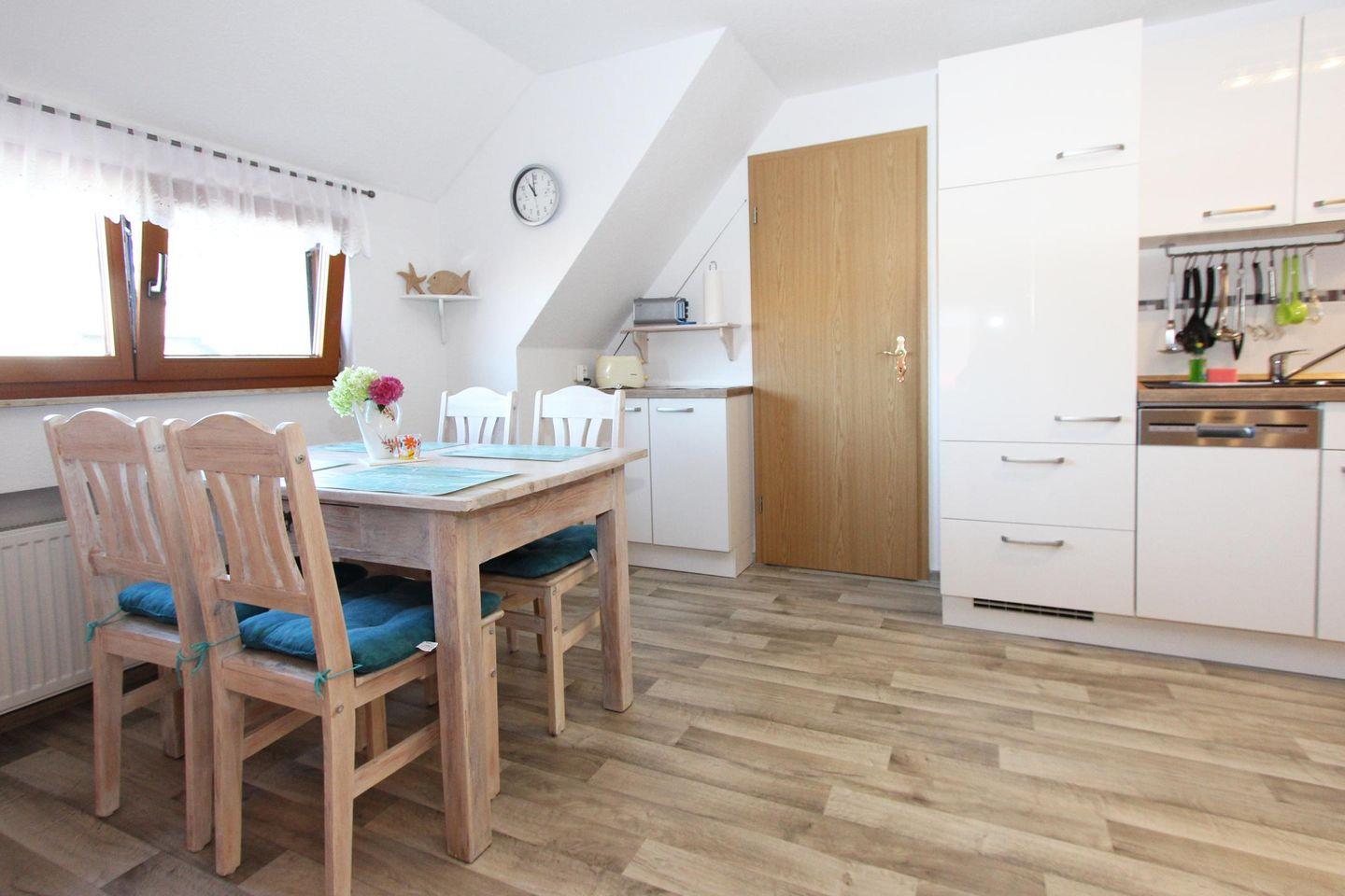 Die Wohnung bietet zwei gemütliche Schlafzimmer, die mit Bettwäsche ausgestattet sind und zu einem erholsamen Schlaf einladen. Der offene Wohnbereich mit einem Sofa, einem Essbereich und Fernseher schafft eine einladende Atmosphäre für gesellige Abende. Die gut ausgestattete, separate Küche lädt dazu ein, Ihre Lieblingsgerichte zuzubereiten. Hier finden Sie alles, was Sie brauchen: Ceran-Herd, Mikrowelle, Backofen, Kühlschrank, Spülmaschine, Kaffeemaschine, Toaster sowie Geschirr und Kochutensilien.