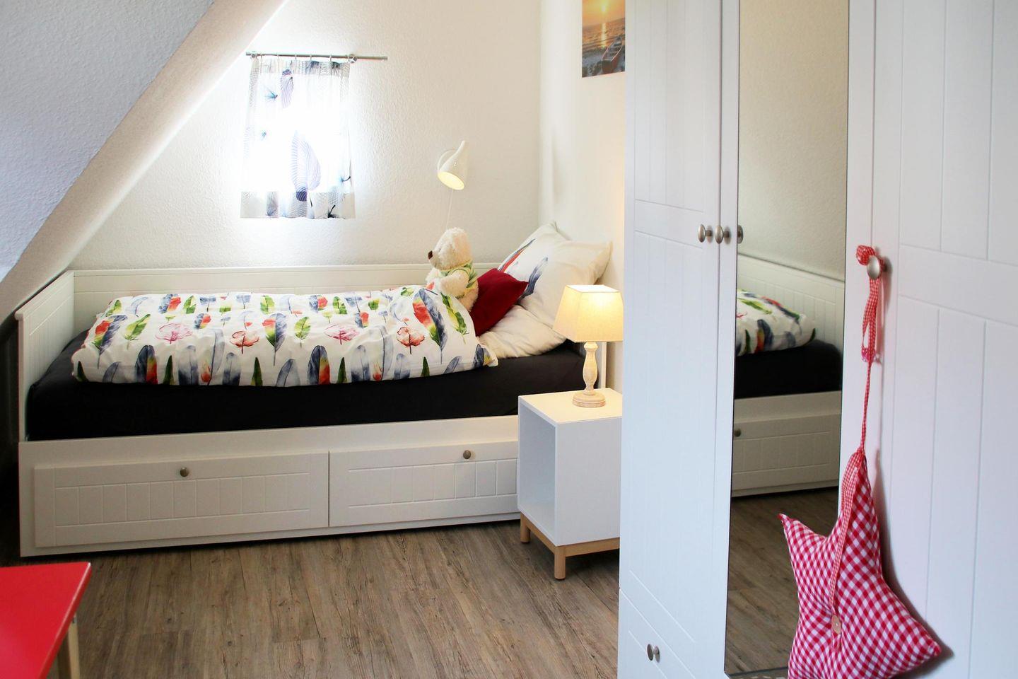 - Gaubenzimmer 1, mit Einzelbett 100 x 200,1 Kinder-Reisebett, Kleiderschrank, Spielecke