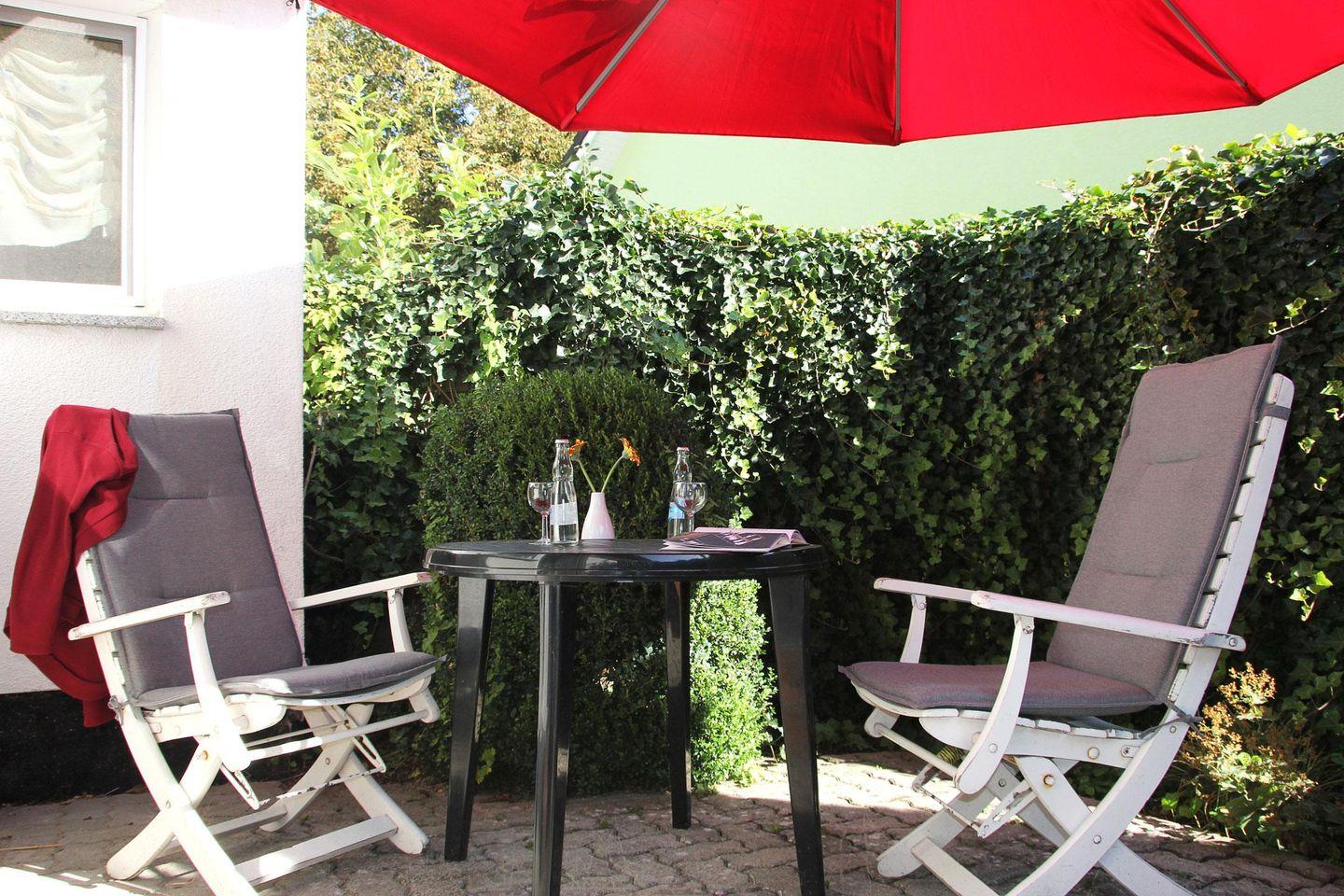 Die Wohnung befindet sich im Erdgeschoss eines Hauses mit insgesamt vier Wohnungen. [nbsp]Im Wohnbereich finden Sie eine gemütliche Couch und Sessel für Ihre Fernsehabende. Das komfortable Schlafzimmer mit großen Fenstern und das helle, geräumige Bad runden die Ferienunterkunft ab. Auf der angrenzenden Terrasse können sie an lauen Sommerabenden den Tag sanft ausklingen lassen.