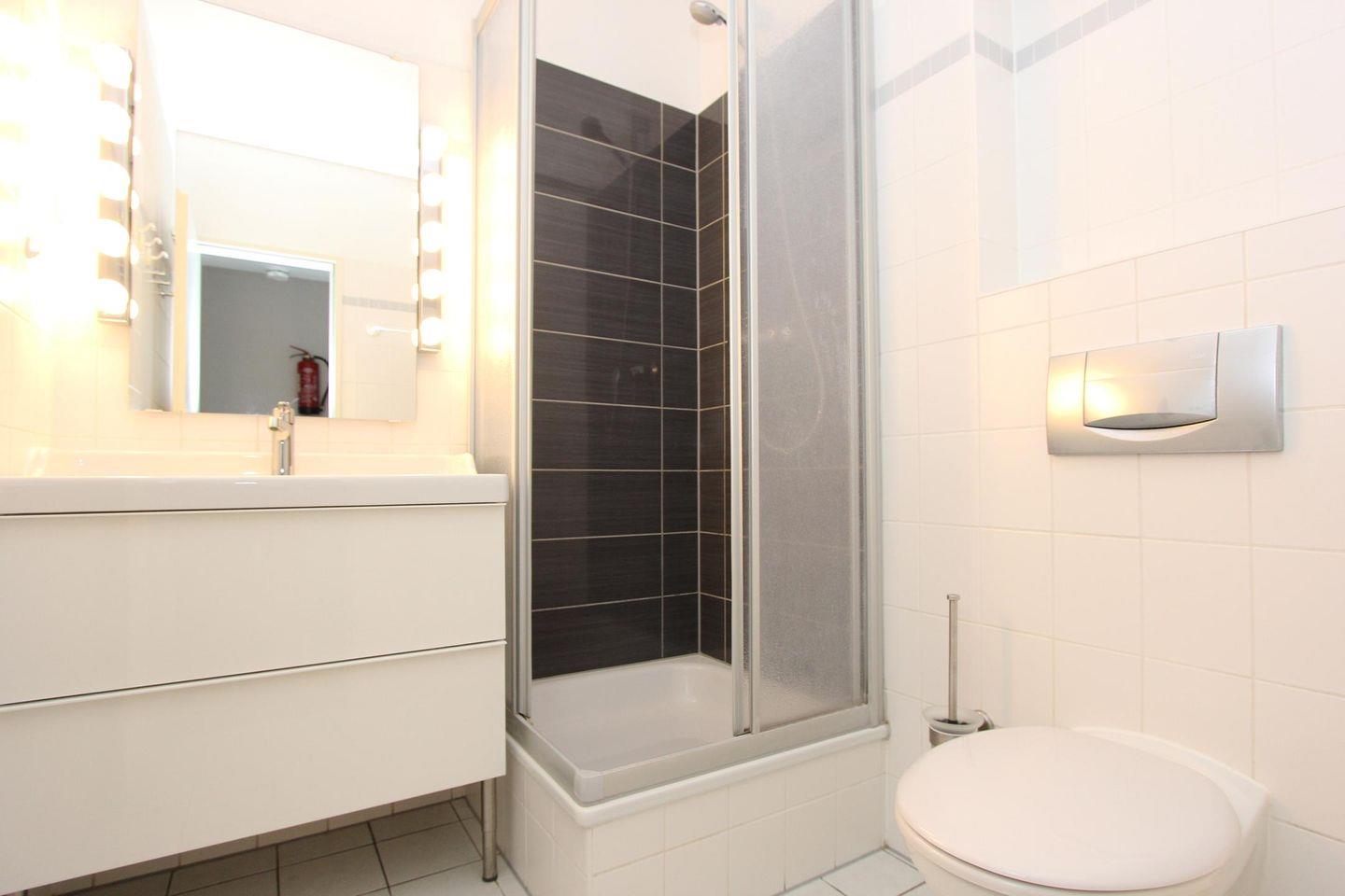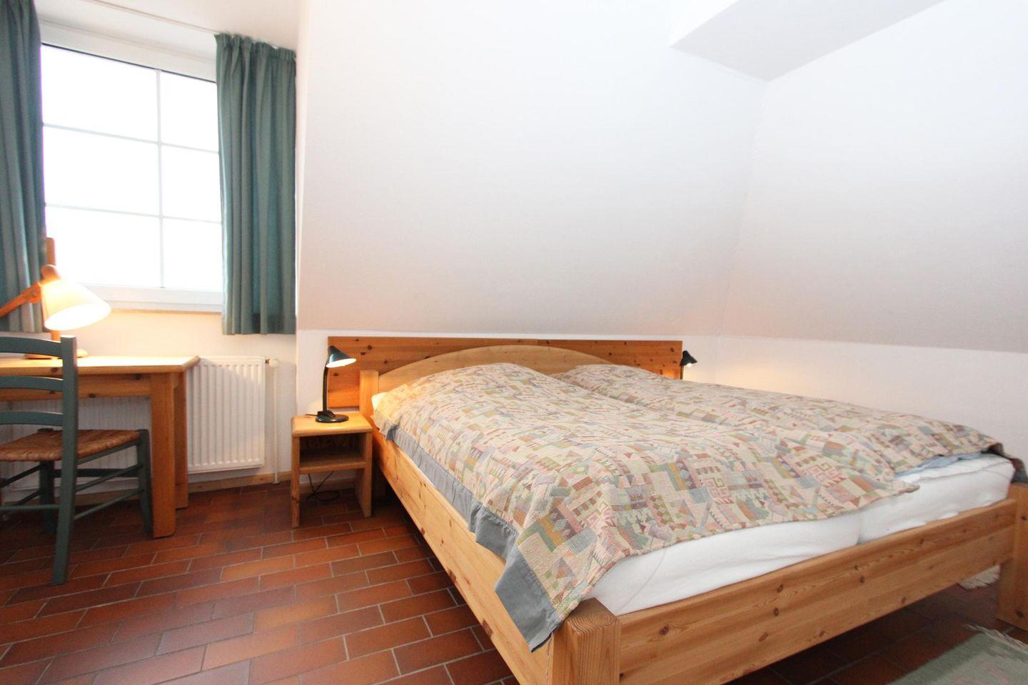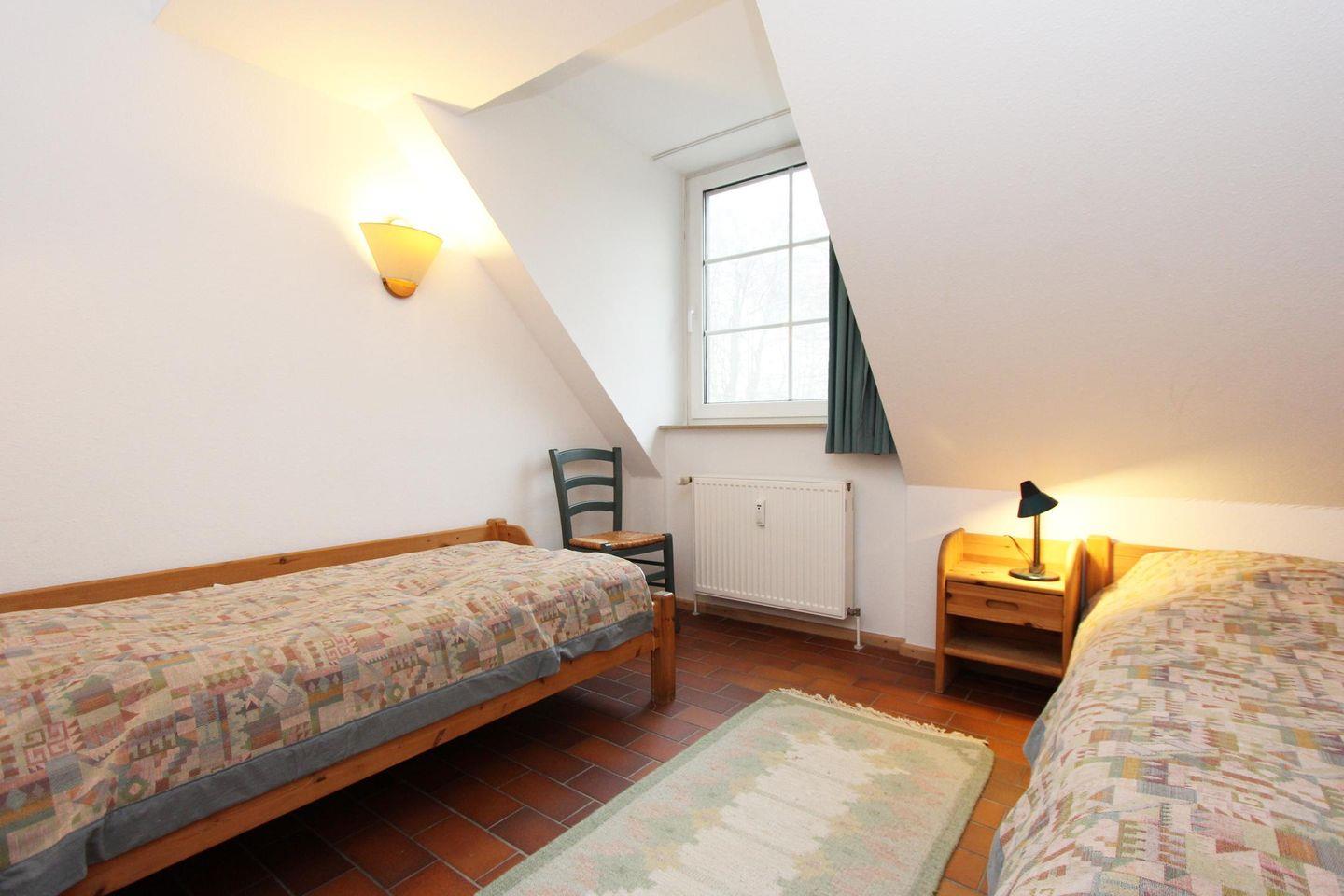 Im hellen Dachgeschoss der Wohnung befinden sich die zwei Schlafzimmer mit je einem Doppelbett und zwei Einzelbetten. Auf dieser Ebene befindet sich das zweite Duschbad mit WC.