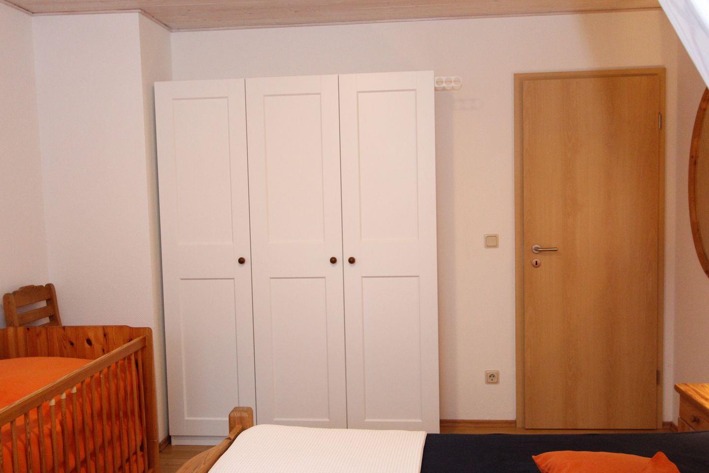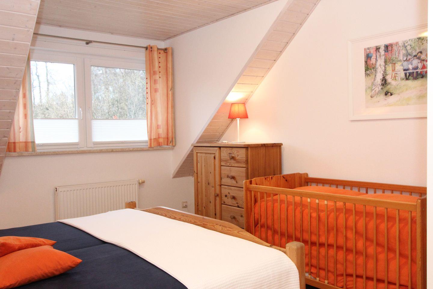 Die Schlafzimmer sind mit jeweils einem Doppelbett und großen Kleiderschränken ausgestattet. Es steht zusätzlich ein Kinderbett zur Verfügung. Zum Schutz für Kleinkinder gibt es ein Treppengitter , auch ein Trip-Trap ist vorhanden.