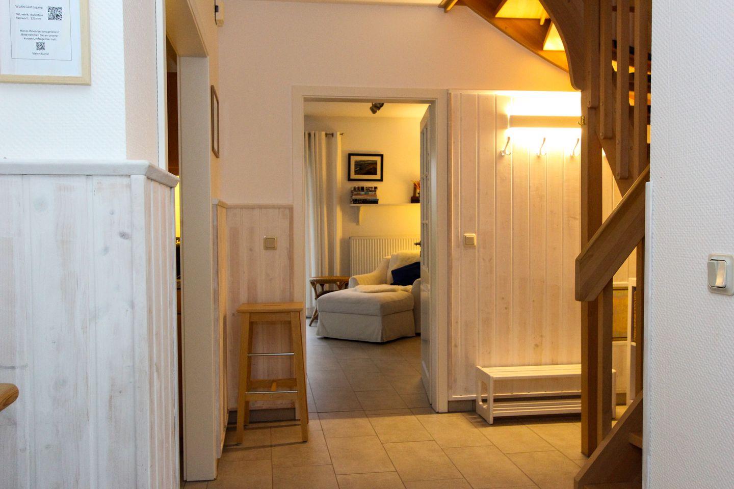 Für einen erholsamen Urlaub erwarten Sie im Erdgeschoss des Hauses ein großer, offener Wohnbereich mit gemütlicher Fernsehcouch, Sitzplätzen zum Lesen an einem Kaminofen und ein großer Esstisch im angrenzenden Wintergarten. Der Internetfähige Fernseher lässt keine Wünsche offen.
