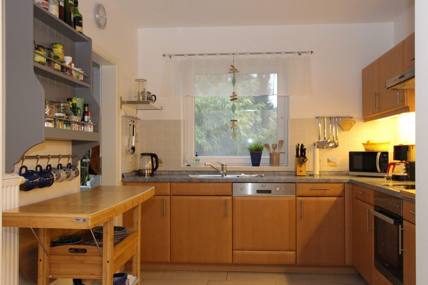Auch eine separate, voll ausgestattete Küche mit anschließendem Hauswirtschaftsraum und ein Duschbad sorgen für ausreichend Wohnkomfort im Erdgeschoss.