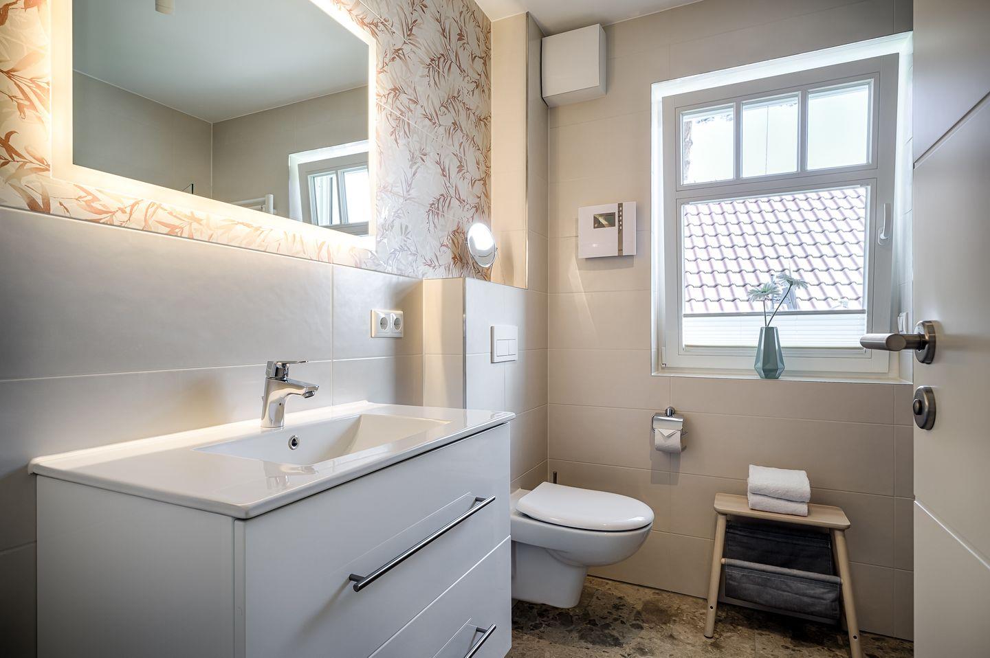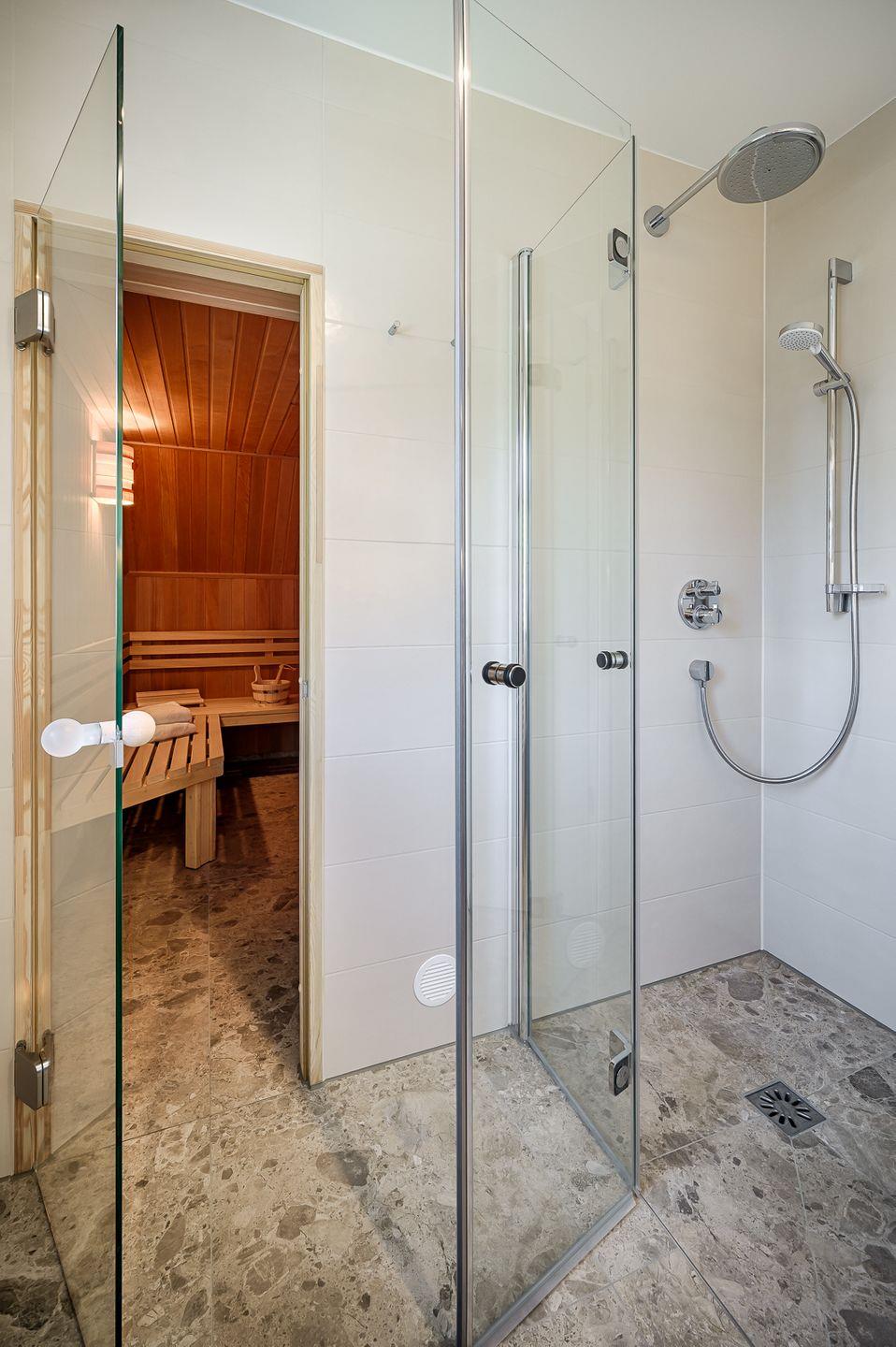 Tageslichtbad mit ebenerdiger Dusche und anliegender Sauna (ohne Gebühr)