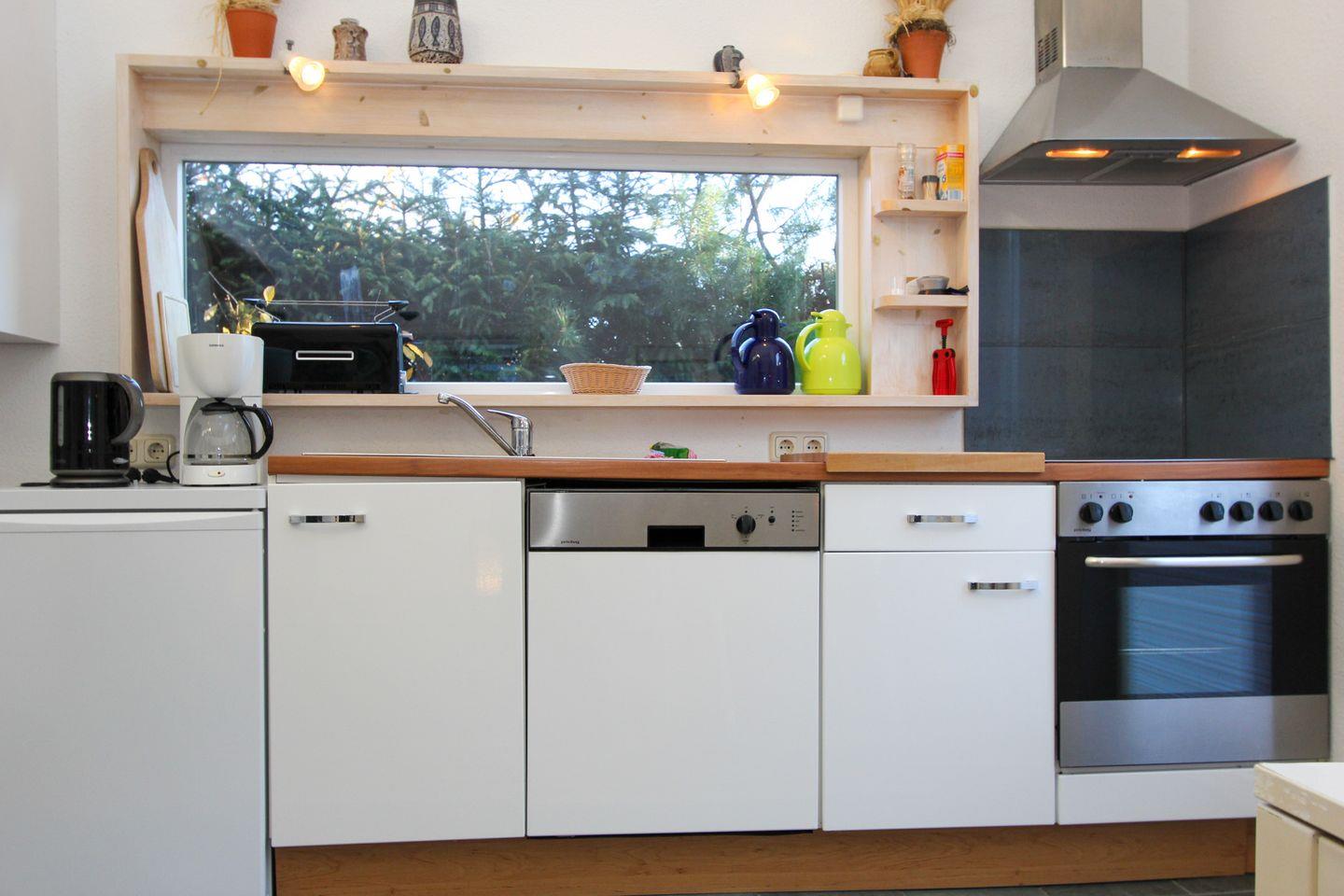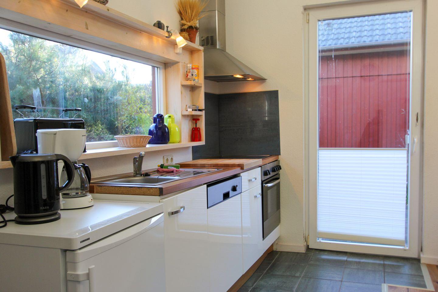 Über einen privaten Parkplatz am Haus betreten Sie das Ferienhaus in zweiter Reihe. Das großzügige und lichtdurchflutete Erdgeschoss bietet Raum für Erholung auf der Fernsehcouch und auch eine gut ausgestattete Küche samt Essbereich. Von hier aus können Sie im Sommer auch die naturbelassene Terrasse im Grünen zum Frühstücken oder für den geselligen Grillabend nutzen.