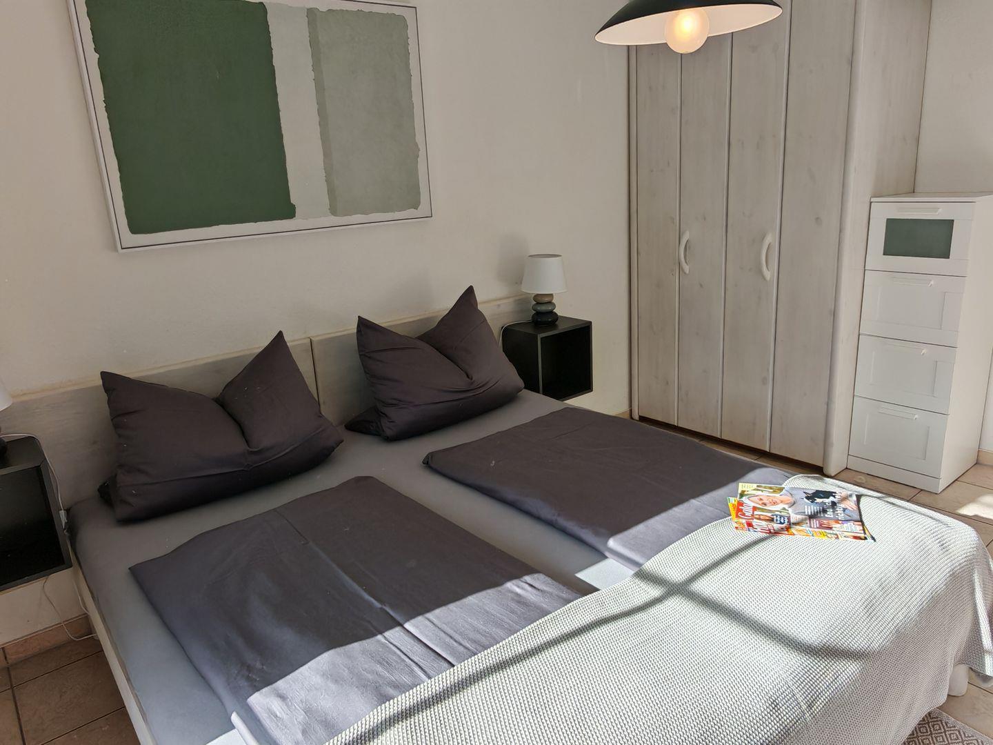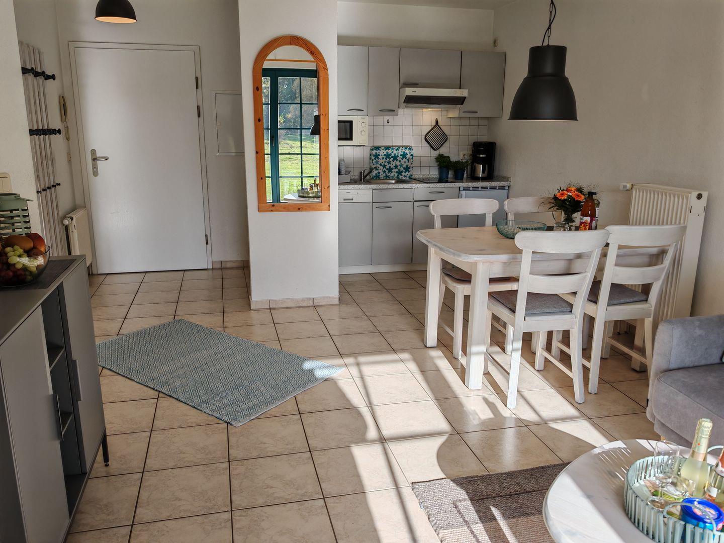 Willkommen in unserer 48-qm-Ferienwohnung! (ehemals "Börge") Natürliches Licht durchflutet Schlaf- und Wohnzimmer. Die geschmackvolle Einrichtung schafft eine besonders warme Atmosphäre. Im Wohnzimmer erwarten Sie ein komfortables Sofa und ein bequemer Sessel zum Entspannen. Das separate Schlafzimmer verspricht erholsame Nächte in harmonischem Ambiente. Die Besonderheit ist die nach Süden ausgerichtete Terrasse, von Wohn- und Schlafzimmer zugänglich, mit unverbautem Blick auf die grüne Wiese.