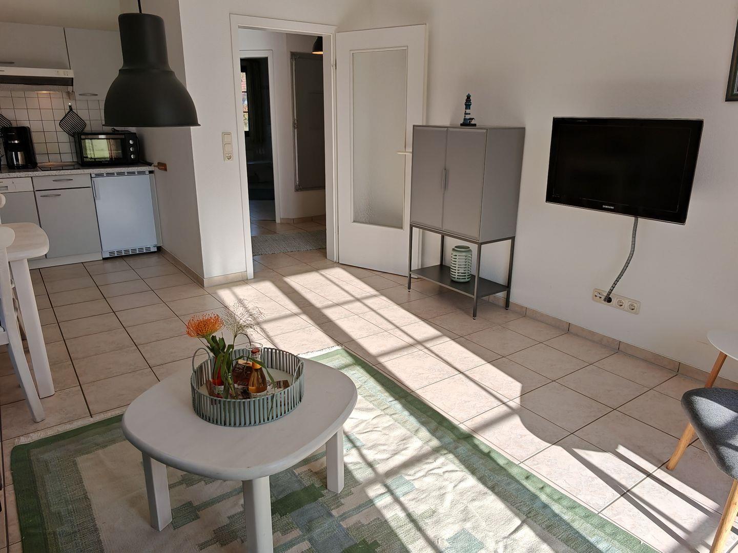 Willkommen in unserer großzügigen 2-Zimmer-Ferienwohnung (ehemals "Börge")! Auf 58 Quadratmetern erwartet Sie eine schöne Raumaufteilung. Das helle Wohnzimmer lädt mit einem bequemen Sofa, gemütlichem Sessel und TV zum Entspannen ein. Das separate Schlafzimmer verspricht erholsamen Schlaf. Die lichtdurchflutete Wohnung schafft eine freundliche Atmosphäre, unterstützt vom Tageslichtbad