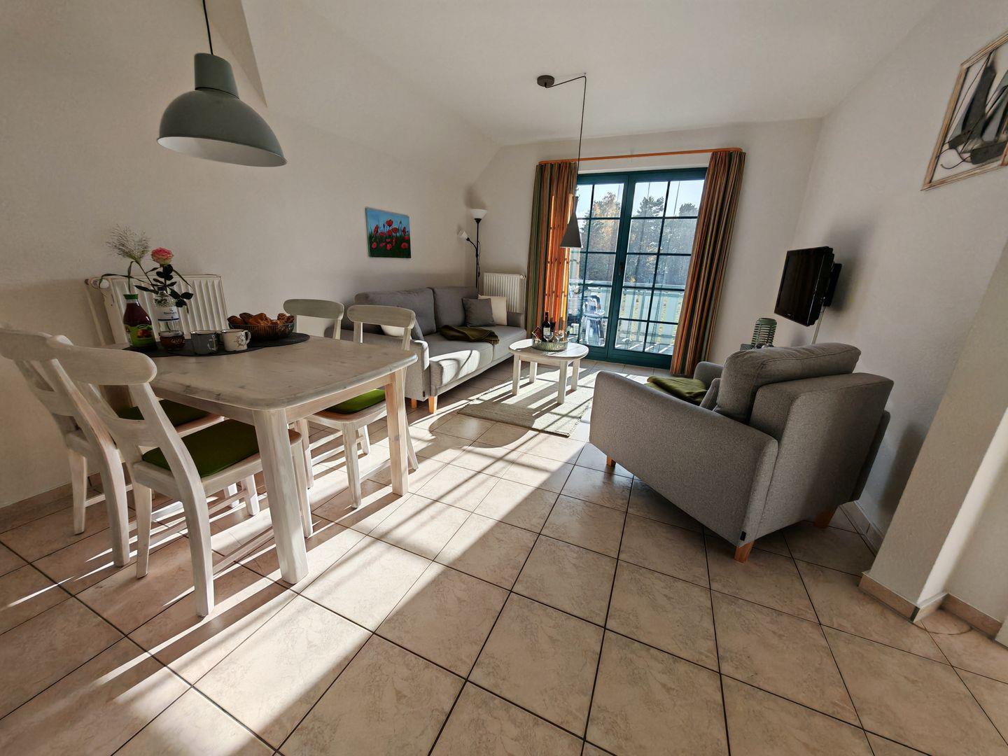 Willkommen in der Ferienanlage Capitän Christoph in unserer hellen und geräumigen Ferienwohnung (ehemals Börge) mit 48 Quadratmetern, die Ihnen ein einladendes Zuhause fernab der Heimat bietet. Der Zugang zum Südbalkon erstreckt sich sowohl vom Wohnzimmer als auch vom Schlafzimmer aus und lädt zu entspannten Momenten in der Sonne mit unverbautem Blick auf die grüne Wiese ein.