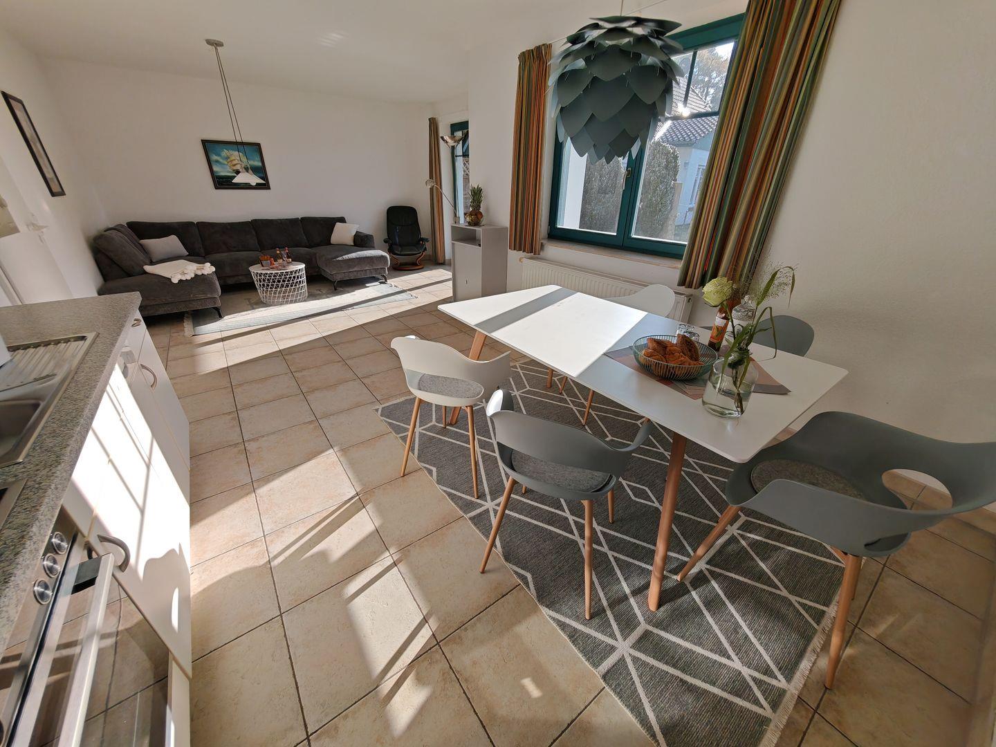 Die geschickte Raumaufteilung und die stilvolle Einrichtung schaffen eine behagliche und zugleich moderne Atmosphäre. Diese Ferienwohnung ist ideal, um gemeinsam eine Auszeit zu nehmen.