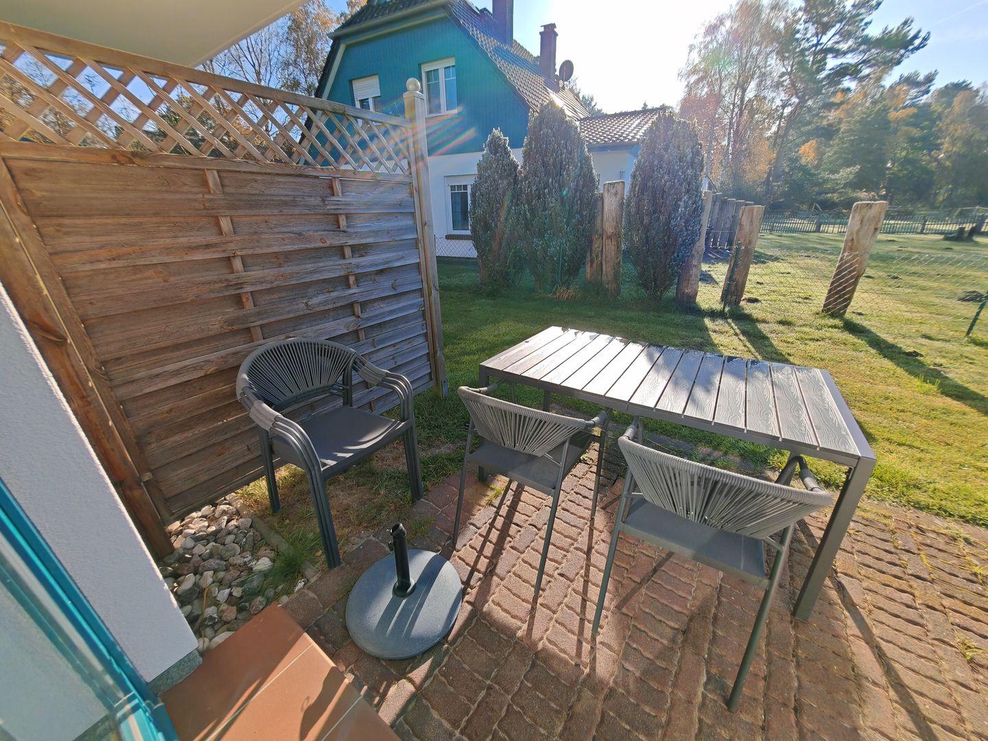 Die Südterrasse ist ein Highlight der Wohnung und bietet einen wunderbaren Ort, um die Sonne zu genießen oder gemütliche Abende im Freien zu verbringen. Hier können Sie bei einem Glas Wein den Tag ausklingen lassen oder morgens mit einer Tasse Kaffee in der Hand die Natur um sich herum erleben.