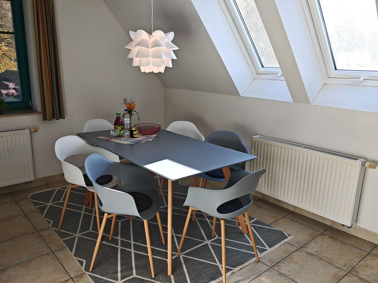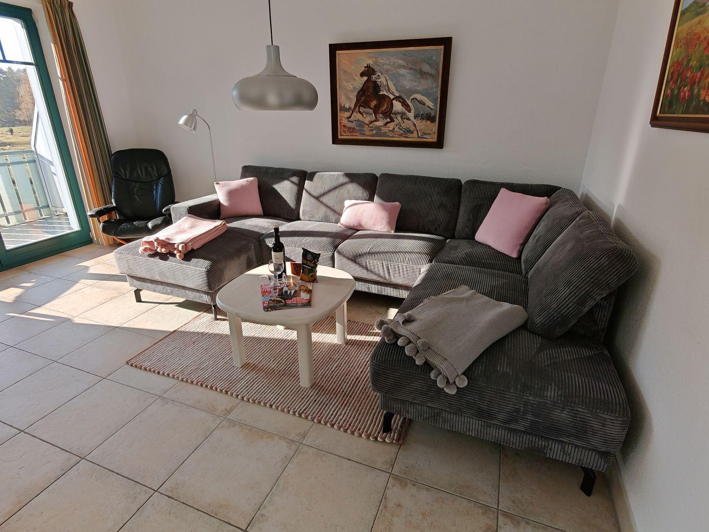 Willkommen in unserer lichtdurchfluteten 3-Zimmer-Ferienwohnung (56 qm) ehemals "Morten". Das Schlafzimmer bietet ein gemütliches Doppelbett, während das zweite Schlafzimmer ein ausziehbares Tagesbett bereithält. Die offene Küche ist modern ausgestattet, und die Essecke lädt zu geselligen Mahlzeiten ein. Im Wohnbereich erwarten Sie ein bequemes Sofa, ein Sessel und ein TV. Der Südbalkon bietet einen malerischen Blick auf Wiese und Wald – der perfekte Ort für entspannte Stunden in der Natur.
