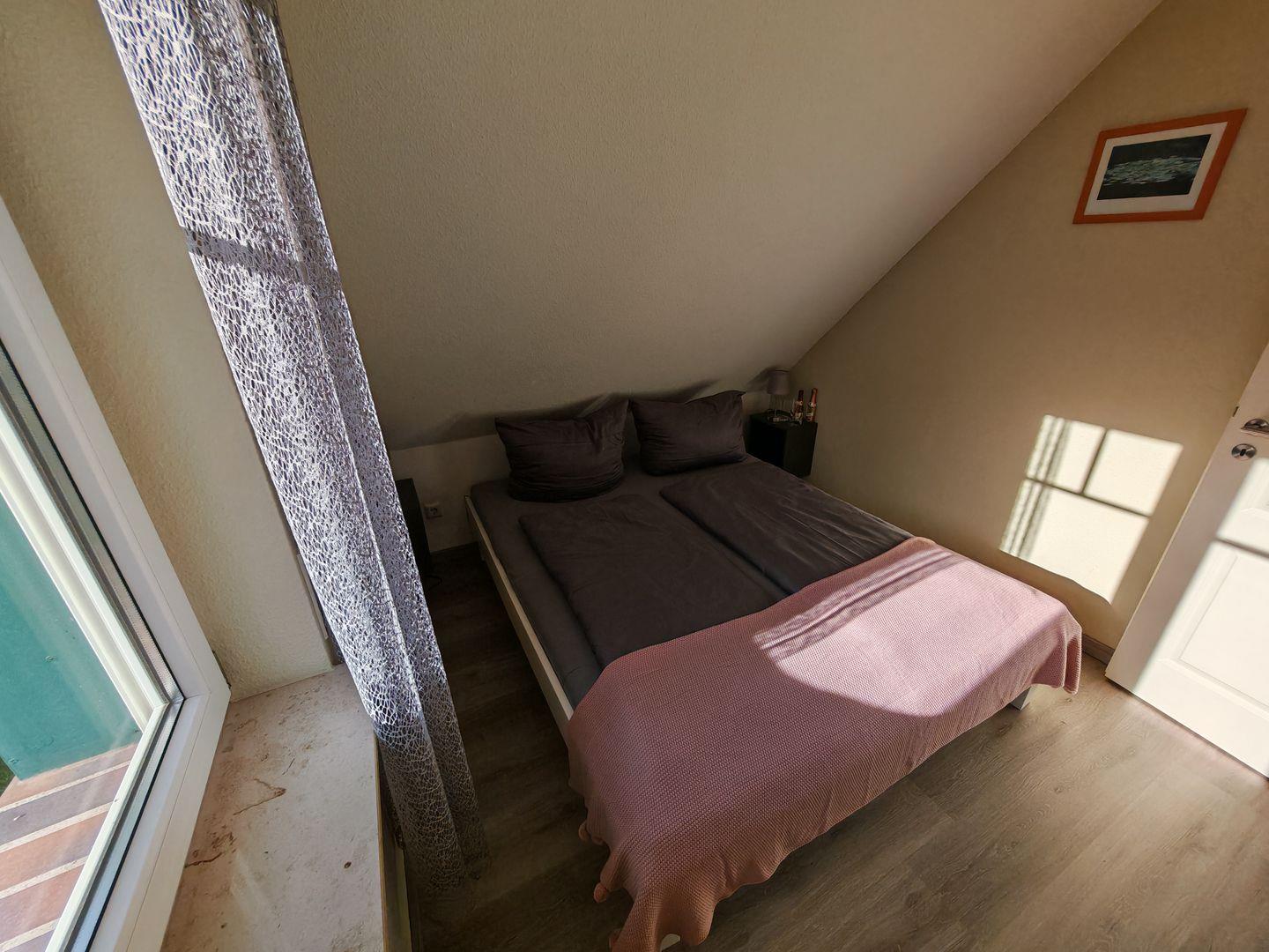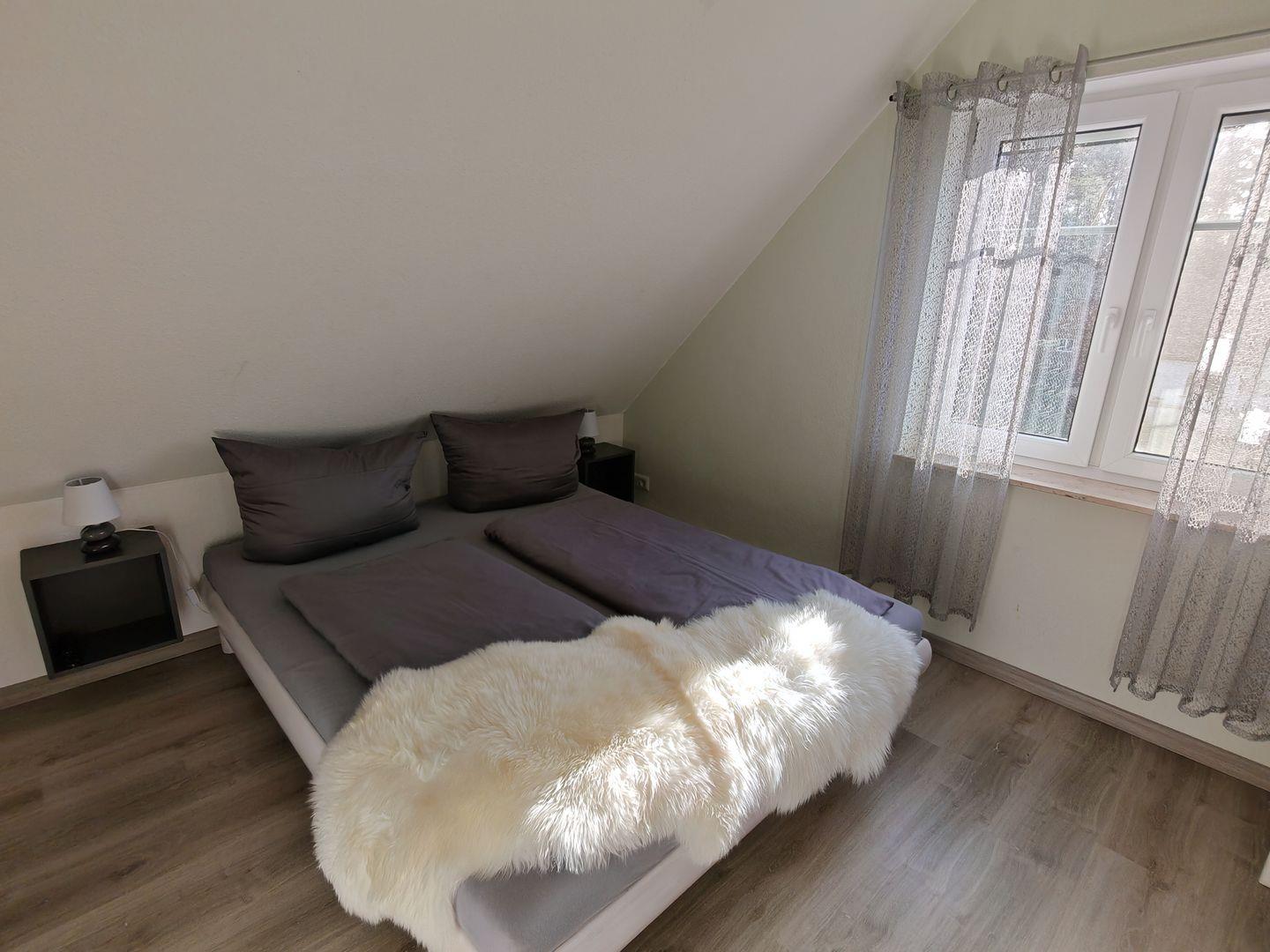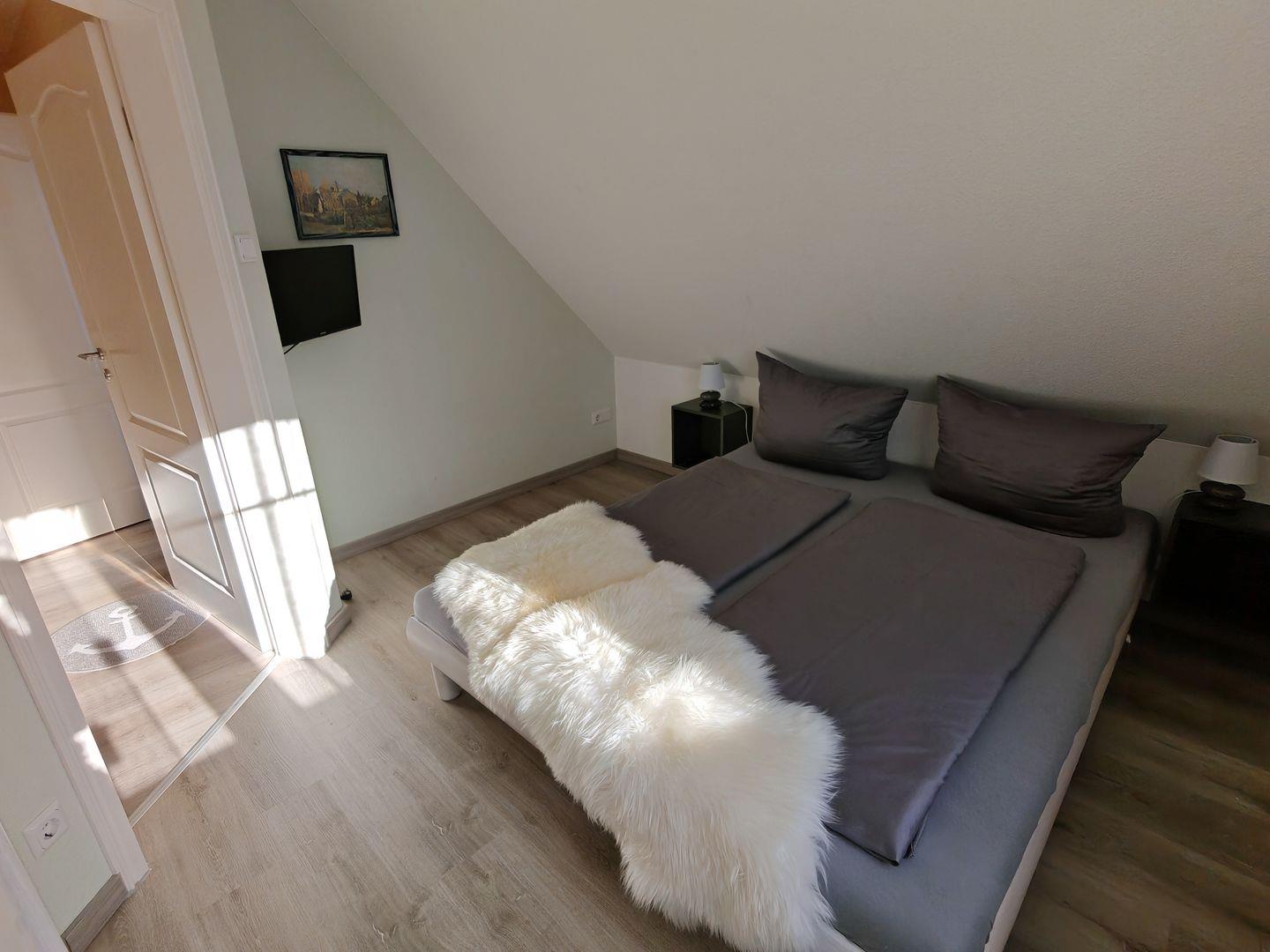 Das Ferienhaus verfügt über insgesamt drei Schlafzimmer, von denen zwei mit komfortablen Doppelbetten und das dritte mit einem ausziehbaren Tagesbett ausgestattet sind. Hier finden bis zu fünf Personen ausreichend Platz für einen erholsamen Schlaf.