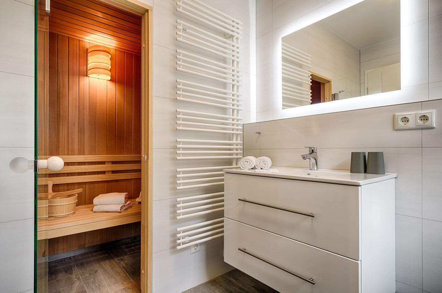 Tageslichtbad mit ebenerdiger DU/WC und anliegender Sauna(kostenfrei)