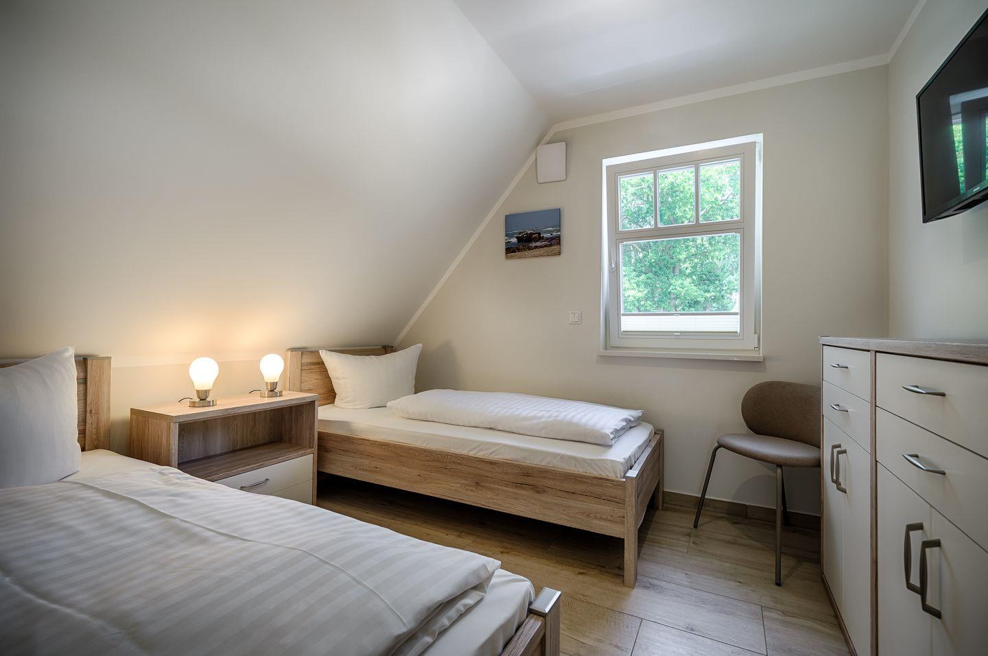 1 Schlafzimmer mit 2 Einzelbetten (0,90 x 2,00m), 1 Schlafzimmer mit 1 Einzelbett (0,90x 2m), TV