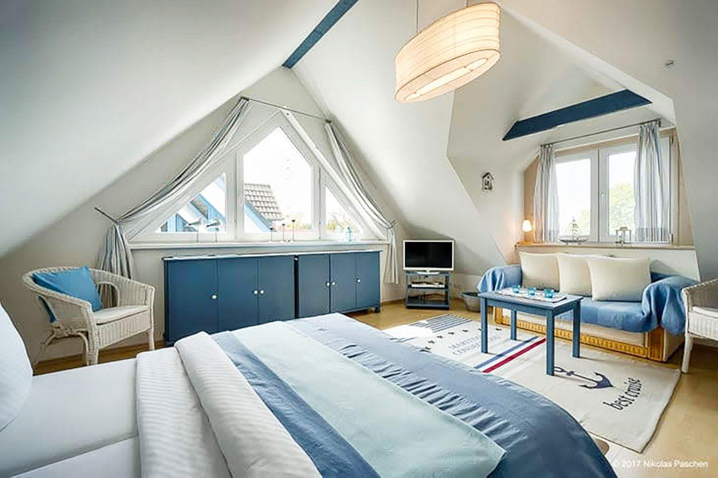 Diese charmante Ferienwohnung im Ortskern von Prerow bietet auf ca. 57 m² Wohnfläche Platz für bis zu 4 Personen und ein Kleinkind (bis 3 Jahre). Die Wohnung erstreckt sich über das Obergeschoss (OG) und Dachgeschoss (DG) und ist ideal für Familien oder Paare.