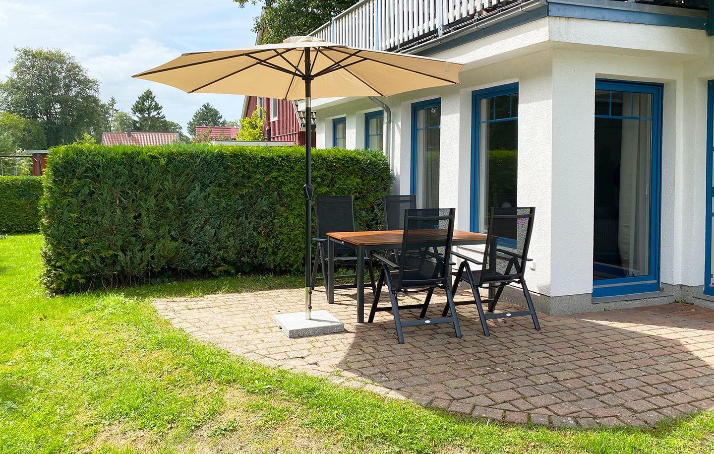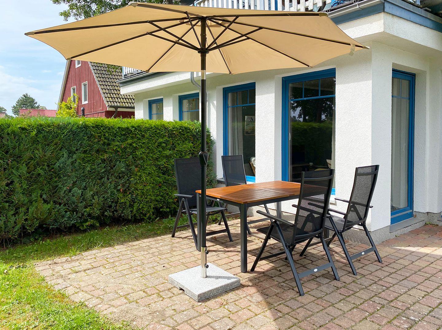 Die möblierte Südterrasse lädt zum Entspannen im Freien ein. Im Garten können Sie das separate Saunahaus zur gemeinschaftlichen Nutzung (6 € für 2 Stunden) nutzen. Bettwäsche kann für 12 € und Handtücher für 8 € pro Person gemietet werden. Diese Nichtraucherwohnung ist perfekt für entspannte Urlaubstage. Haustiere sind leider nicht gestattet. Der kostenfreie Internetzugang über HOTSPLOTS sorgt für zusätzlichen Komfort.