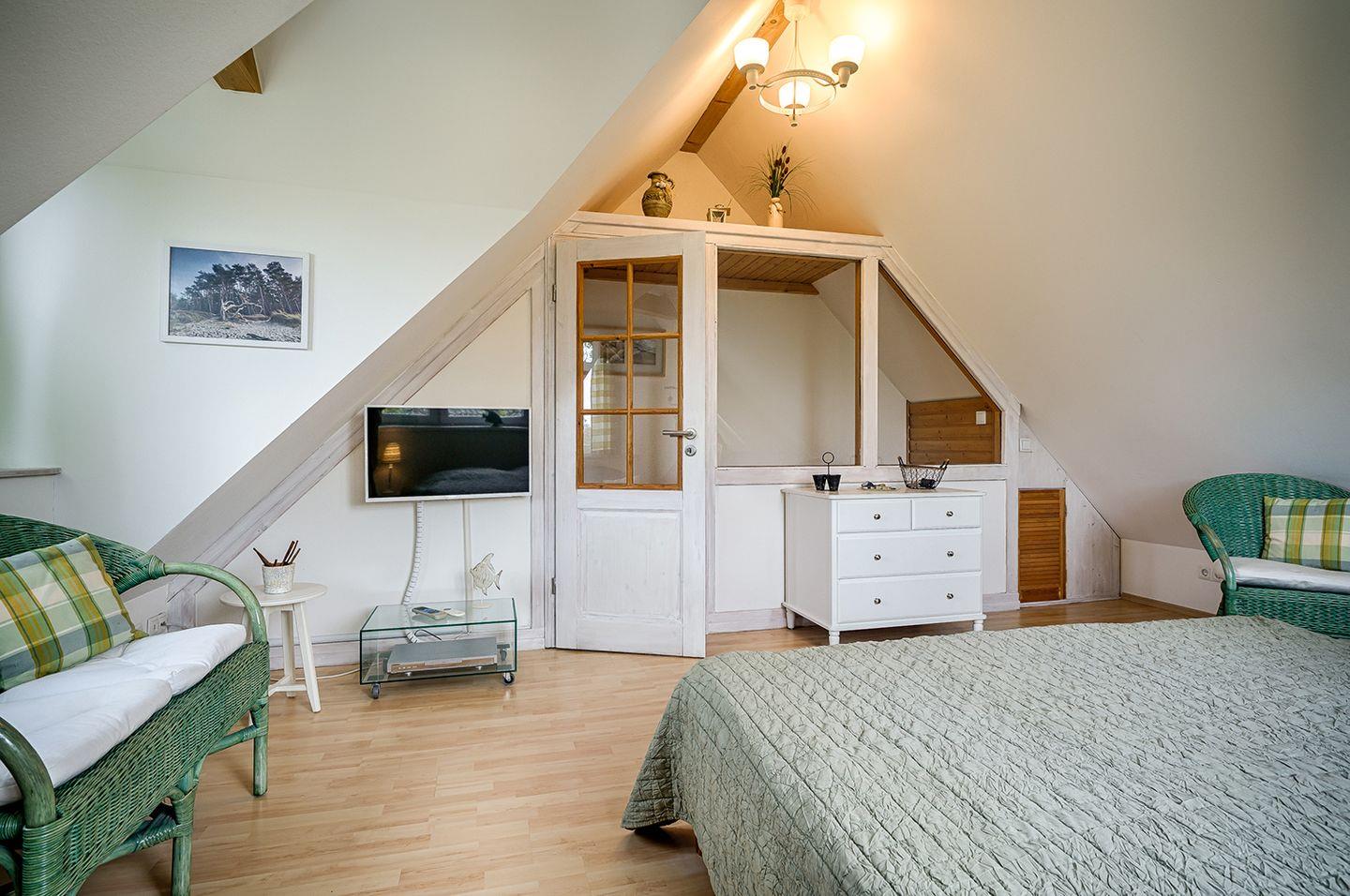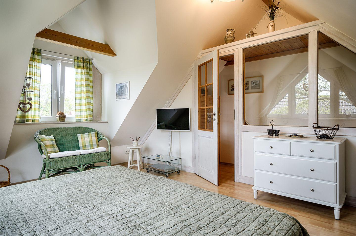 Das erste Schlafzimmer im OG ist mit einem gemütlichen Doppelbett (180 x 200 cm) ausgestattet, während das zweite Schlafzimmer im DG ebenfalls ein Doppelbett (180 x 200 cm) bietet. Hier gibt es zusätzlich ein Radio und Sat-TV für entspannte Abende.