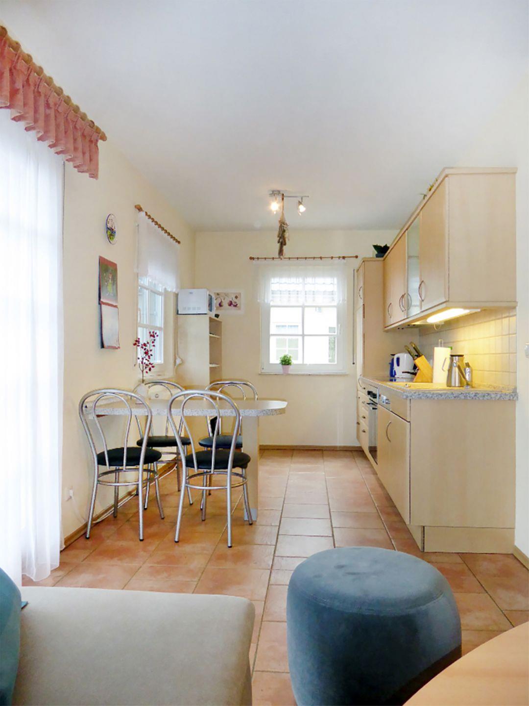 Ferienwohnung bis 4 Personen | ca. 52 m² Wohnfläche | EG Wohnbereich mit Küchenzeile, Bad, Flur, 2 Schlafzimmer | Süd-Terrasse | 1 Parkplatz | Wohnbereich Sitzgarnitur und 2 Sessel, SAT-TV, Radio | Küchenzeile 4-Platten-Ceran-Kochfeld, Backofen, Geschirrspüler, Kaffeemaschine, Toaster, Wasserkocher, Mikrowelle, Kühlschrank mit Gefrierfach, Esstisch mit 4 Stühlen | Bad Dusche, WC | 2 Schlafzimmer 1 Doppelbett (160 x 200 cm) | 2 Einzelbetten (90 x 200 cm) | Nichtraucherwohnung, keine Haustiere erlaubt, ohne Bettwäsche und Handtücher (können gemietet werden) | WLAN | Fahrradschuppen, Fliegenschutzgitter, Gartenmöbel, Waschmaschine