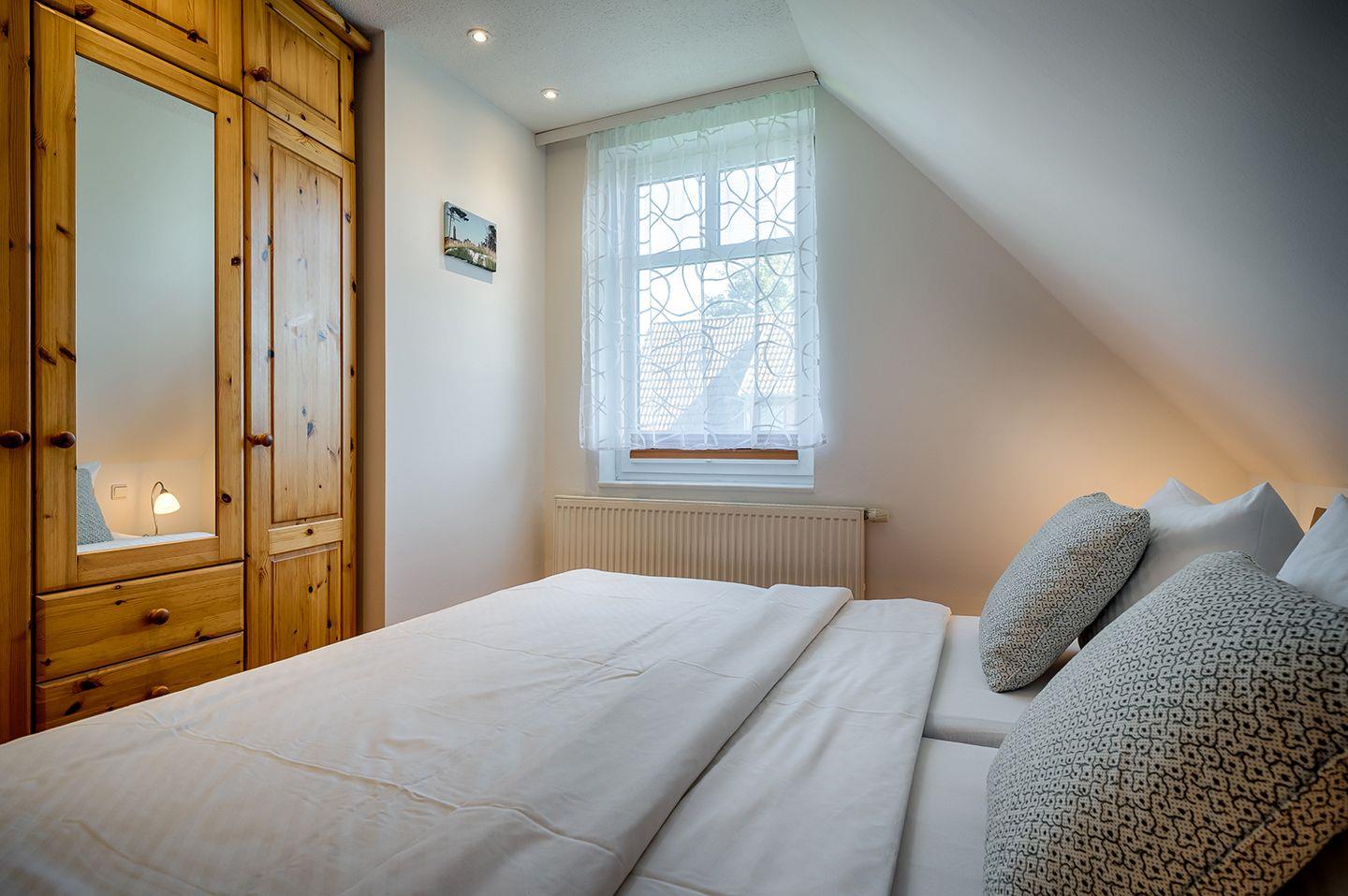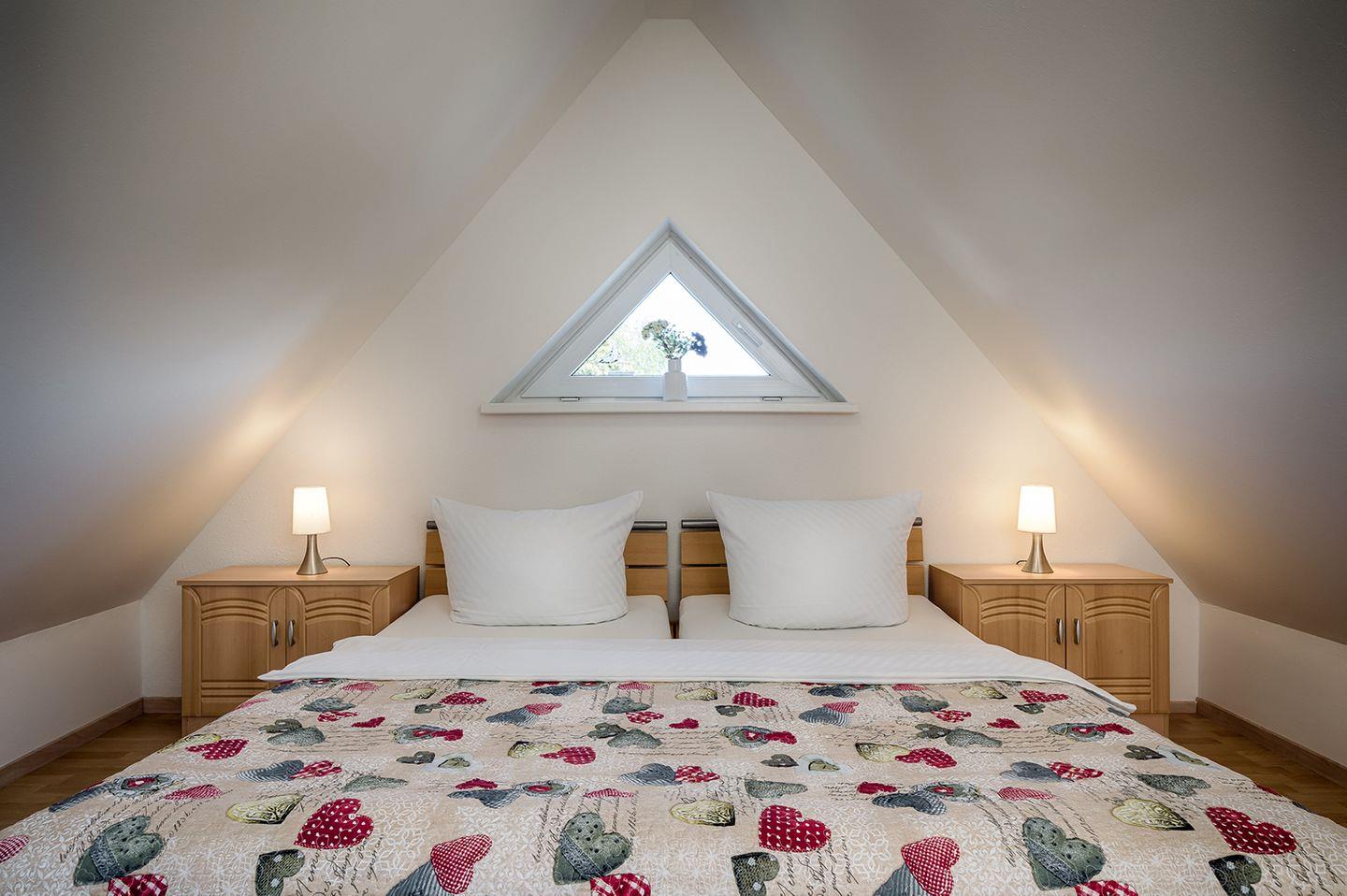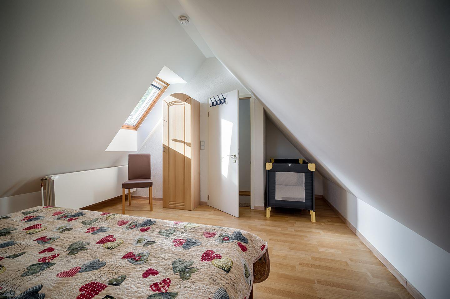 Im Dachgeschoss erwartet Sie ein weiteres Schlafzimmer mit einem Doppelbett (180 x 200 cm). Fliegenschutzgitter sind an allen Fenstern vorhanden, damit Sie ungestört schlafen können.