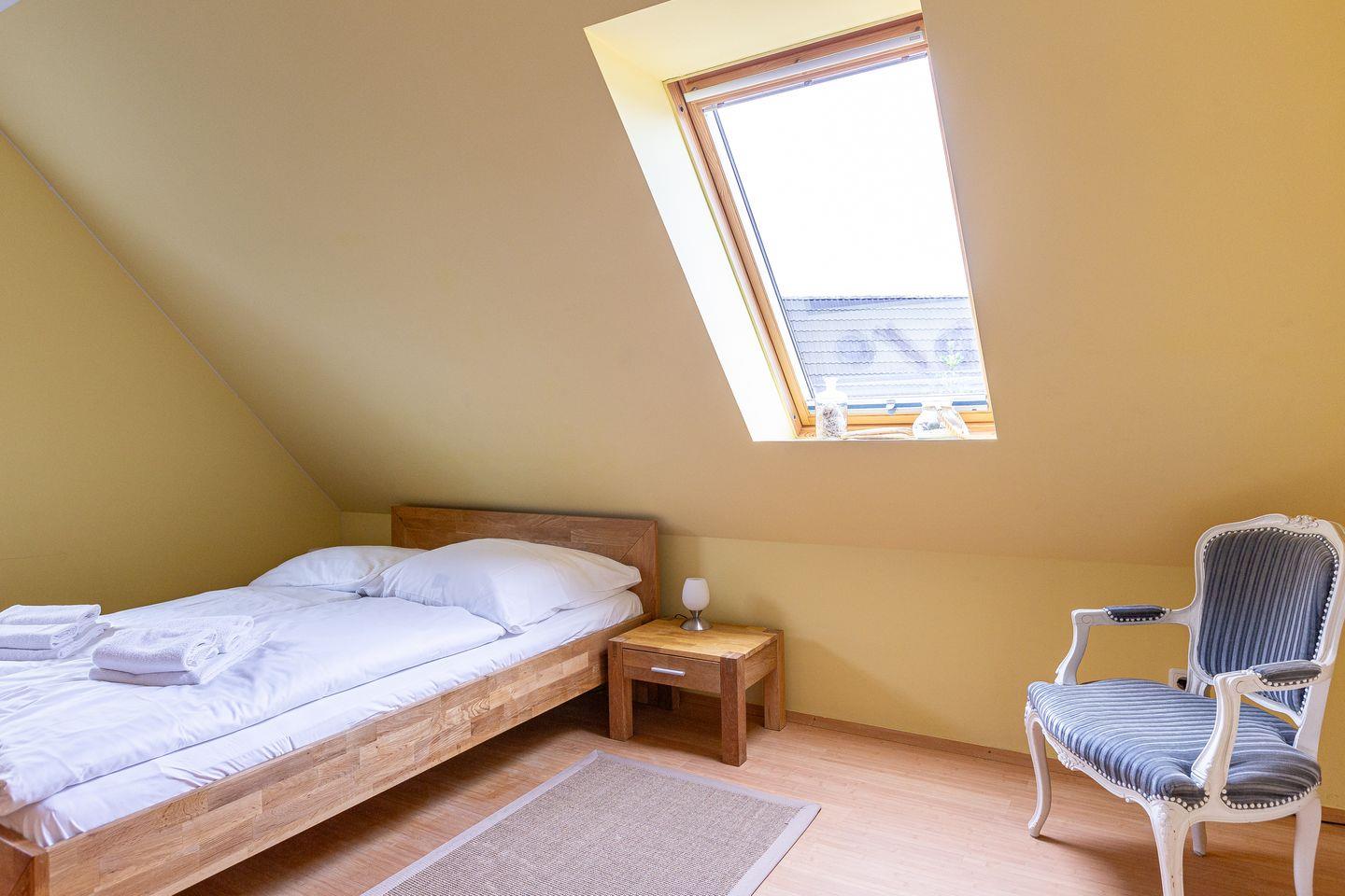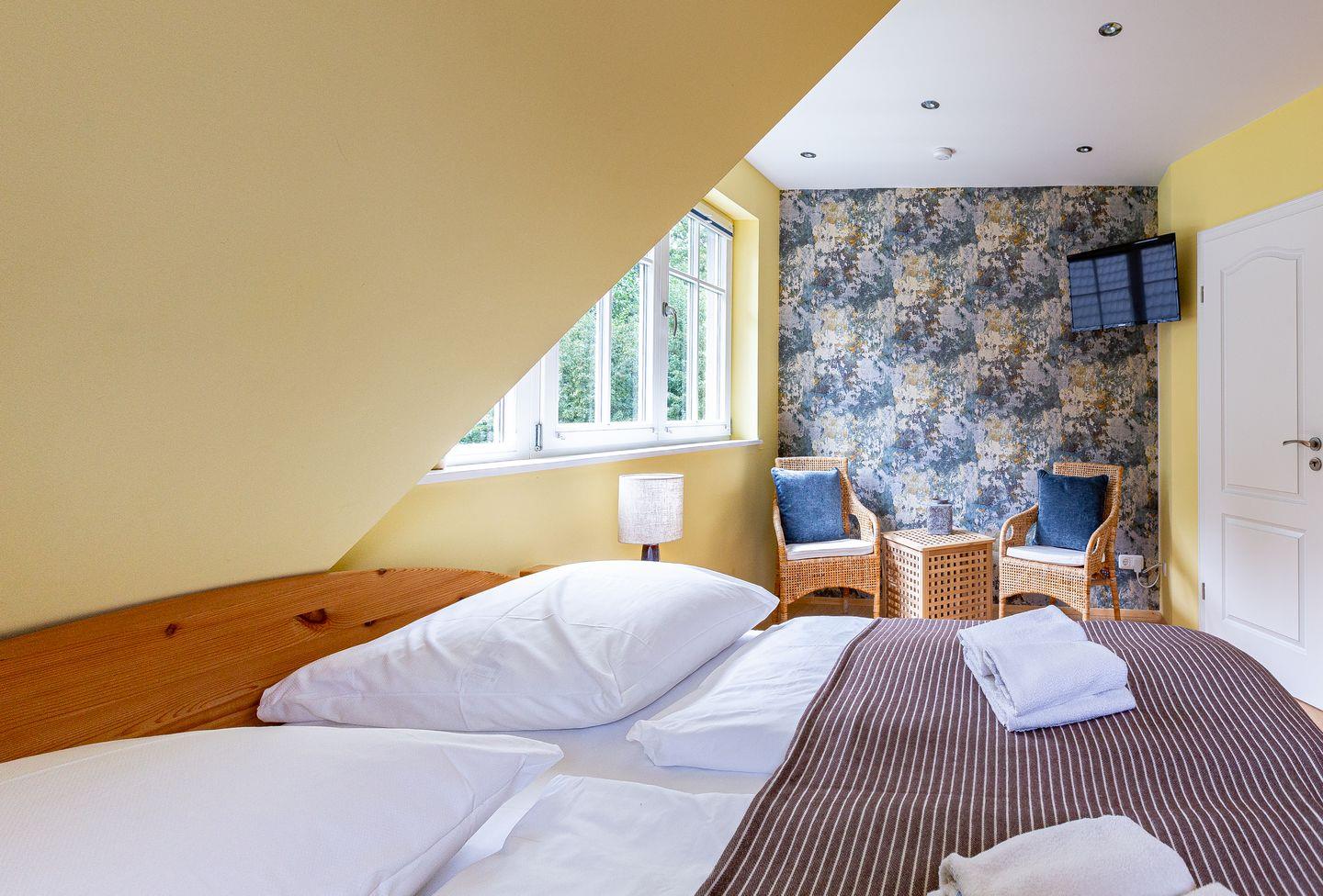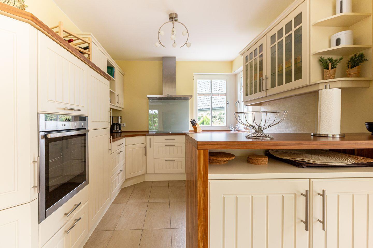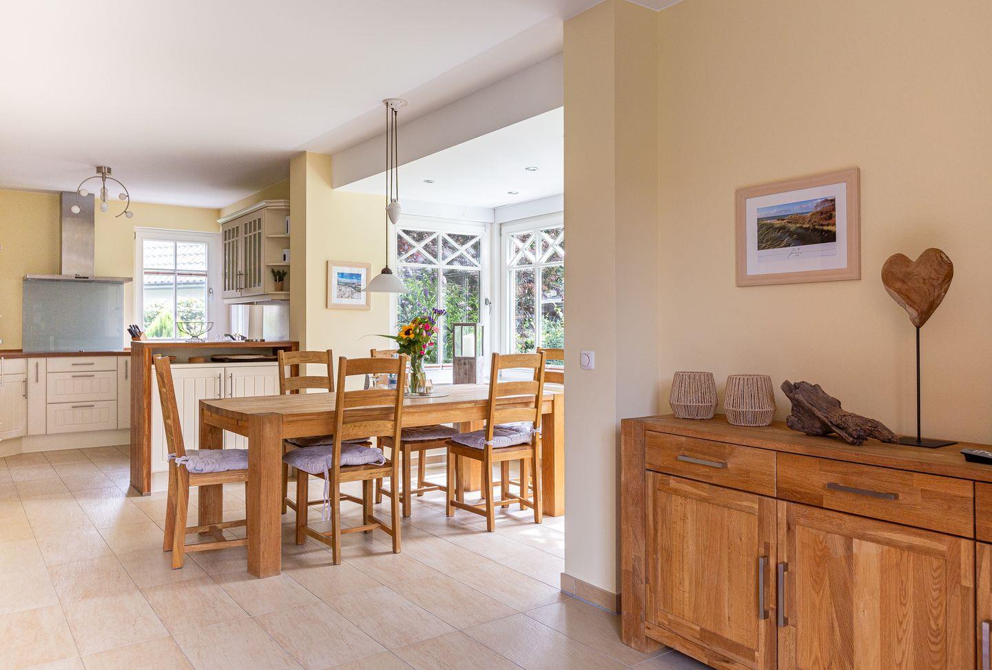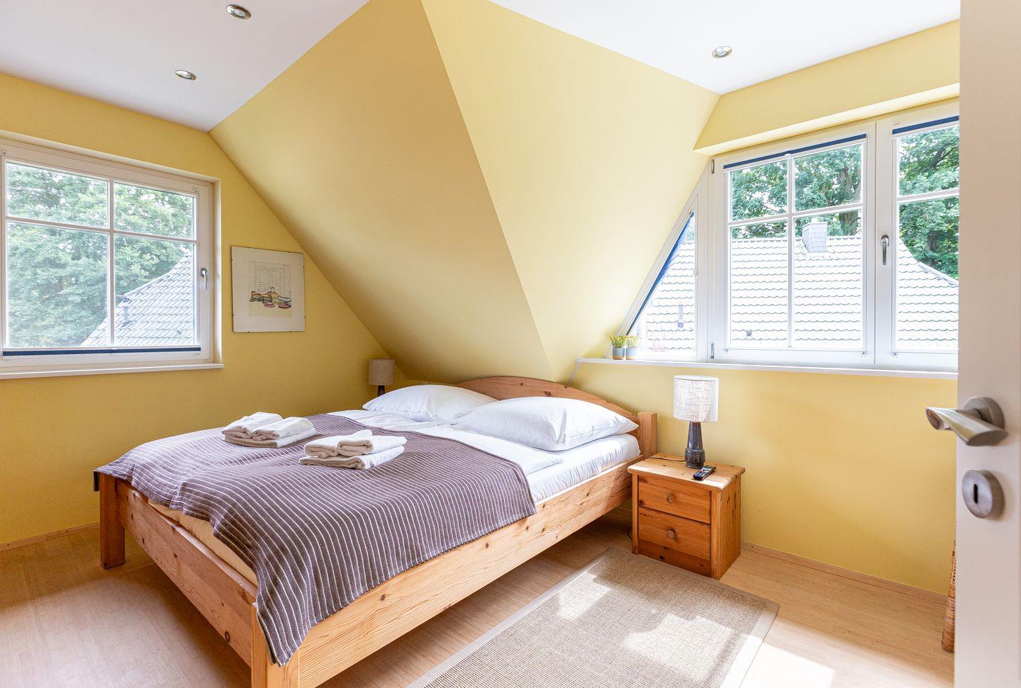 Das familienfreundliche Ferienhaus begeistert mit einem großzügigen Wohn- und Küchenbereich, der zum Entspannen und Zusammensein einlädt. Die offen gestaltete Landhausküche ist bestens ausgestattet und ideal für’s gemeinsame Kochen. Abgerundet wird das Erdgeschoss mit einem Gäste-Bad. Im Obergeschoss befinden sich zwei gemütliche Schlafzimmer, die jeweils mit Verdunklungsvorhängen, Kleiderschrank und TV ausgestattet sind. Besonders vorzuheben ist das große Spa-Bad mit Badewanne und Erlebnisdusche – perfekt für wohltuende Wellnessmomente.