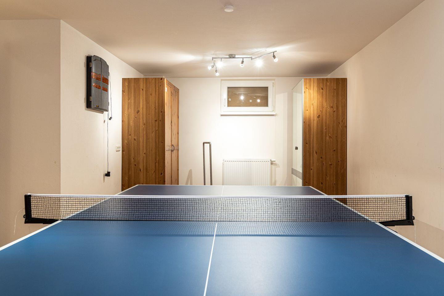 Im Keller stehen eine Sauna, eine Tischtennisplatte, eine Dartscheibe und ein Fitnessbereich mit Trampolin und Hometrainer als Schlechtwetter-Alternativen zur Verfügung. Für weiteren Komfort befindet sich auch im Untergeschoss eine Dusche und ein WC.
