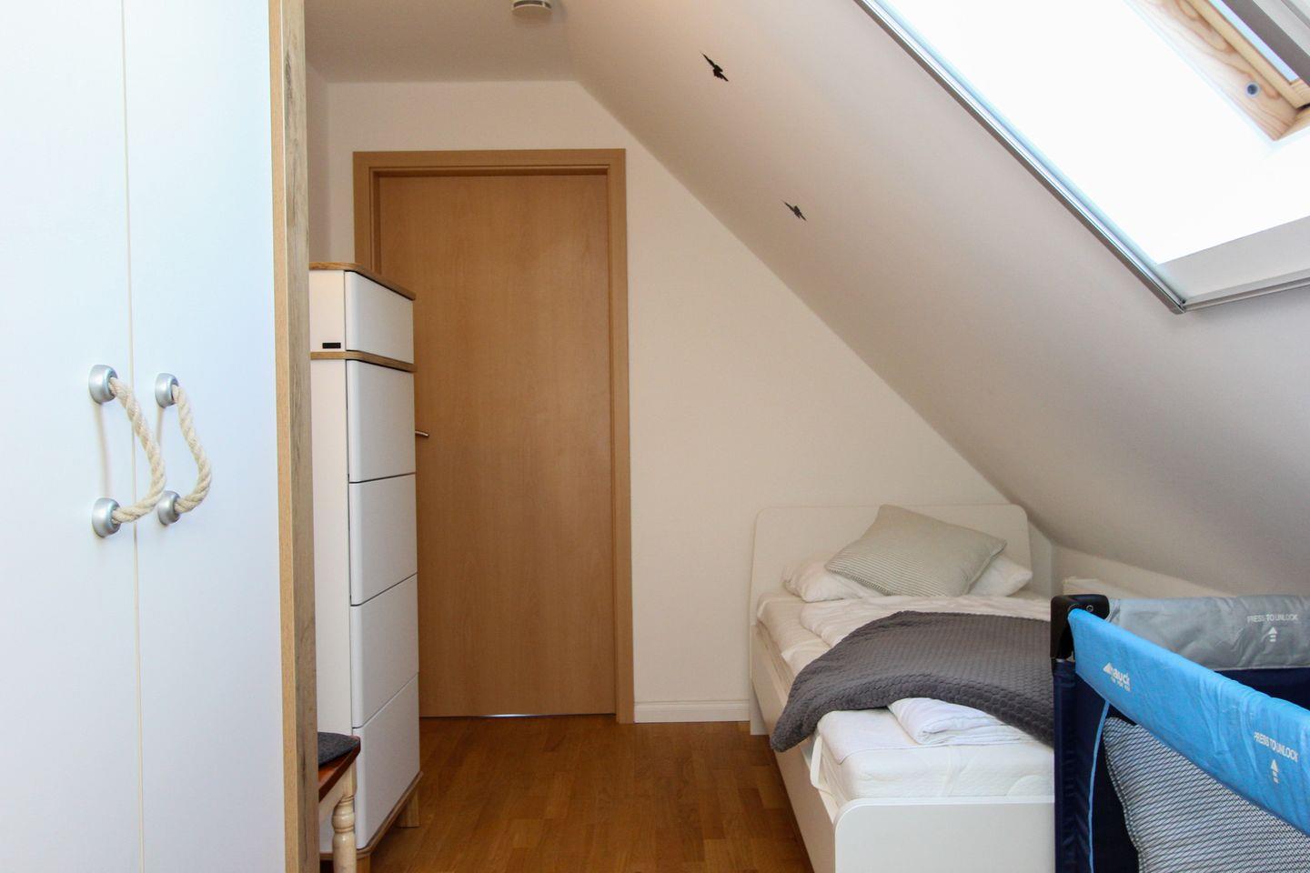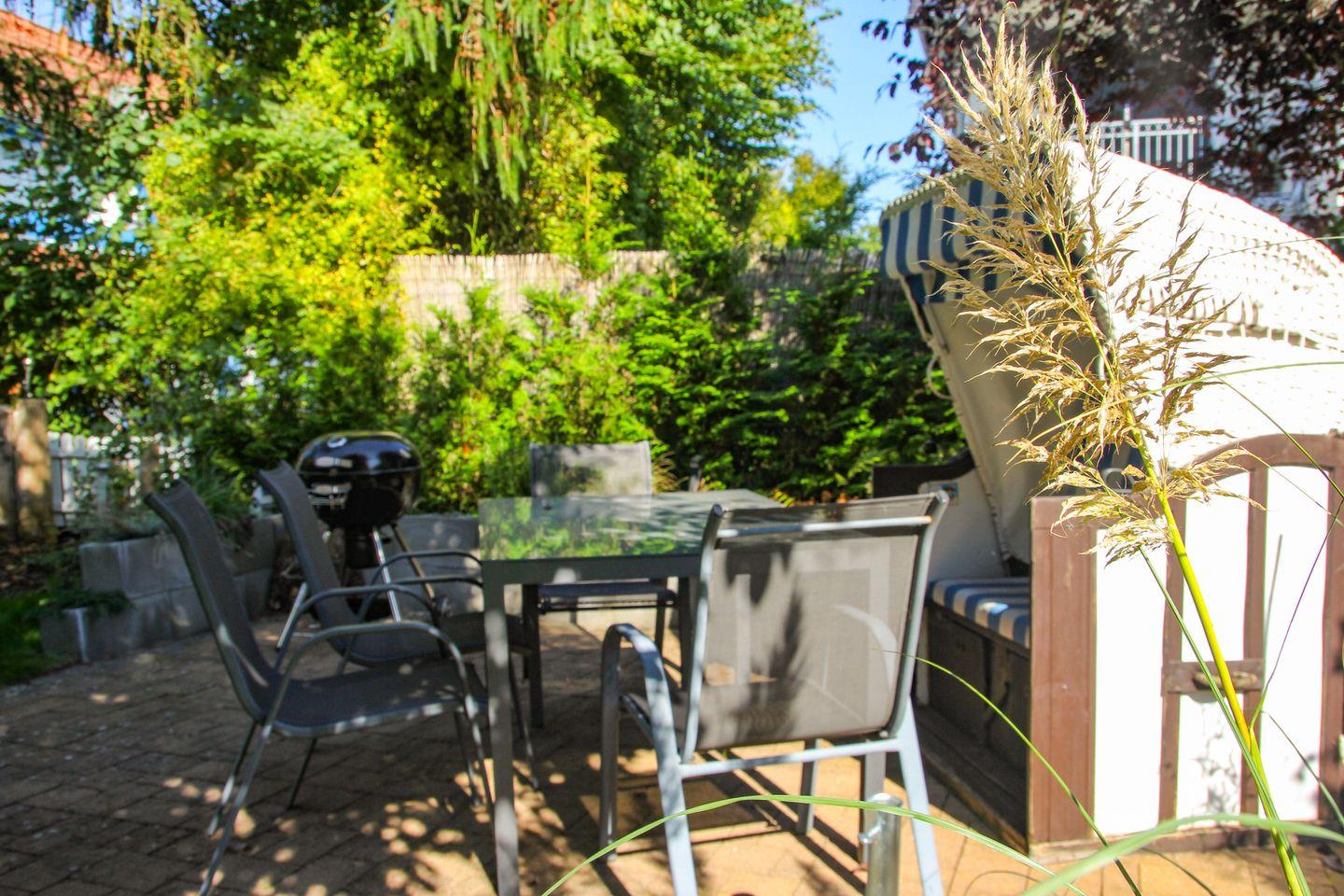 Bitte beachten Sie, dass die Treppe zum Spitzboden steil ist, was für Abenteuerlustige jedoch kein Problem darstellen sollte. Im Außenbereich erwartet Sie eine Gemeinschafts-Münzsauna, die zum Entspannen einlädt, sowie ein eigener Gartenbereich mit Holzkohlegrill und Sonnenschirm – perfekt für gesellige Grillabende im Freien.