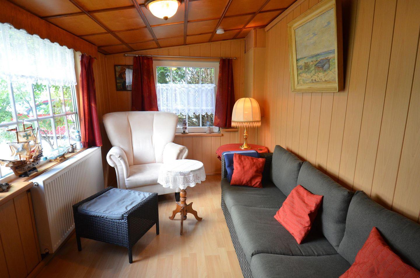 Dieses Objekt für bis zu 4 Personen und 1 Kleinkind, verfügt über eine kleine Wohnveranda, 1 Wohn-/Esszimmer, 1 offene Küche, 2 separate Schlafräume, 1 Badezimmer, 1 Hauswirtschaftsraum und ein ca. 680 m² großes eingezäuntes Grundstück, wovon ca. 530 m² Wildgarten und 150 m² Garten sind.