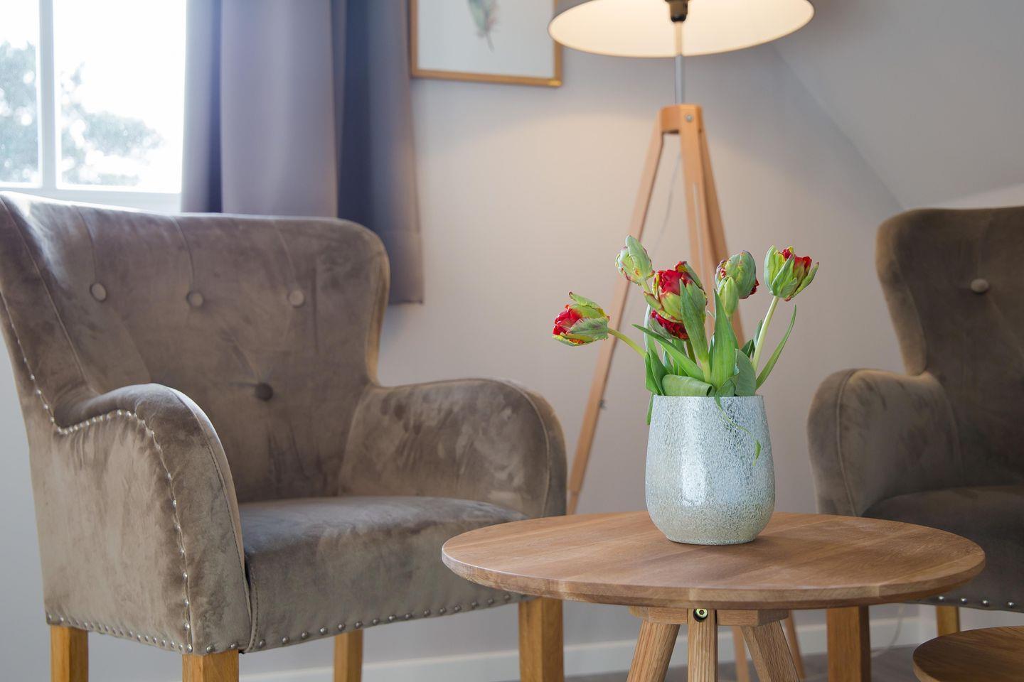 Das großzügige Urlaubsquartier bietet dir auf zwei Etagen alles, was du für entspannte Tage brauchst und noch ein bisschen mehr. Im Erdgeschoss wartet ein offener Wohn- und Küchenbereich, der sofort Urlaubslaune macht: Kuschele dich auf das Sofa am knisternden Kamin, koche gemeinsam in der voll ausgestatteten Küche oder genieße einfach die Zeit mit deinen Liebsten. Ebenfalls im Erdgeschoss: ein gemütliches Schlafzimmer, ein modernes Badezimmer und ein praktischer Hauswirtschaftsraum mit Waschmaschine – super, wenn du länger bleibst oder mit Kids reist.