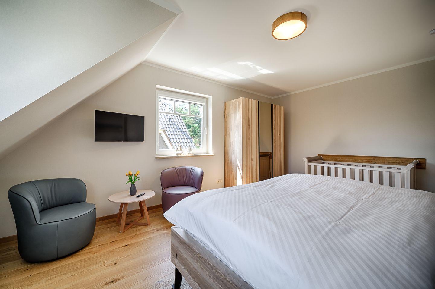 Die stilvolle Landhausvilla wurde im Frühjahr 2024 liebevoll und hochwertig renoviert und bietet Platz für bis zu 10 Personen und 1 Kleinstkind (bis 2 Jahre). Fünf Schlafzimmer – vier davon mit Doppelbett, eines mit zwei Einzelbetten – sorgen für ausreichend Rückzugsmöglichkeiten. Drei moderne Bäder sowie ein großzügiger Wohnbereich mit offener Küche und großem Essbereich bieten höchsten Komfort. Die angrenzende Terrasse mit Grill, Gartenmöbeln und großem Strandkorb, eine hauseigene Sauna und die liebevoll gestalteten Außenflächen machen das Urlaubsgefühl perfekt.