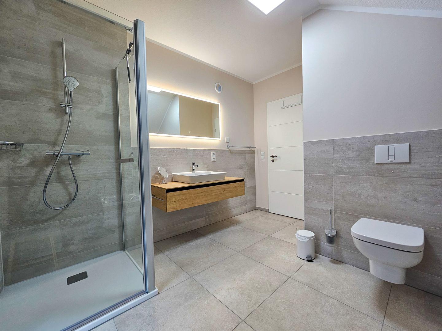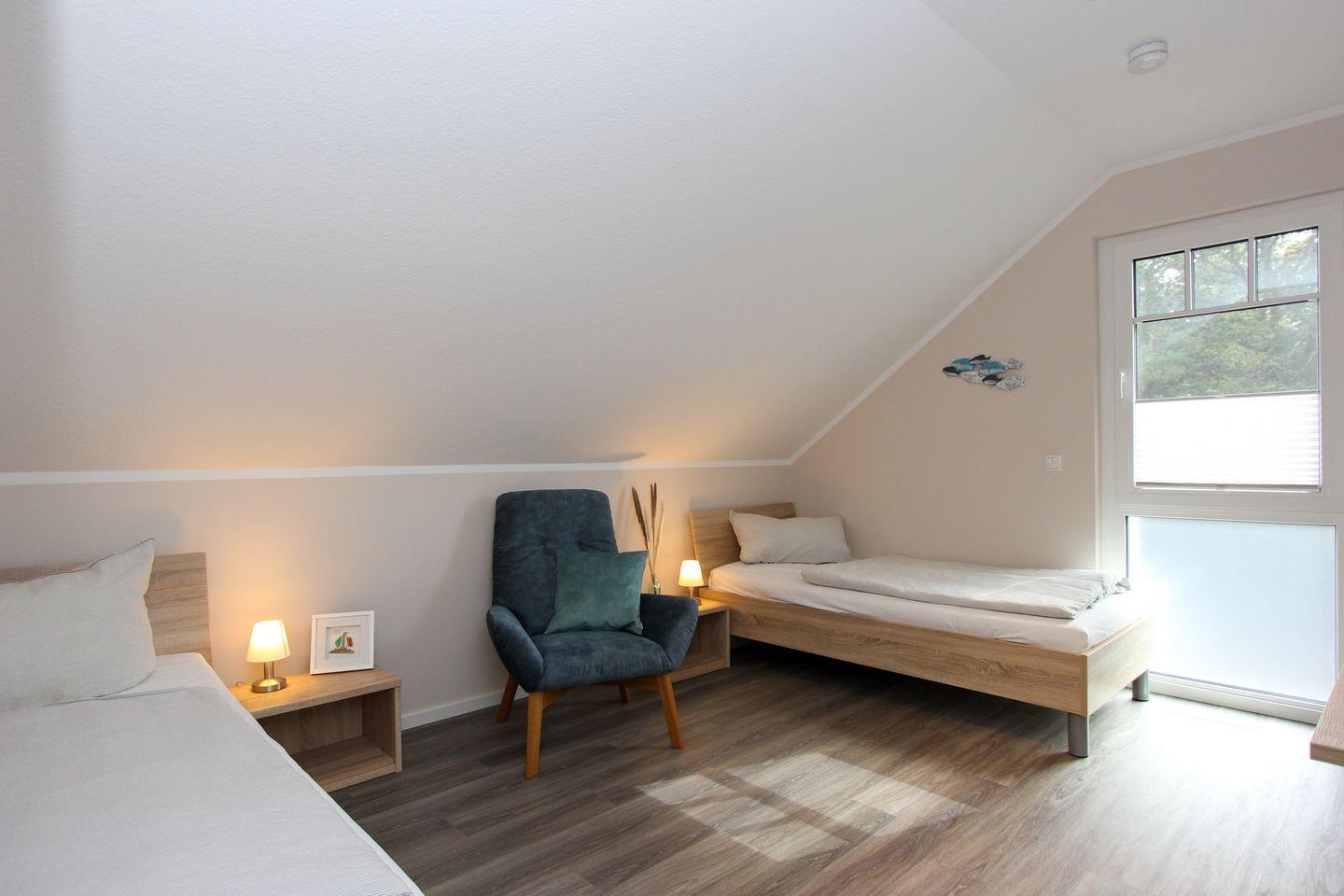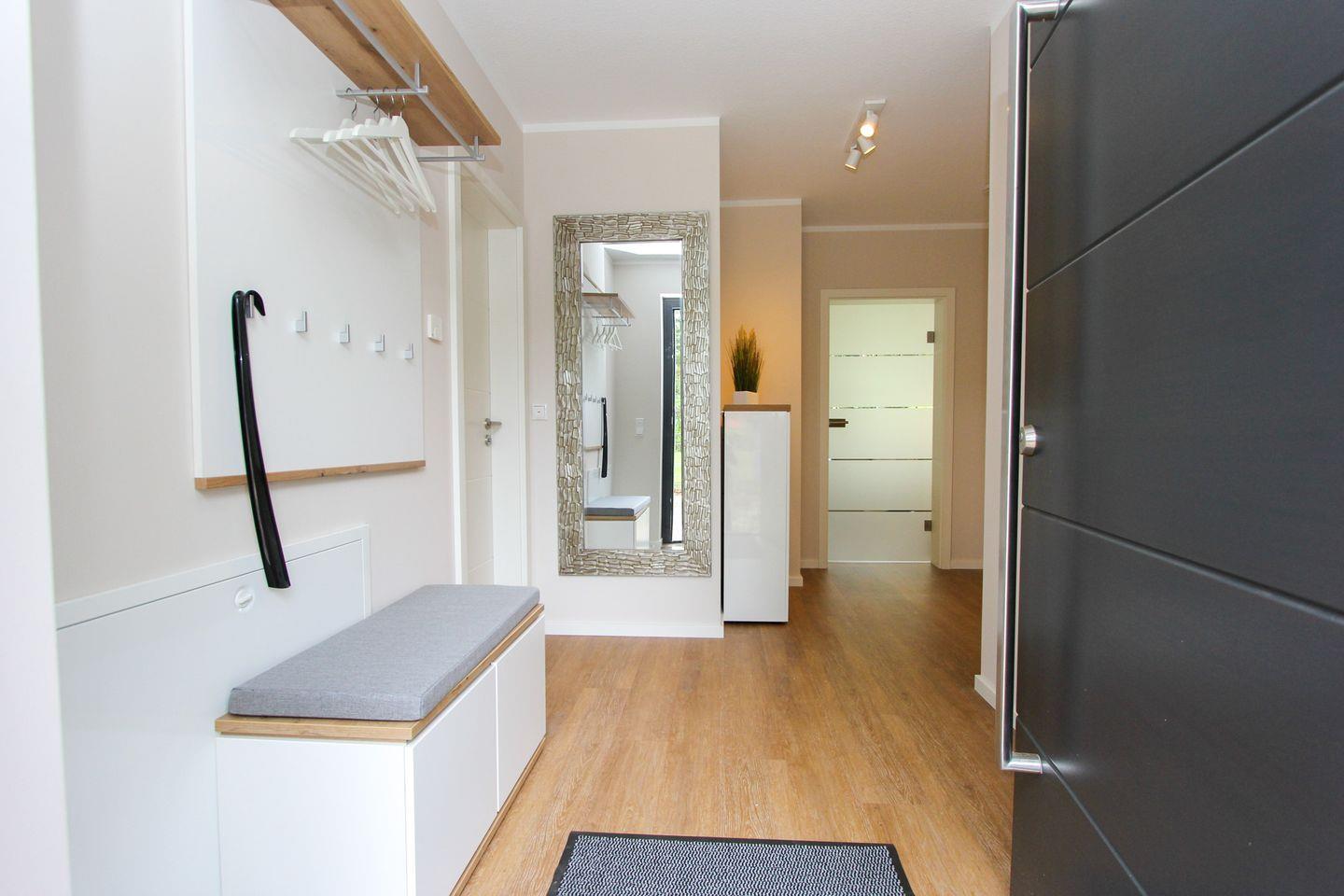 Das neu gebaute Ferienhaus Darßkönig in Prerow besticht durch eine großzügige Wohnfläche von 122 m² und bietet mit drei Schlafzimmern und zwei vollausgestatteten Badezimmern mit zwei Duschen und einer Badewanne ausreichend Platz für bis zu sechs Gäste. Die Ausstattung ist hochwertig und berücksichtigt sowohl den Wunsch nach Komfort als auch die Bedürfnisse von Familien mit Kindern sowie Erholungssuchenden.