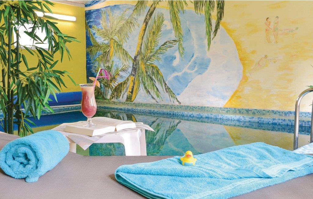 Den særlige komfort i dette hyggeligt indrettede hus gør det muligt at koble totalt af. Efter forgodtbefindende kan man lade tankerne få frit løb i indendørspoolen med modstrømsanlæg, spabadet eller i saunaen. Pejsen i den store stue med køkken er en hyggelig varmekilde. Der er delvis gulvvarme i huset.