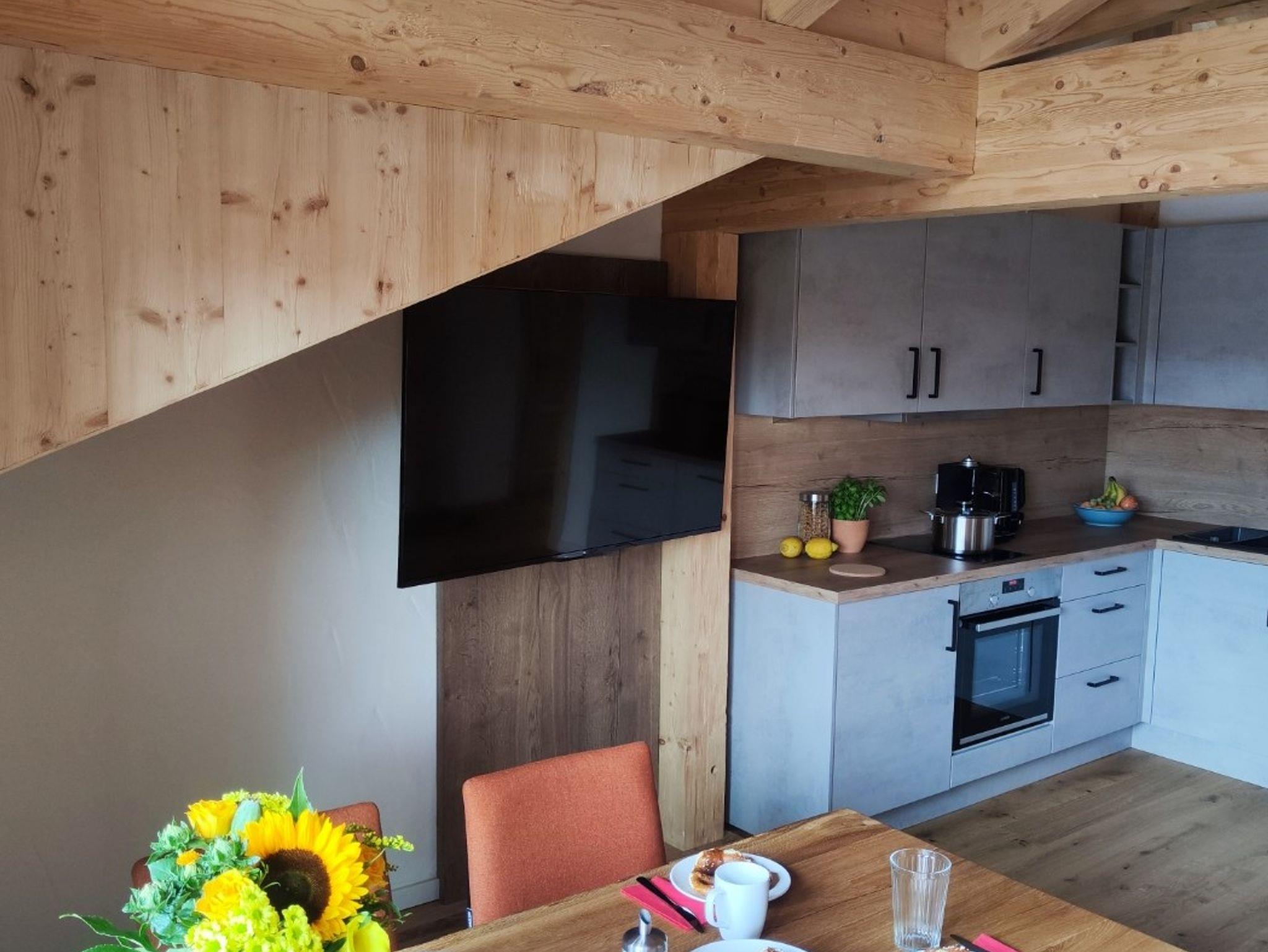 Unsere Ferienwohnung 'Valentin' verfügt über ein 1,80 Meter Boxspringbett, ein 1,50 Meter (Schlaf-) Sofa, einen Smart-TV, einen Essbereich, eine gut ausgestattete Küche und ein eigenes Bad mit Regendusche und Haartrockner. Handtücher werden gestellt. Ein Geschirrspüler, ein Kühlschrank, ein Backofen, ein Wasserkocher, ein Toaster und eine Kaffeemaschine sind ebenfalls vorhanden. Die Räume sind hell und offen gehalten. Der eigene Balkon ist mit Stühlen und Tisch ausgestattet. Kostenfreies WLAN und Parkplatz steht zur Verfügung, Babybett und Hochstuhl auf Anfrage. Mindestaufenthaltsdauer sind 5 Nächte.