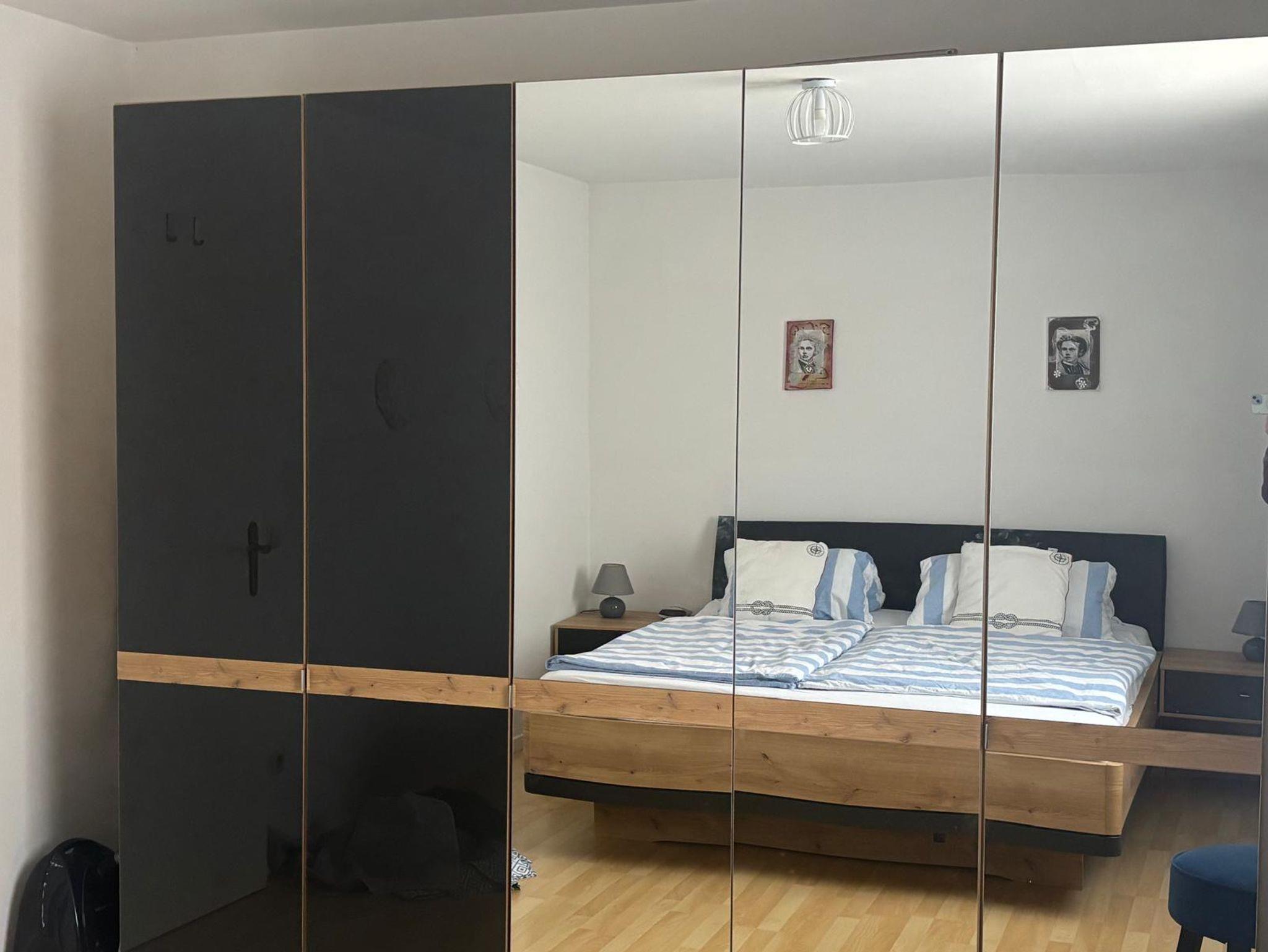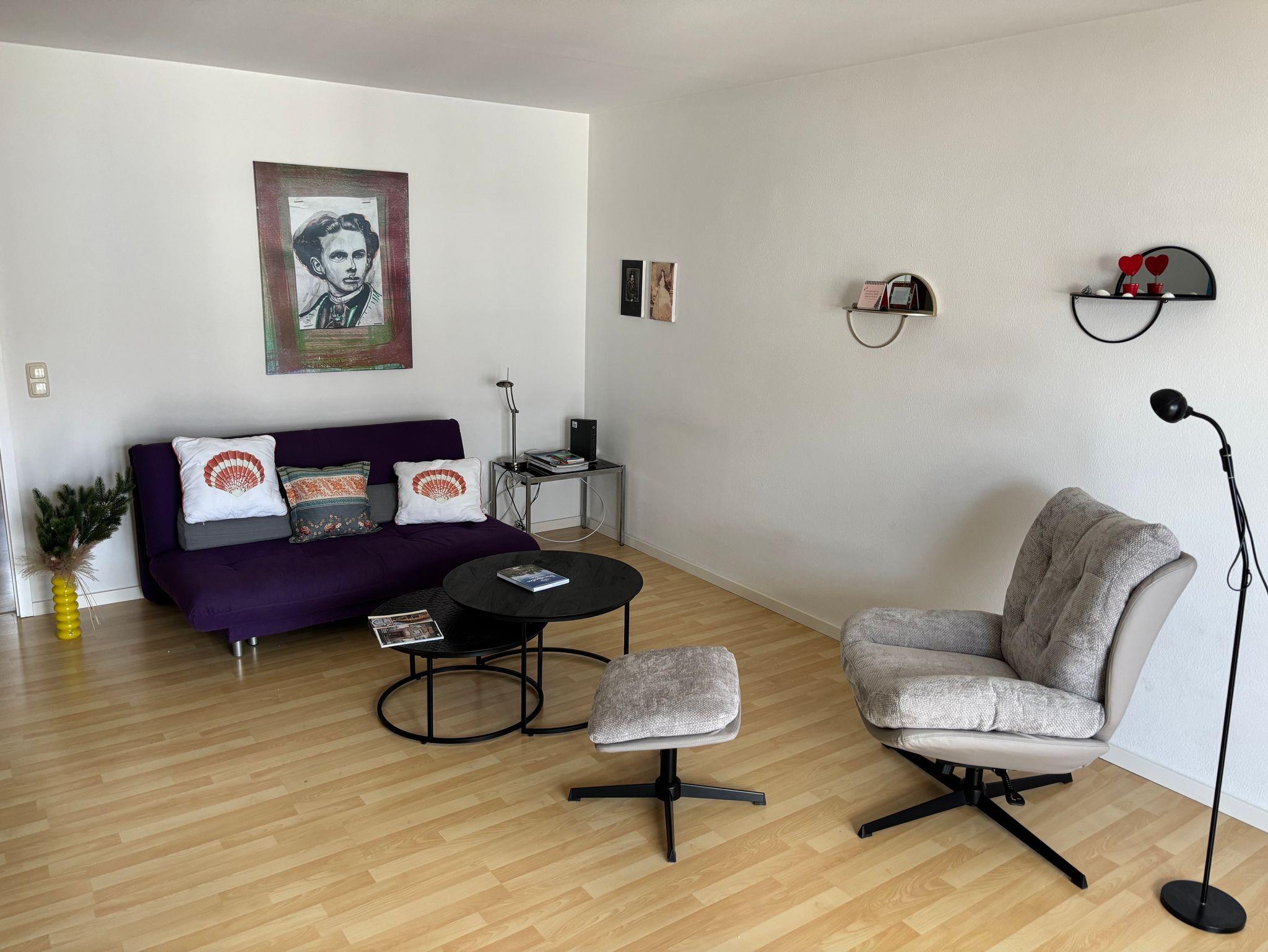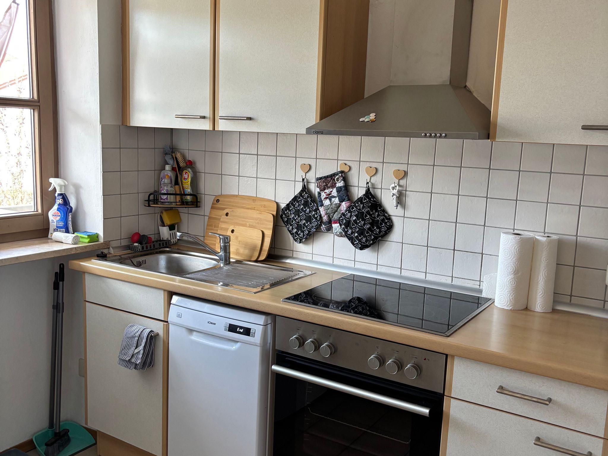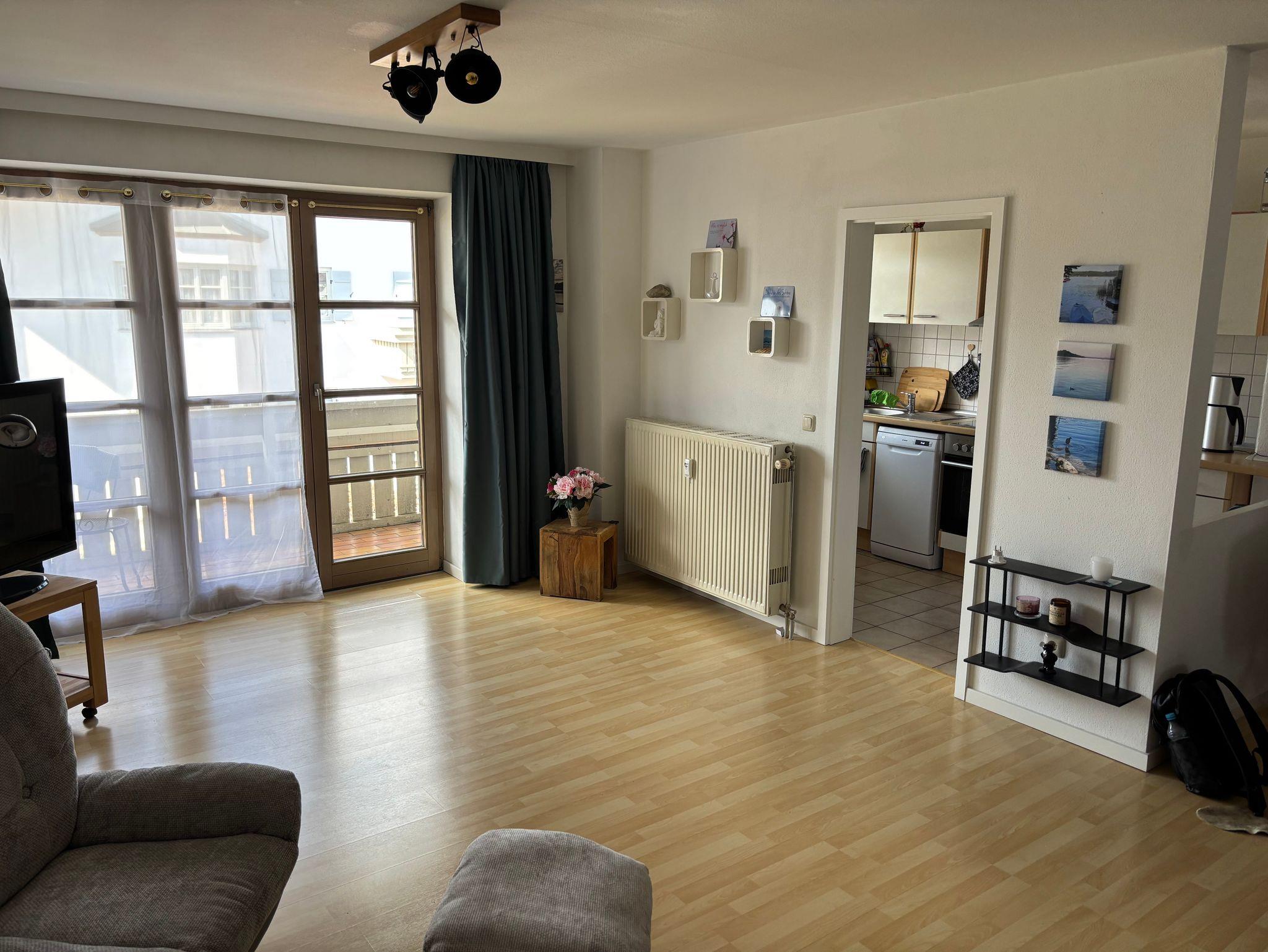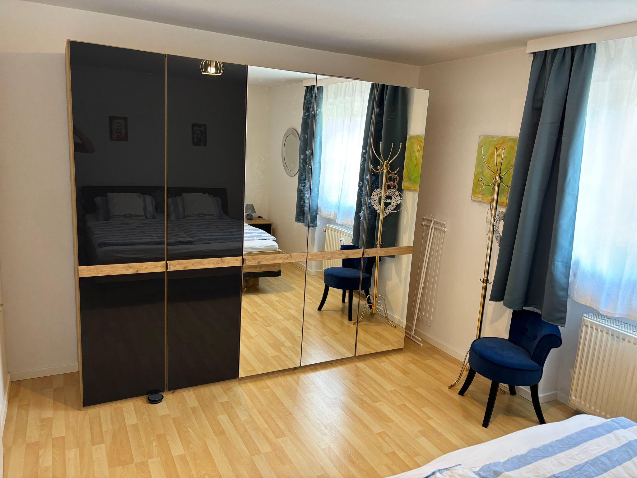 Diese schöne Ferienwohnung mit Balkon, Gartenblick und Gartennutzung hat 1 Schlafzimmer mit einem Doppelbett (180x200), 1 großes Wohnzimmer mit einer hochwertigen Schlafcouch, einen großen Flachbild-Plasma TV, sowie eine integrierte, sehr gut ausgestattete Küche mit Saftpresse und Mixer, einem Kühl-, Gefrierschrank, Cerankochfeld, Backofen, Mikrowelle und einem Geschirrspüler sowie 1 Badezimmer mit einer Dusch-Badewanne mit Regenwald-Dusche.