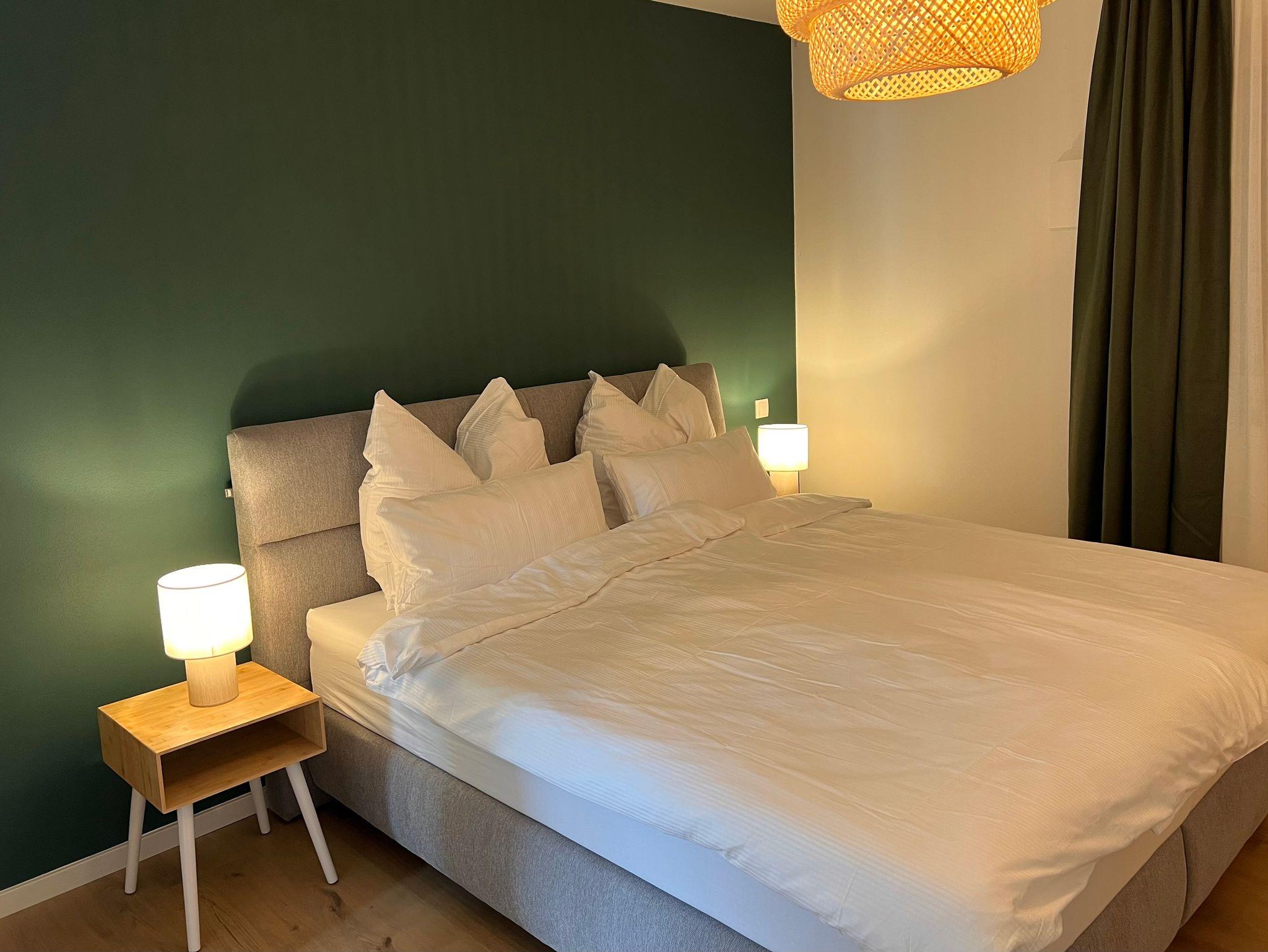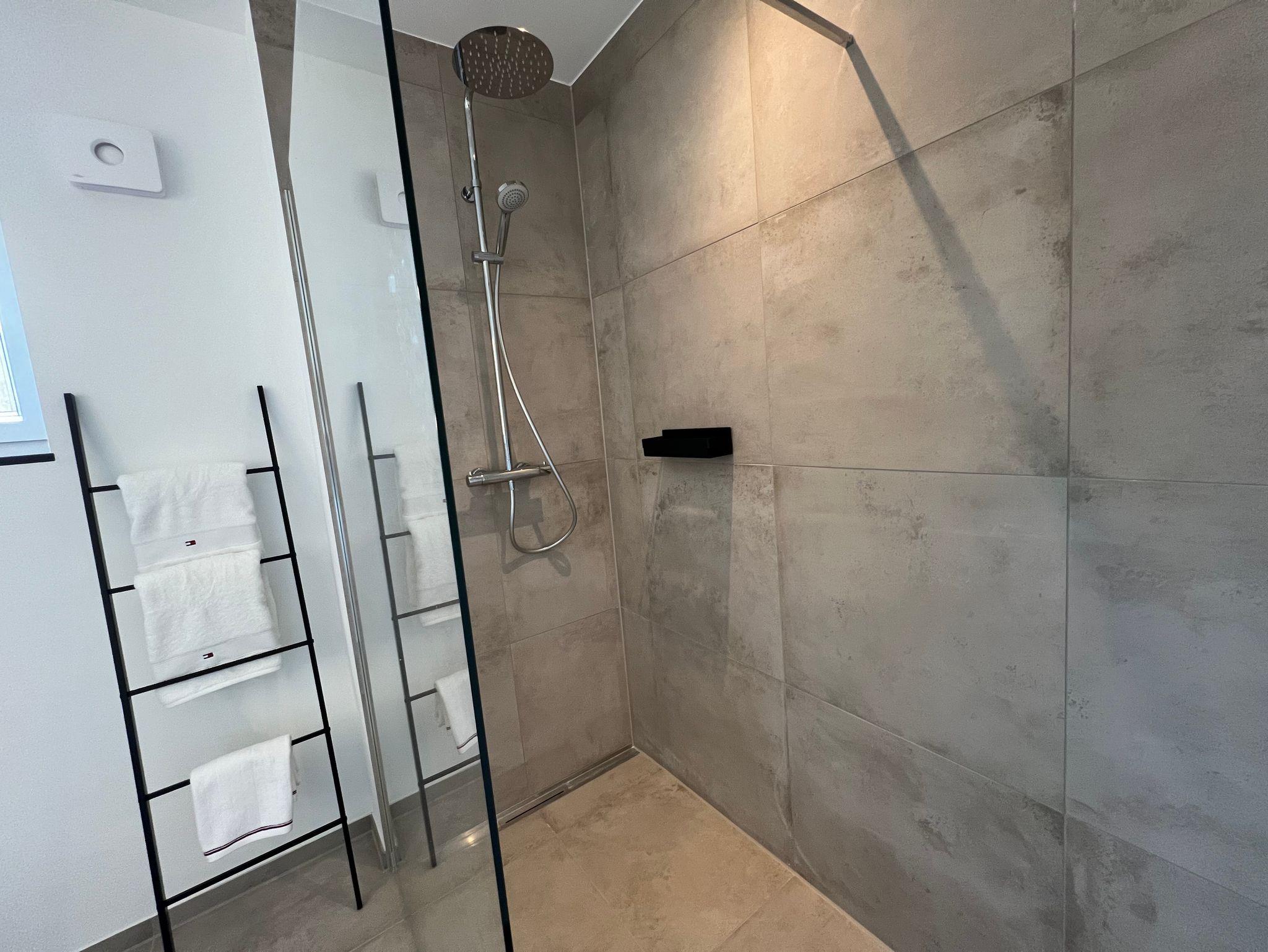 Das gemütliche Schlafzimmer ist mit einem großen Boxspringbett (180x200 cm) ausgestattet und bietet viel Stauraum um den Koffer auszupacken. Die Wohnung verfügt außerdem über ein Bad mit ebenerdiger Regendusche. Alle Fenster sind mit Außenrollos und Fliegengitter ausgestattet und ermöglichen eine optimale Verdunklung. Im großen und hellen Wohn-Essbereich befindet sich eine Schlafcouch, die beispielsweise perfekt für bis zu zwei Kinder geeignet ist und ein Fernseher. Die voll ausgestattete Küche beinhaltet eine Spülmaschine, Kühlschrank, Herd, Backofen, Filterkaffeemaschine und eine Nespresso-Kaffeemaschine mit Milchaufschäumer. Vom Wohn-Essbereich gelangt man über eine Terrassentüre auf die sonnige Westterrasse mit Weber Gasgrill, Sitzgelegenheiten, Sonnenschirm und Liegestühlen.