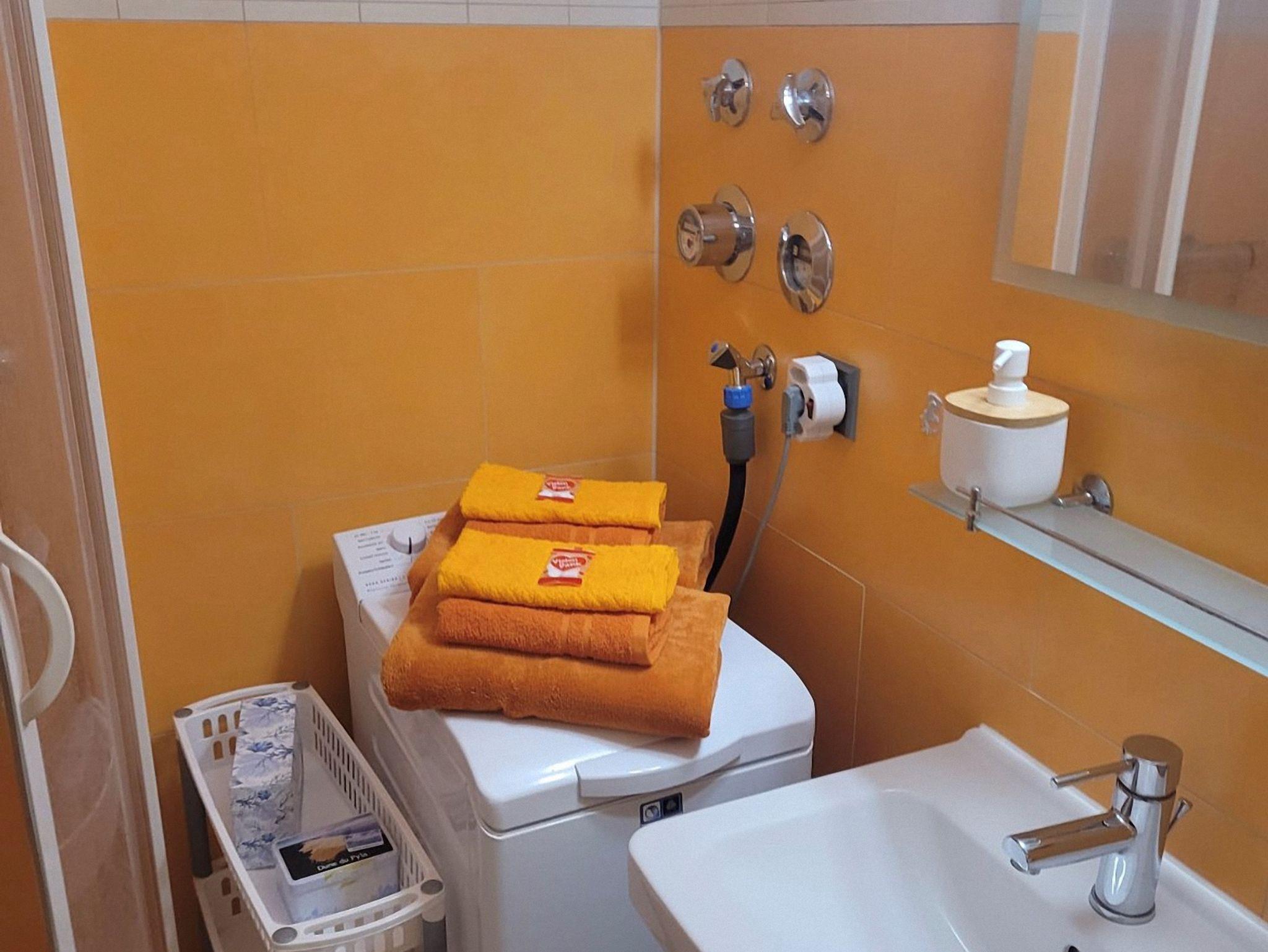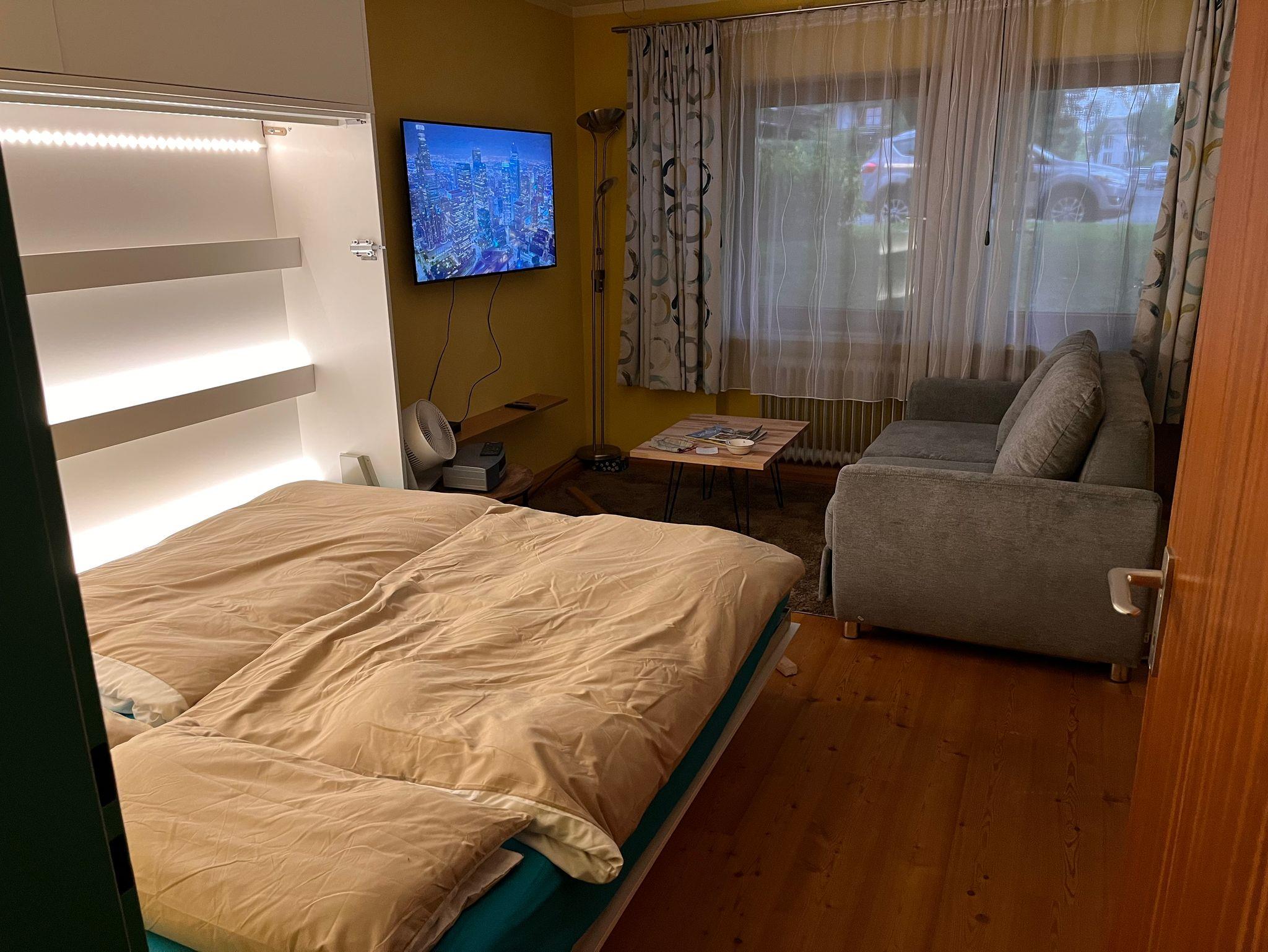 Es ist alles für die Selbstversorgung vorhanden! Kühlschrank, Mikrowelle, Kaffee-Vollautomat, Wasserkocher etc. sowie W-LAN, großer TV-Bildschirm und Apple-TV. Bettwäsche und Handtücher sind vor Ort und müssen nicht extra mitgebracht werden. Das Bad verfügt über eine Dusche, WC sowie eine Waschmaschine.