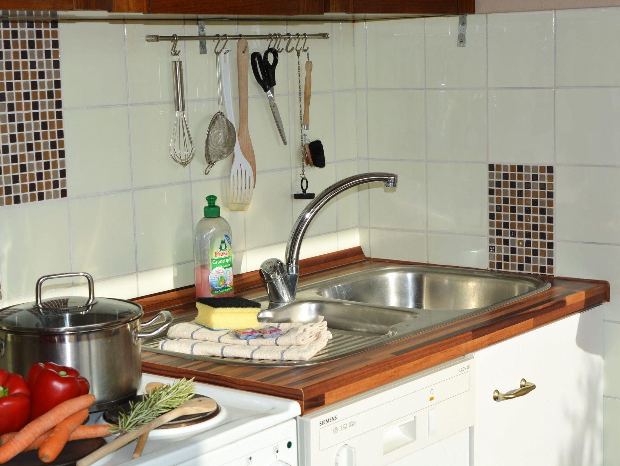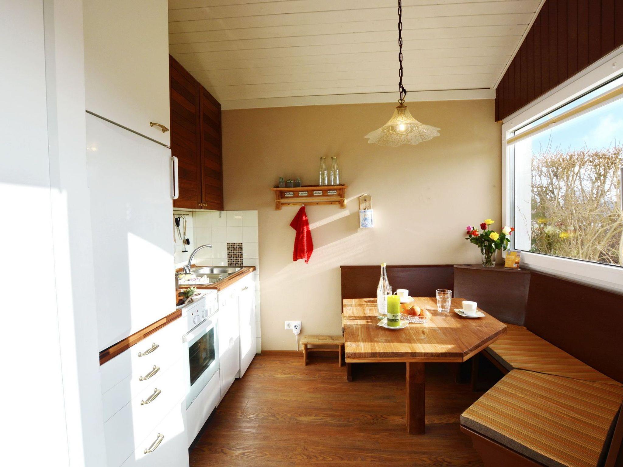 Wohlfühlen vom ersten Augenblick! Im Erdgeschoss des Reihenhauses befindet sich der offene und helle Wohnbereich mit Kamin (für Pellets), Essbereich und voll ausgestatteter, offener Küche. Lümmeln auf dem großen Sofa gehört sicherlich im Urlaub mit dazu. Über den Wohnbereich gelangen Sie auf die nach Süden ausgerichtete Terrasse, somit können Sie optimal die Sonne genießen. Gemütlichen Grillabenden steht ebenfalls nichts im Wege. Das kleine aber feine Ferienhaus bietet ein Schlafzimmer, welches mit einem Doppelbett ausgestattet ist. Ein Badezimmer mit Tageslicht ist mit Badewanne, Waschmaschine und WC versehen.