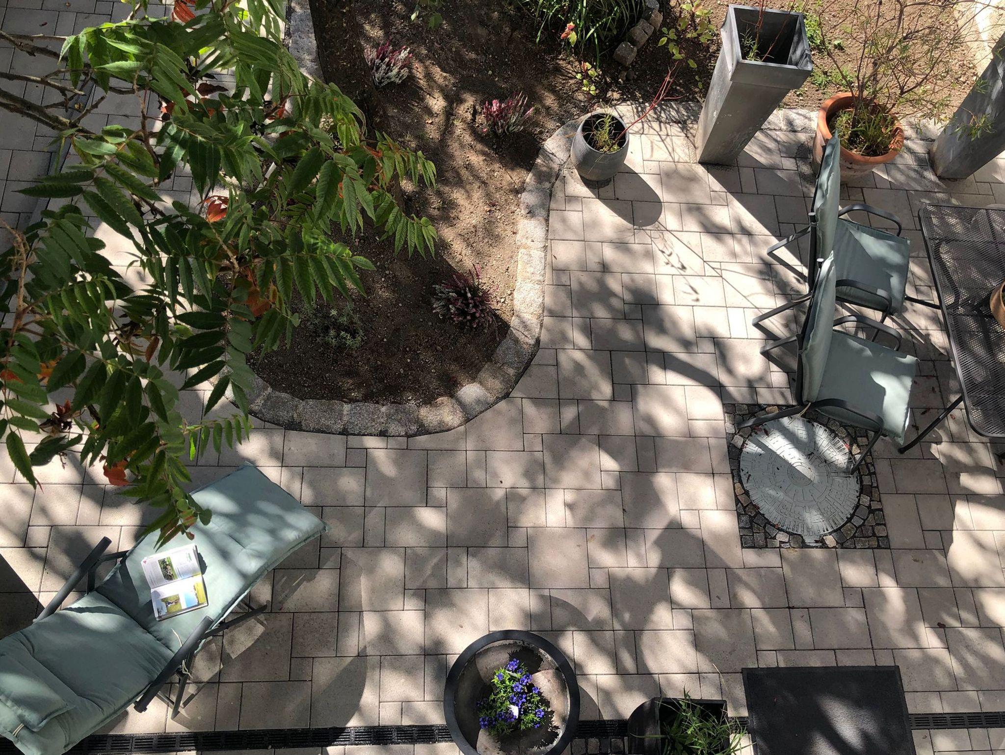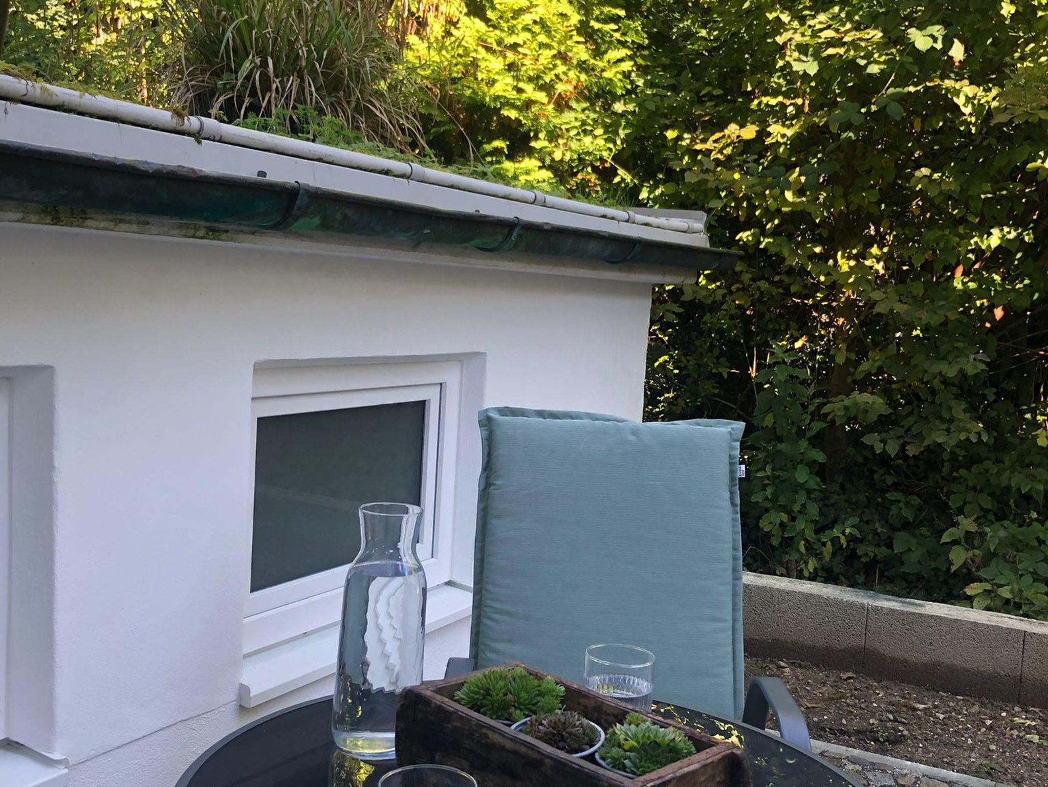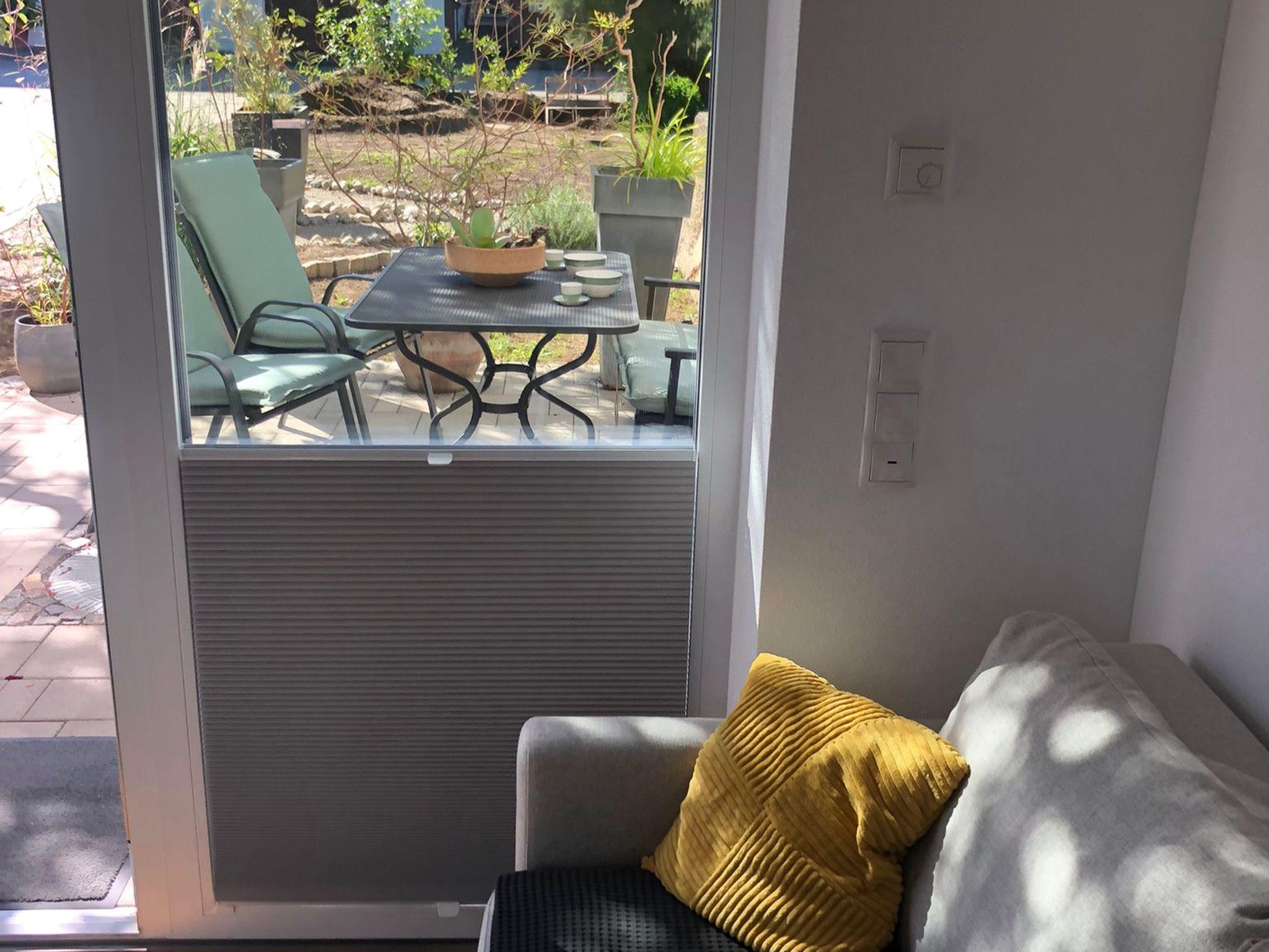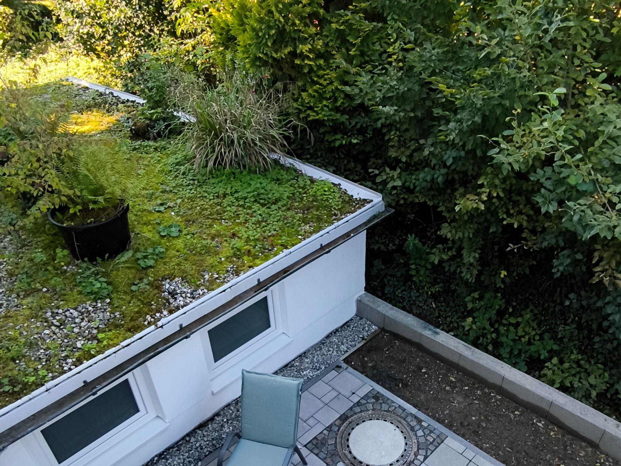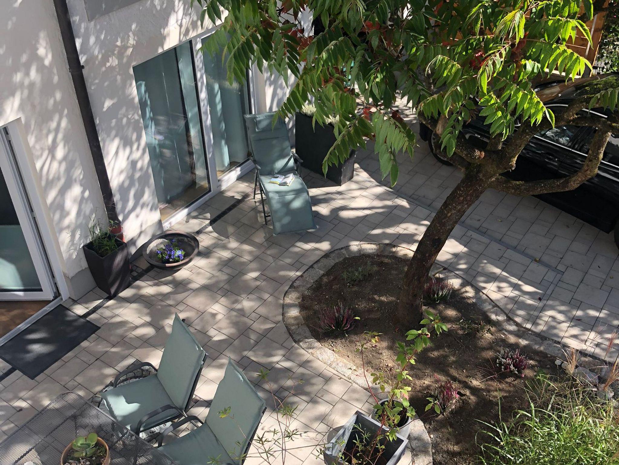 Diese ruhig gelegene Terrasse liegt angenehm im Schatten – perfekt, um sich an heißen Sommertagen abzukühlen. Ausgestattet mit gemütlichen Sitzmöbeln und einem kleinen Tisch, lädt sie zum entspannten Lesen, Kaffeetrinken oder einfach zum Zurückziehen ein. Der Bereich ist gut abgeschirmt und bietet maximale Privatsphäre.