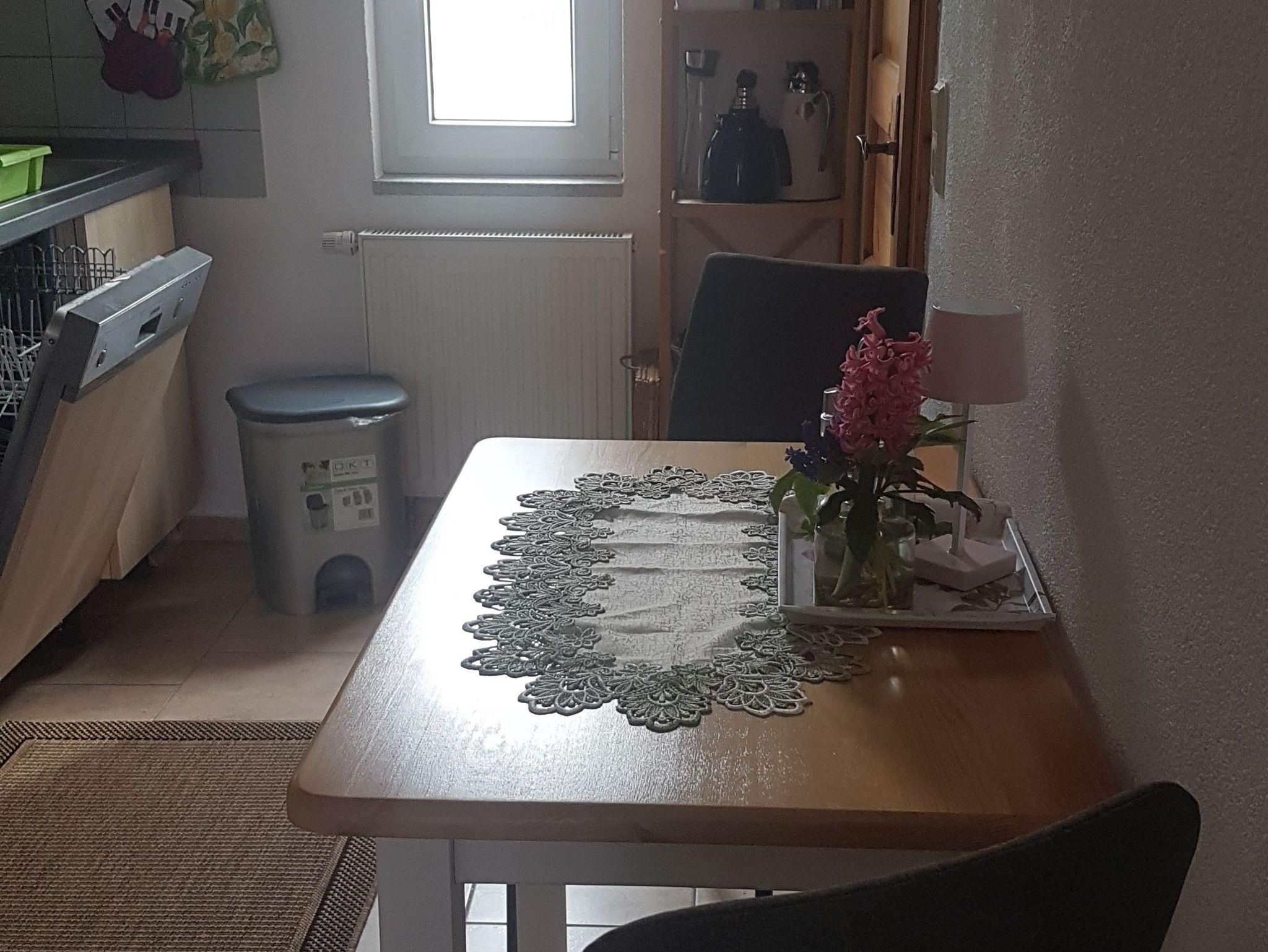 Die Ferienwohnung hat eine Wohnfläche von ca. 40 qm und verfügt über einen kombinierten Wohn- und Schlafraum sowie einer separaten Küche und einem Bad mit ebenerdiger Dusche. Sie ist 2024 renoviert und im Wohn-/Schlafbereich mit neuem Mobiliar ausgestattet.