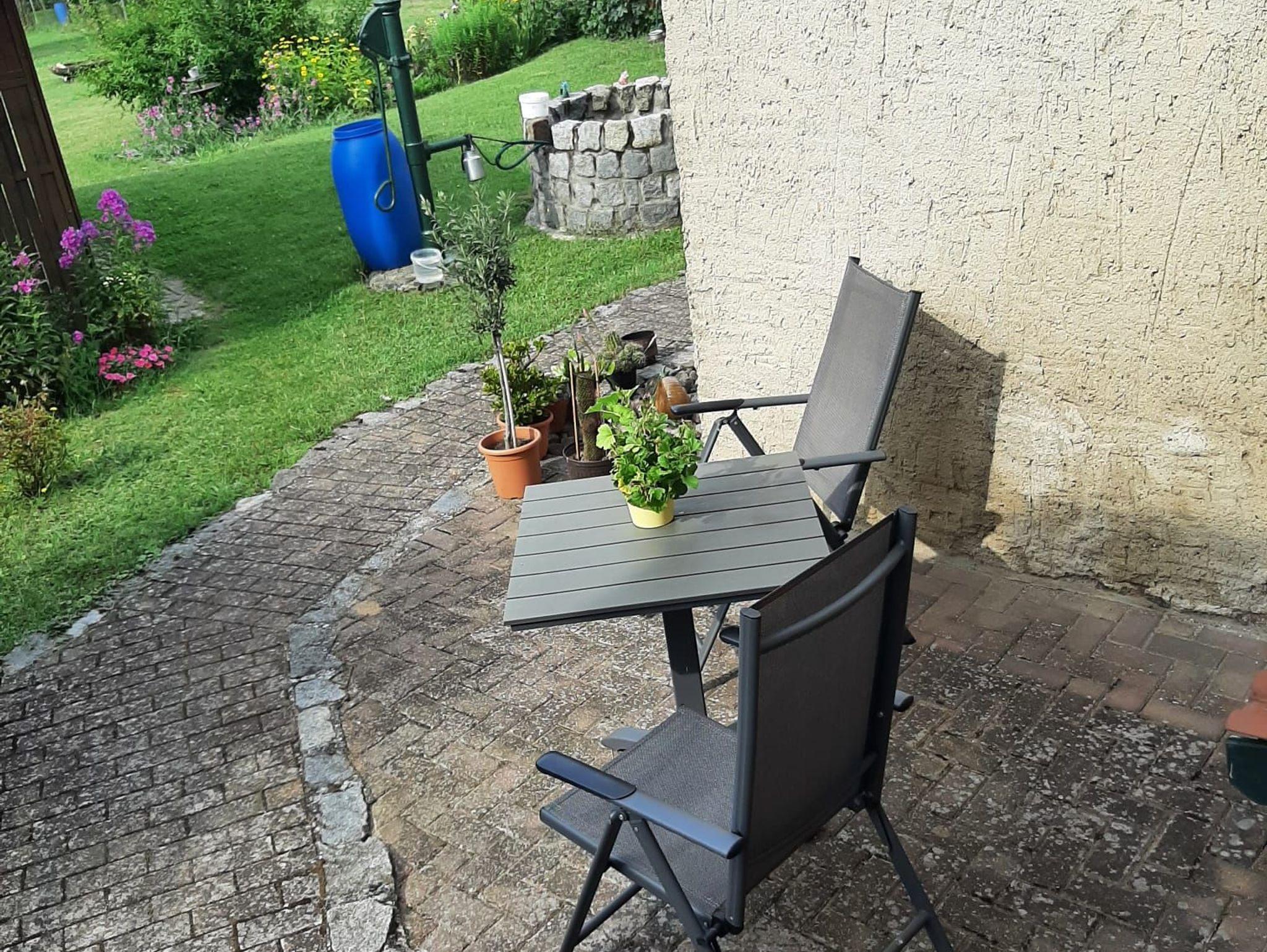 Auf dem Grundstück gibt es auch eine Sitzecke mit Gartenmöbeln und Grill für Sie - direkt vor dem Wohnungseingang. Dort können Sie dann bei einem Gläschen Wein gemütlich den Tag ausklingen lassen.
