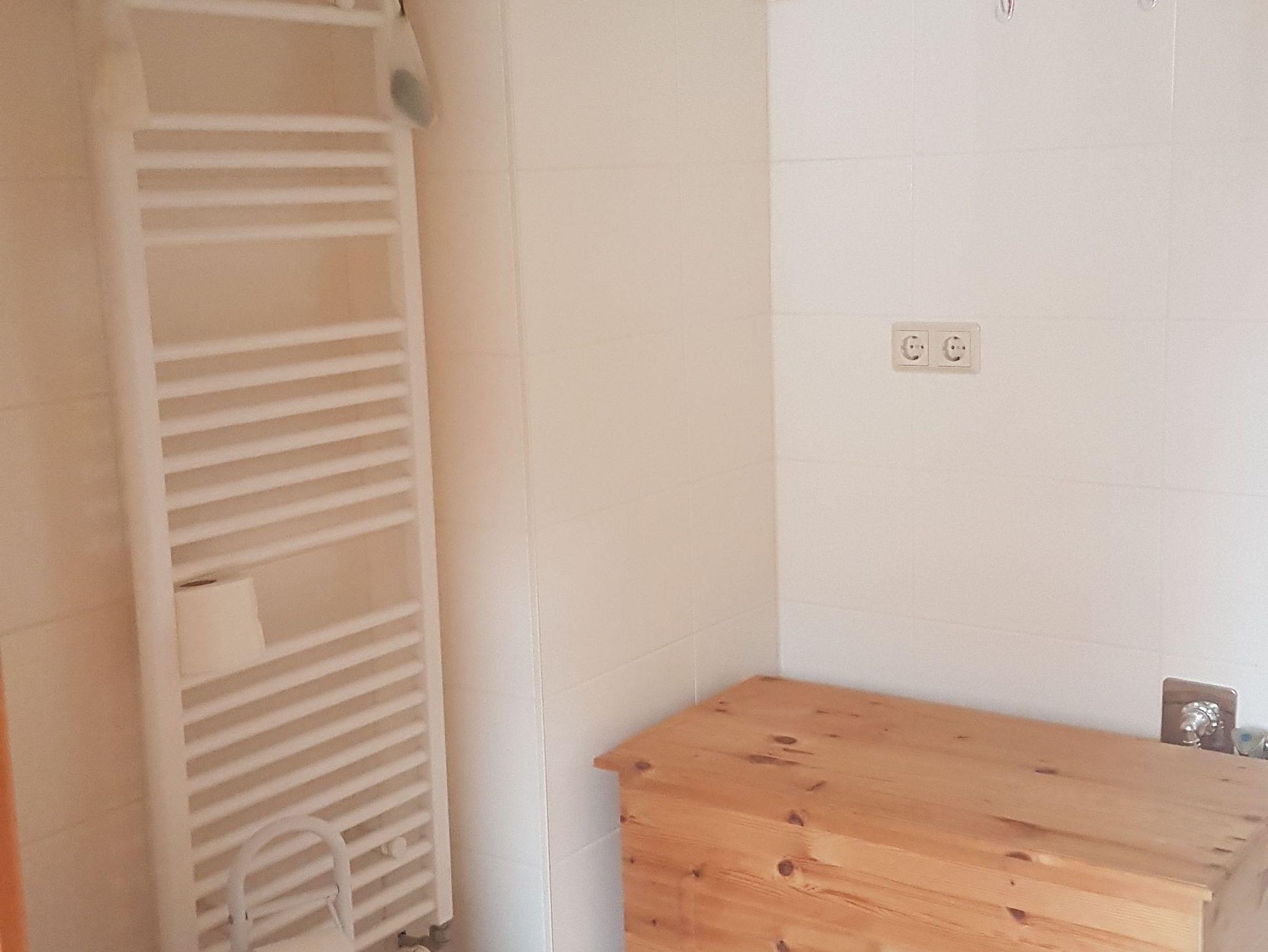 Im kombinierten Wohn- und Schlafraum steht ein großes Doppelbett , ein kleiner Tisch mit 2 bequemen Sesseln sowie ein große Anrichte, auf der sich ein Flachbild-TV befindet und es Ihnen ermöglicht, bequem vom Bett aus, vor dem schlafen noch einen Film gucken zu können - der Bodenbelag ist mit Laminat ausgestattet. Die Küche und das Bad sind mit Fliesenboden versehen.