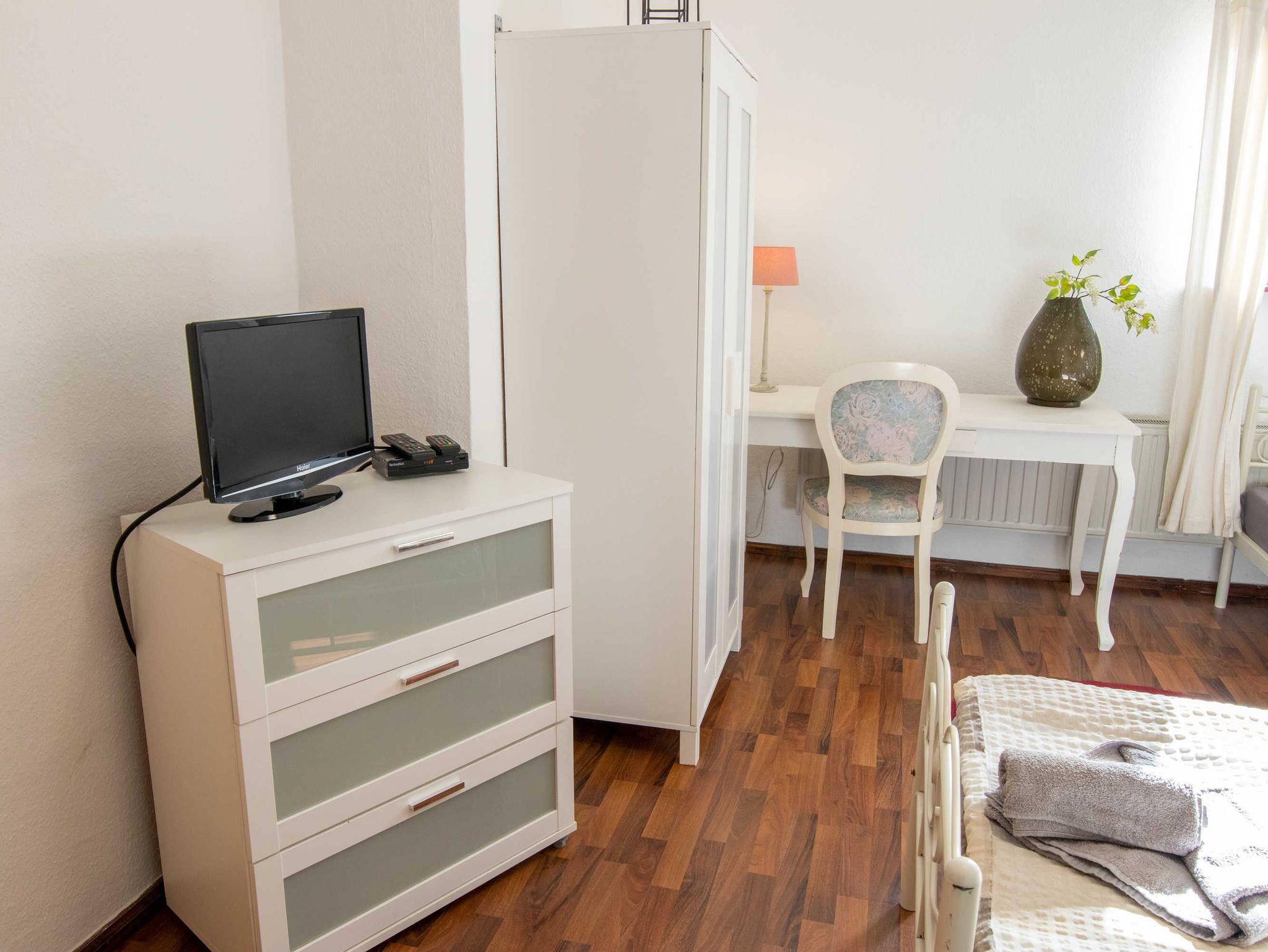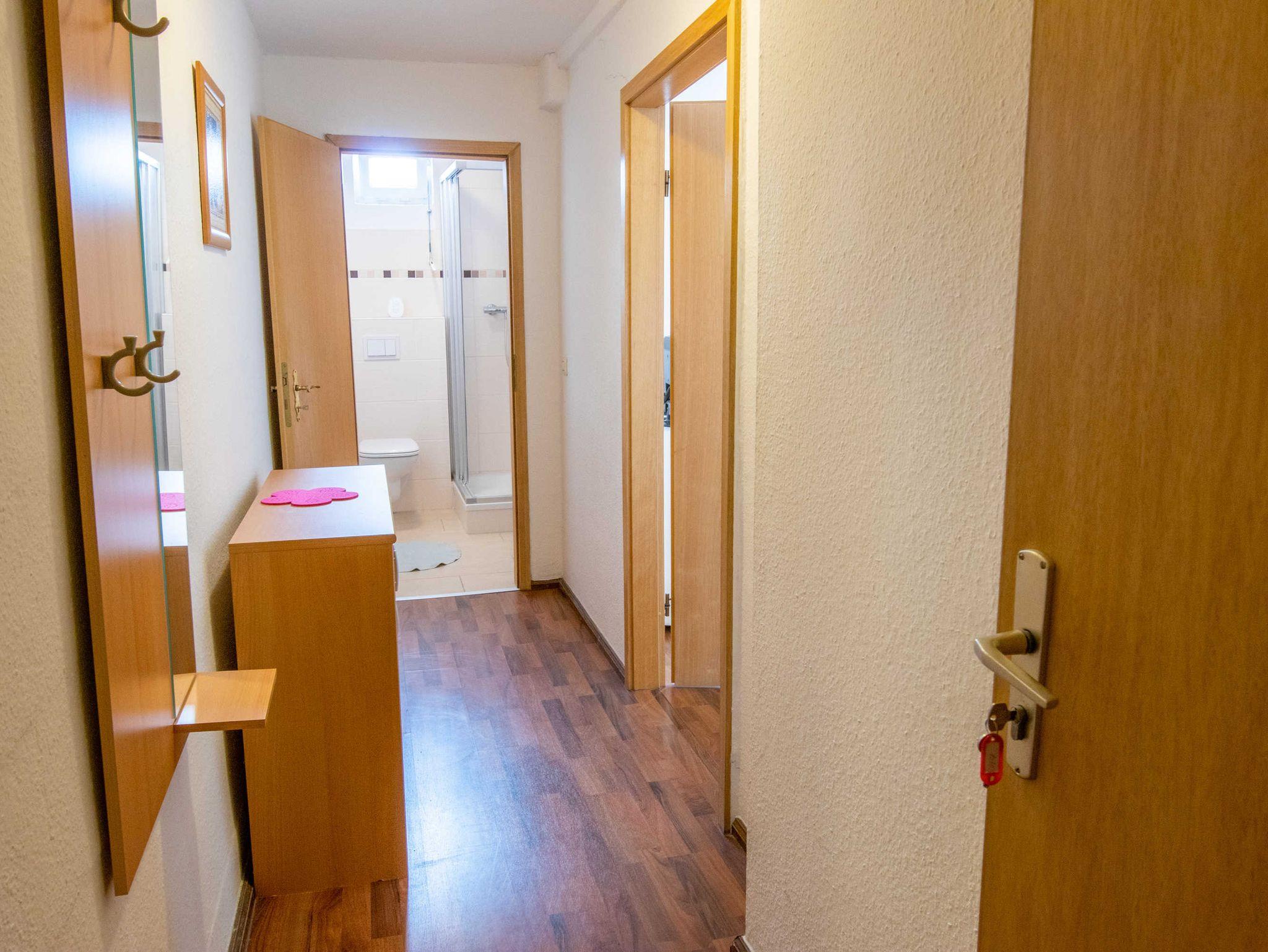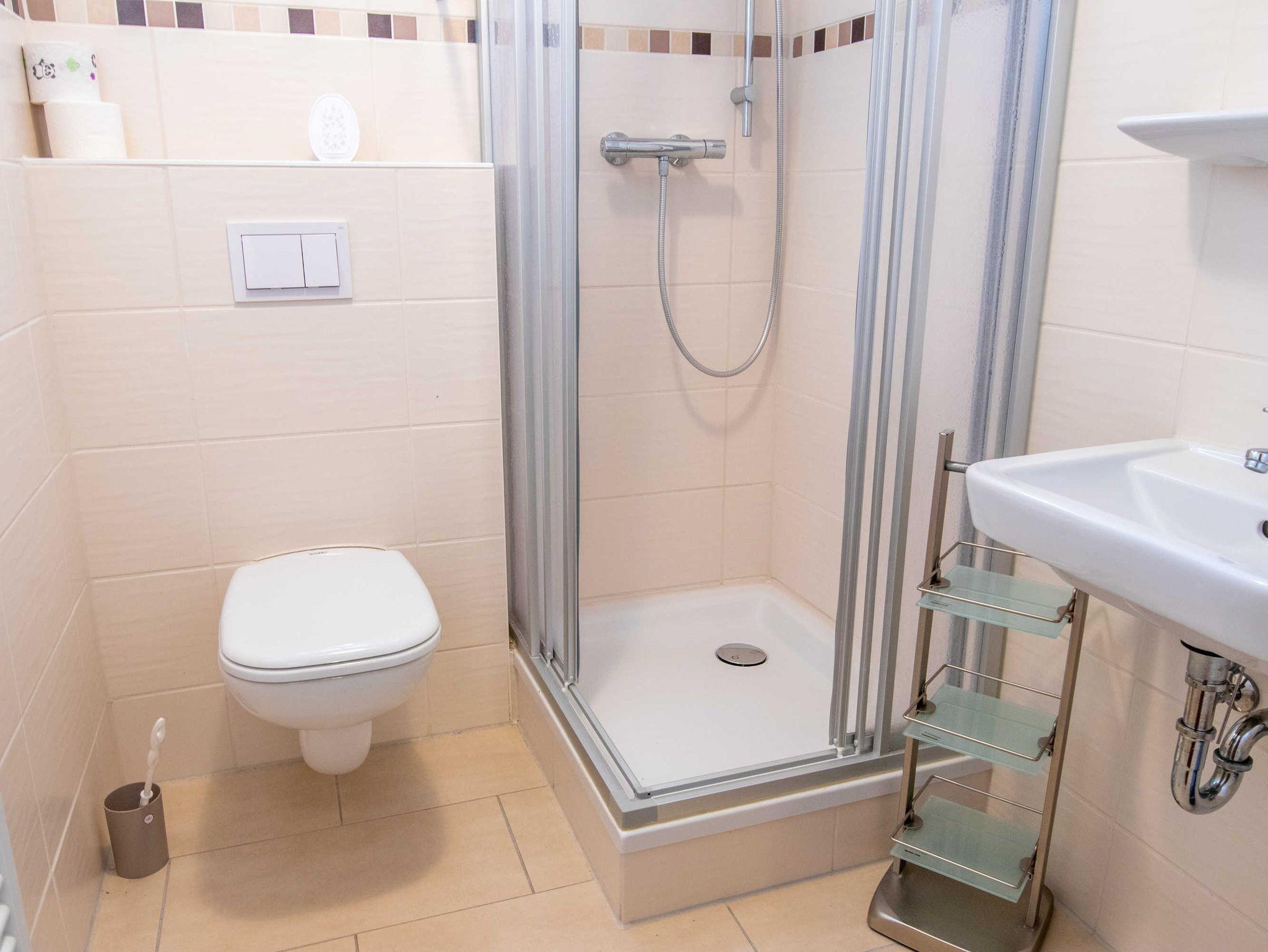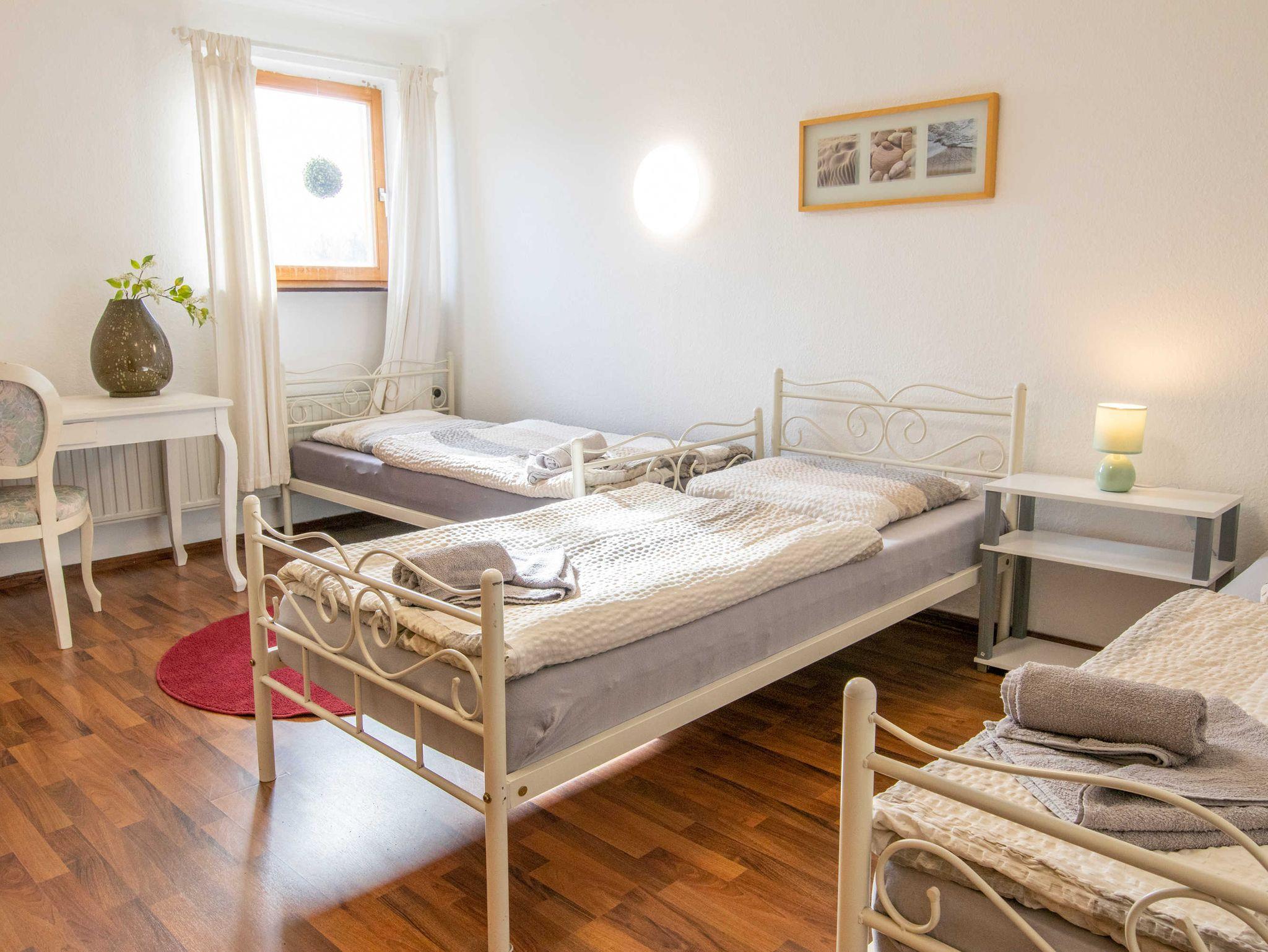 Das Dreibettzimmer verfügt über 3 Einzelbetten (90x200), einen Flachbild-TV, einen Schreibtisch, Kleiderschrank, ein Bad mit Fenster, Dusche und WC sowie einen kleinen Vorflur.