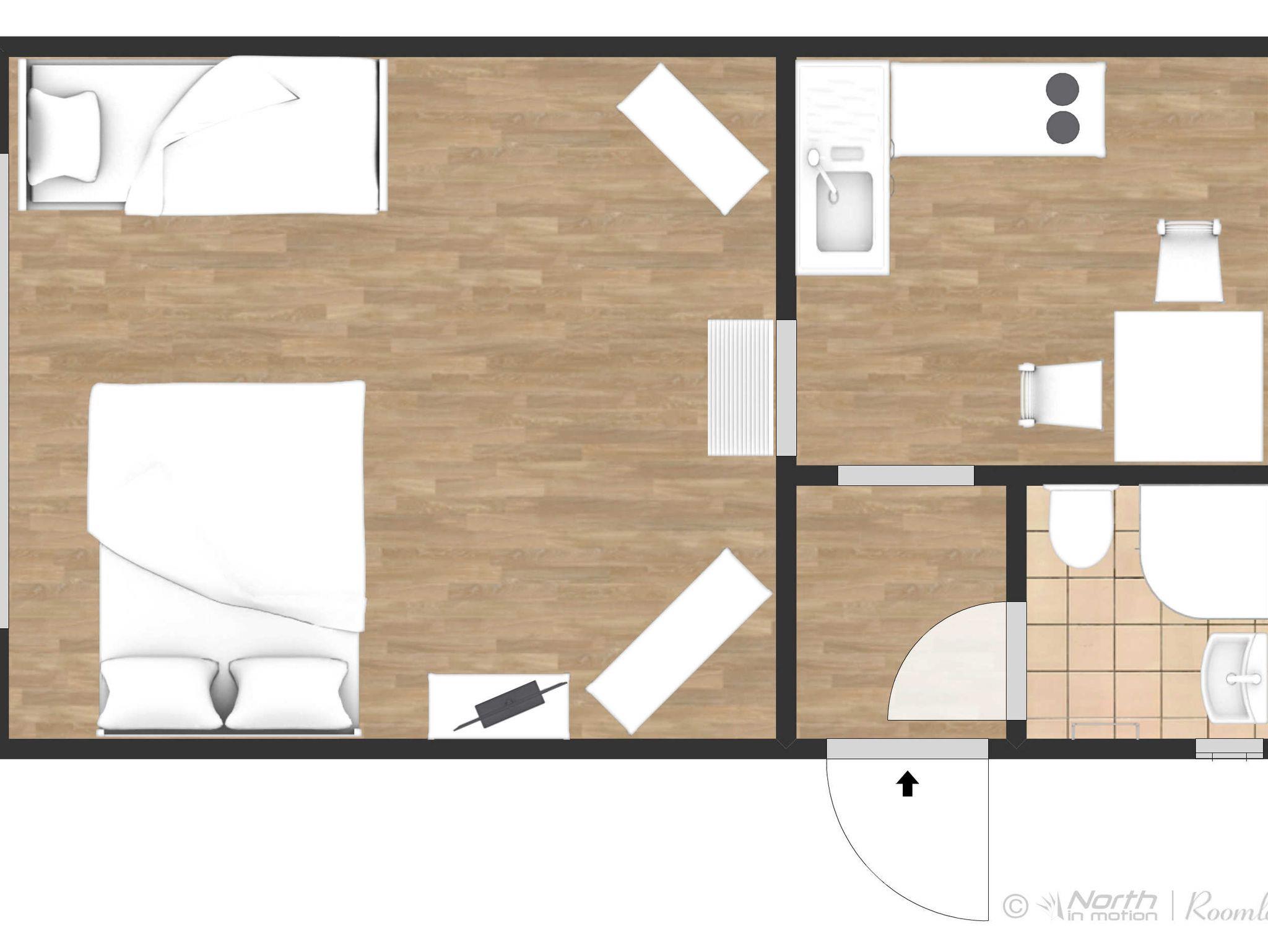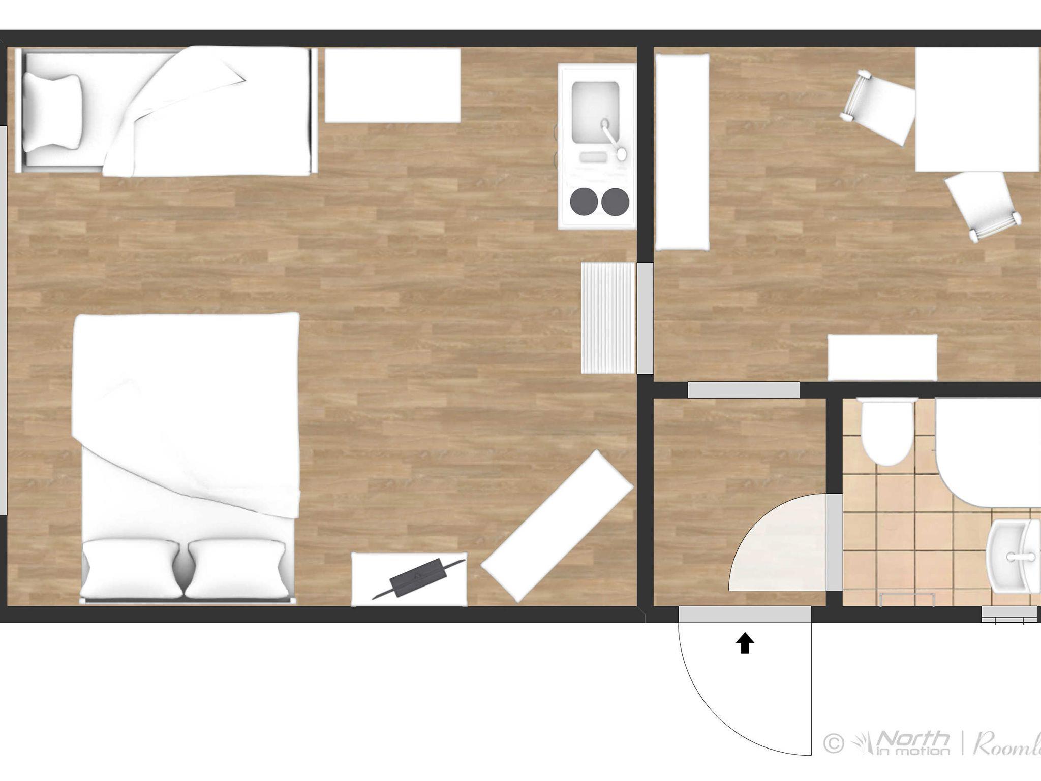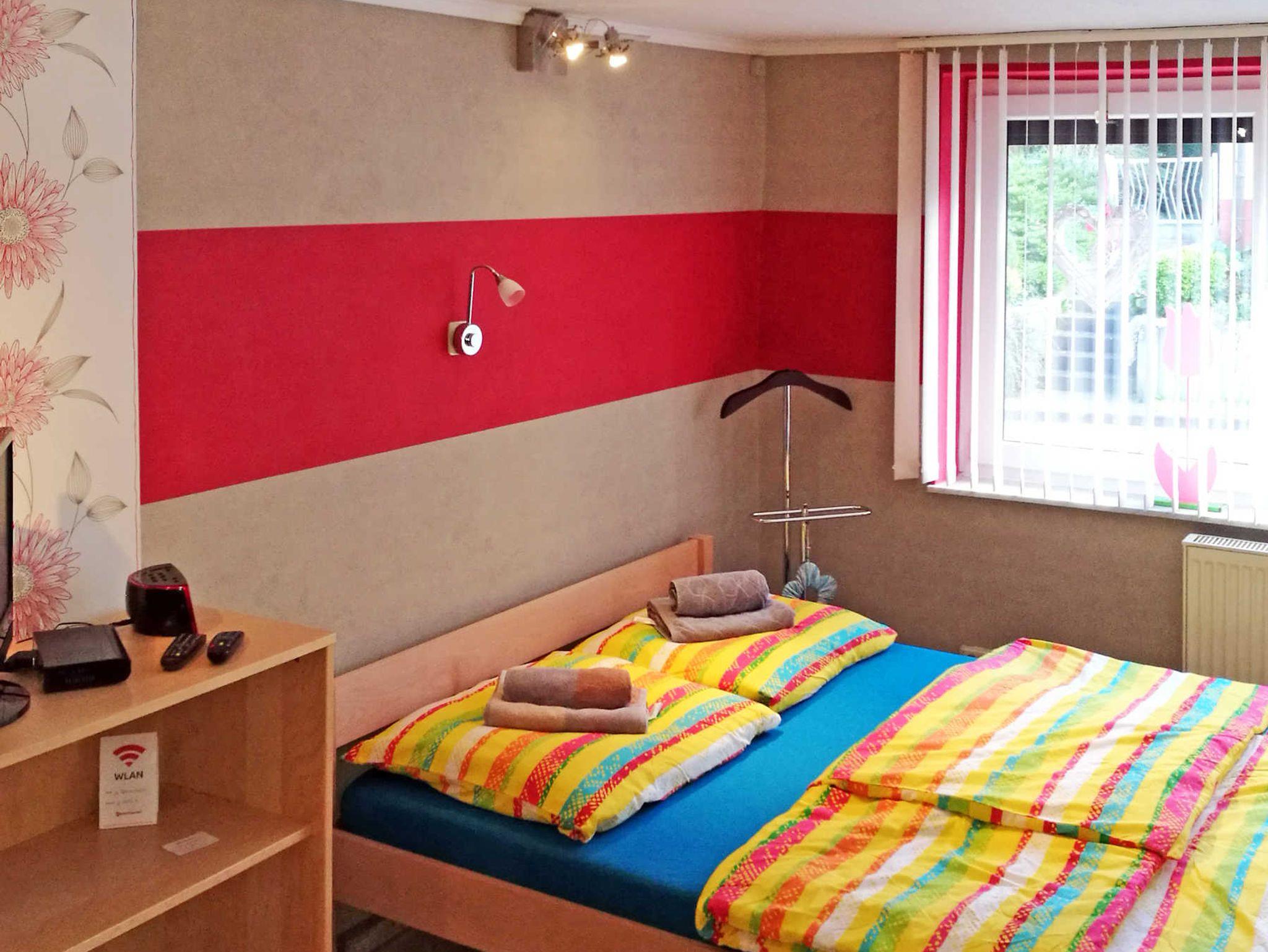 Die 30m² große Ferienwohnung Jan liegt im Hochparterre eines Wohnhauses und hat einen eigenen Eingang. Du genießt hier also ganz viel Privatsphäre. Im kombinierten Wohn- und Schlafraum schläfst du bequem in einem Doppelbett (160x200). Für eine dritte Person oder ein Kind steht zusätzlich eine Schlafcouch (90x200) zur Verfügung. Auch ein Kinderbeistellbett kann gern bereitgestellt werden. In der separaten Küche findest du alles für den kleinen Urlaubsappetit: zwei Kochplatten, eine Mikrowelle, Wasserkocher, Kaffeemaschine, Spüle und einen Kühlschrank. Am Esstisch mit Stühlen kannst du in Ruhe frühstücken oder den Tag bei einer Tasse Tee ausklingen lassen. Das Badezimmer ist mit Dusche und WC ausgestattet. Kostenloses WLAN ist natürlich vorhanden. Draußen erwartet dich eine kleine Terrasse, die du ganz entspannt nutzen kannst, perfekt für den Morgenkaffee oder den Grillabend.